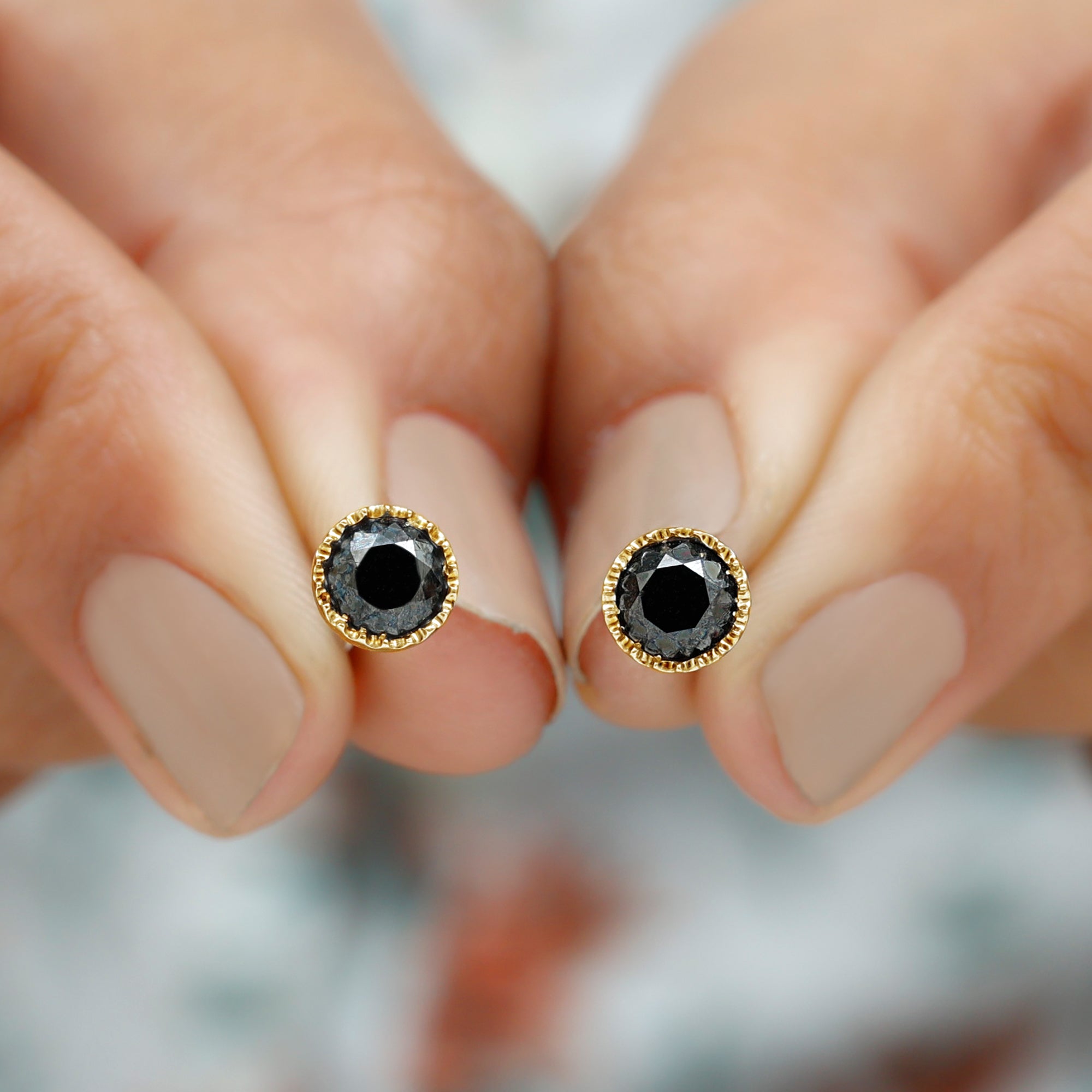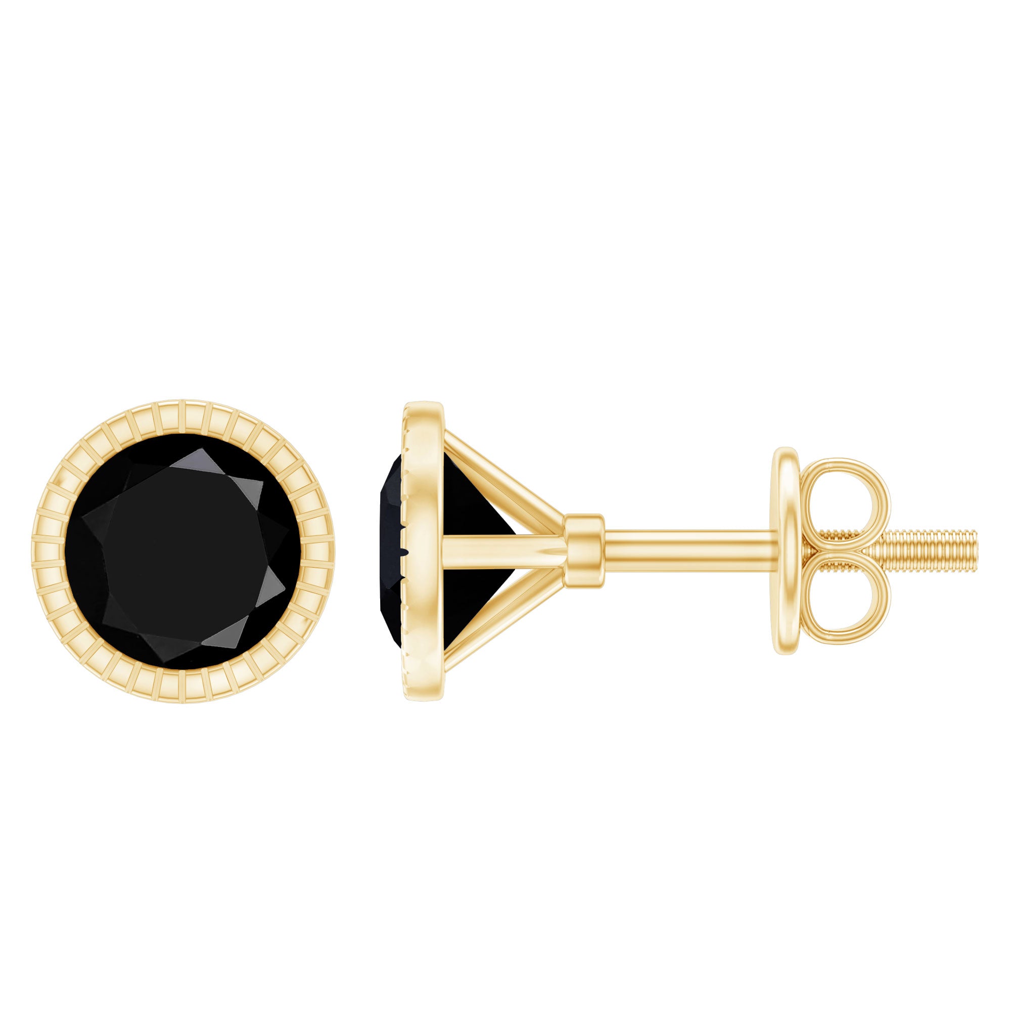 Round Black Diamond Gold Solitaire Stud Earring in Bezel Setting