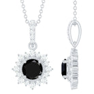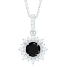 Round Black Spinel Halo Pendant with Diamond Accent Bail
