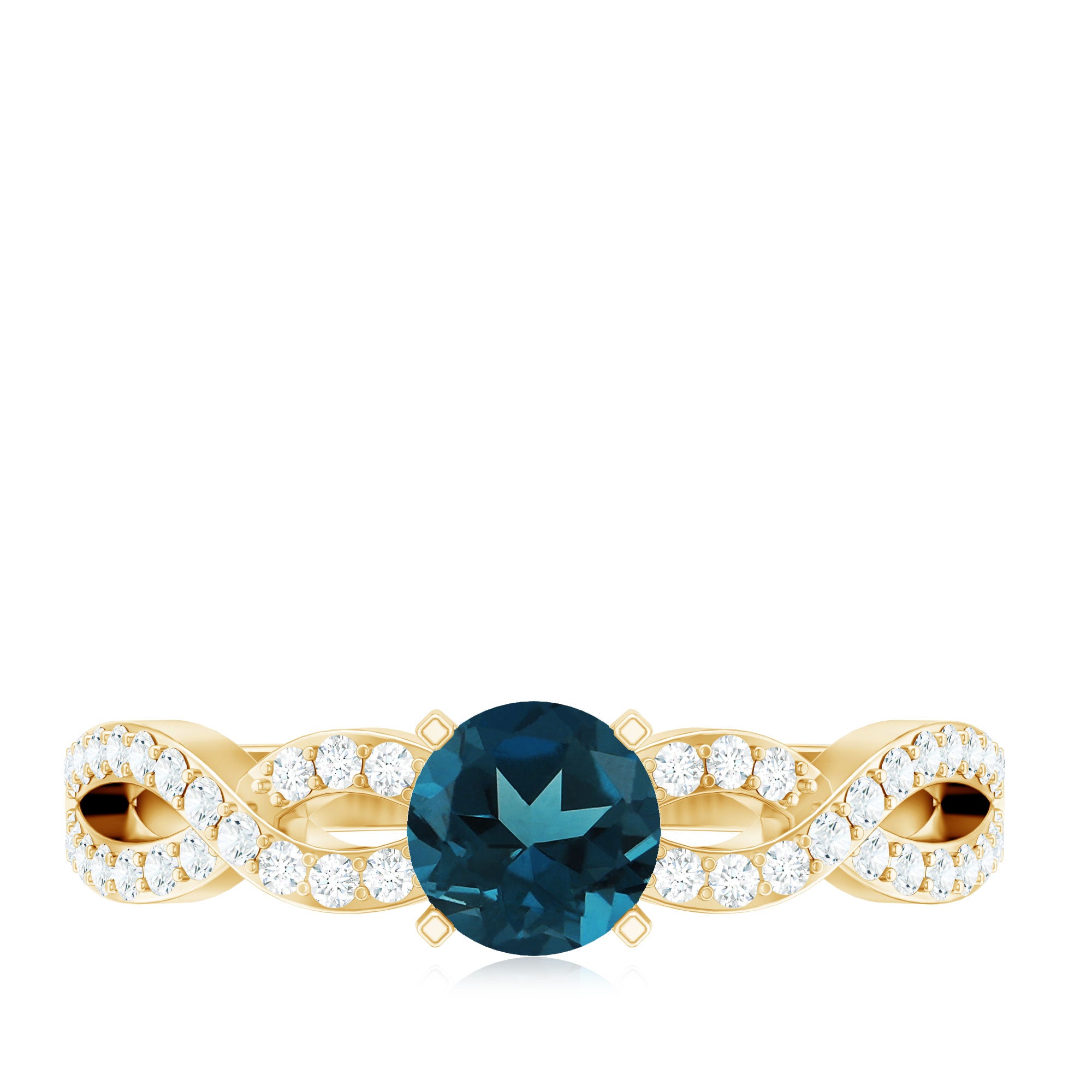 Round Blue Topaz Infinity Engagement Ring with Diamonds