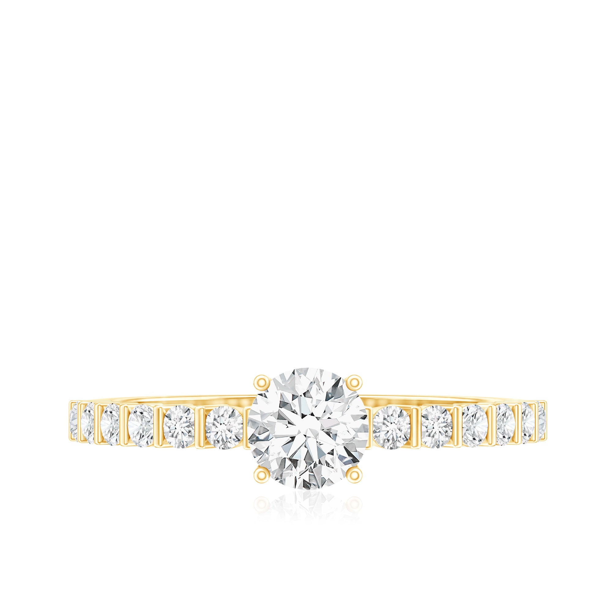 Timeless beauty meets radiant sparkle in this classic Moissanite Engagement Ring. At its center is a brilliant 5 MM round-cut moissanite of D-VS1 quality, set in secure prong setting that lets it shine from every angle. On each side, smaller bar set moissanite stones add just the right touch of extra sparkle, creating a look that is elegant, graceful, and full of charm. This Moissanite Promise Ring is perfect for someone who loves classic style with a modern twist. The center stone steals the spotlight, while the side stones gently highlight its glow, giving the Proposal Ring a balanced and refined feel. Made with care and designed to last, this Solitaire Moissanite Ring is ideal for proposals, anniversaries, or celebrating any unforgettable moment. Whether you are starting your forever or marking a new chapter in your love story, this beauty is a symbol of love, promise, and lasting sparkle.