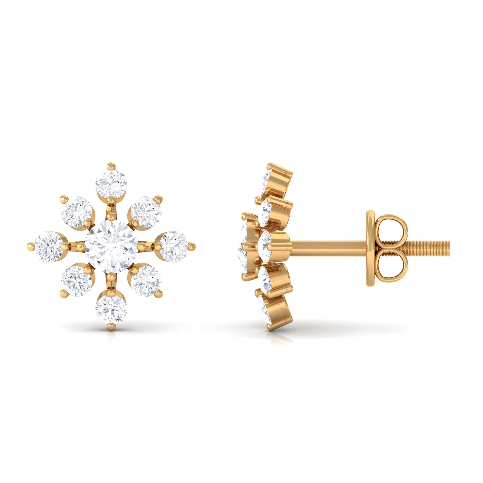 Add a touch of floral elegance to your jewelry collection with these Moissanite Flower Stud Earrings. Each earring features round Moissanite stone in prong setting, all set in gold. These moissanite earrings are perfect for adding a touch of beauty and sophistication to any outfit, whether for everyday wear or a special occasion.