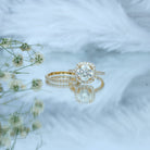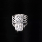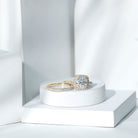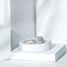 Shine with everlasting beauty by wearing this Moissanite Wedding Ring Set, a perfect duo made to honor your love. The set consists of 2 rings, featuring a dazzling Halo Engagement Ring and a complementary Wedding Band, designed to look gorgeous together or worn separately. At the heart of the engagement ring is an 8 MM round moissanite. It is securely held in a double prong setting and encircled by a halo of smaller moissanites, enhancing its brilliance. The shine continues along the band with delicate side stones, making the Moissanite Engagement Ring Set captivating from every perspective. The matching wedding band is designed in a half eternity style, with tiny moissanite stones arranged neatly across the top. It gently fit alongside the engagement ring, creating a flawless pair. Together, the two rings create a stunning Halo Bridal Set that is sophisticated, modern, and meaningful. This Moissanite Bridal Ring Set is a beautiful option for brides who appreciate a blend of classic and contemporary styles. Crafted with attention and designed to shine for years, this Engagement Ring with Enhancer is a perfect way to celebrate the beginning of your journey together.