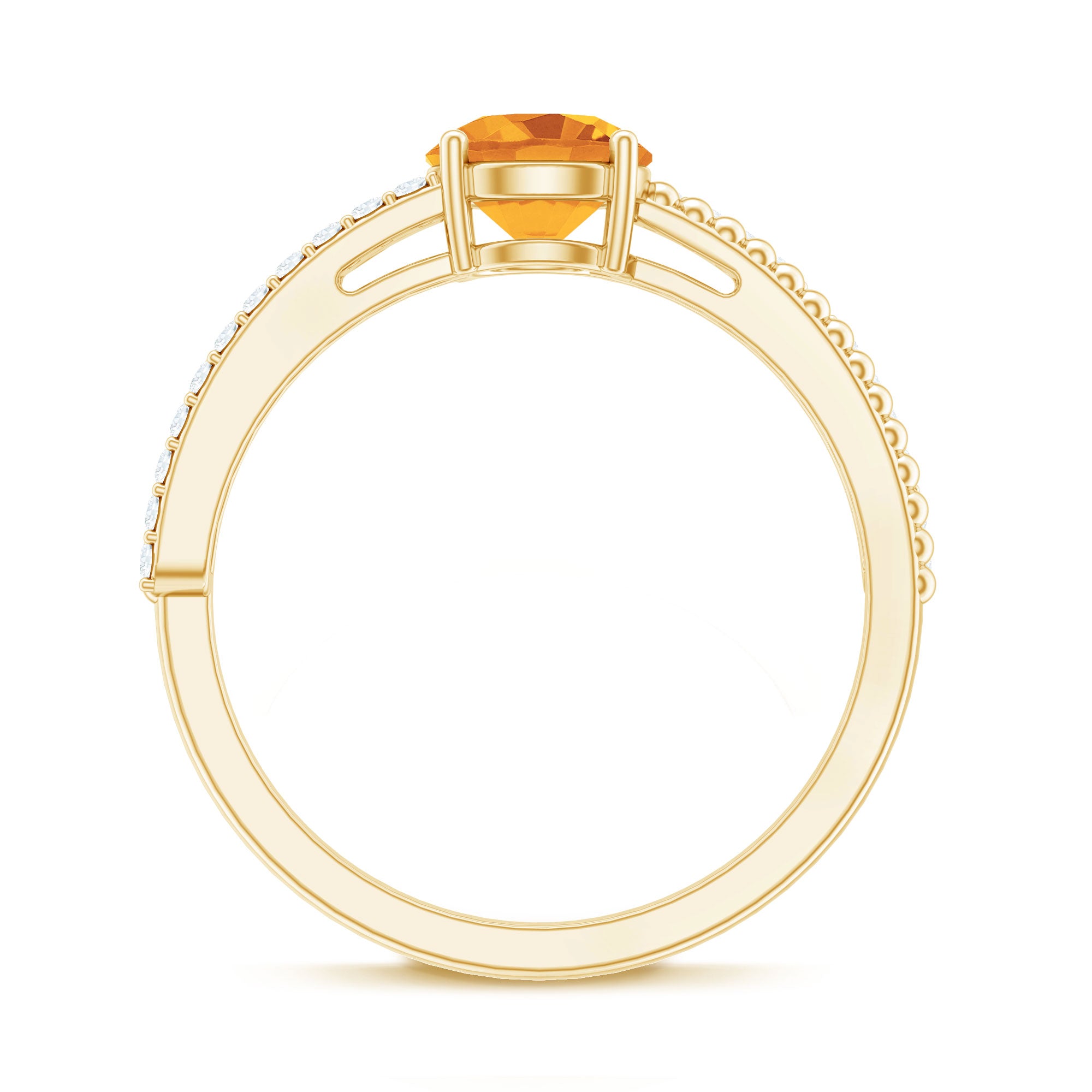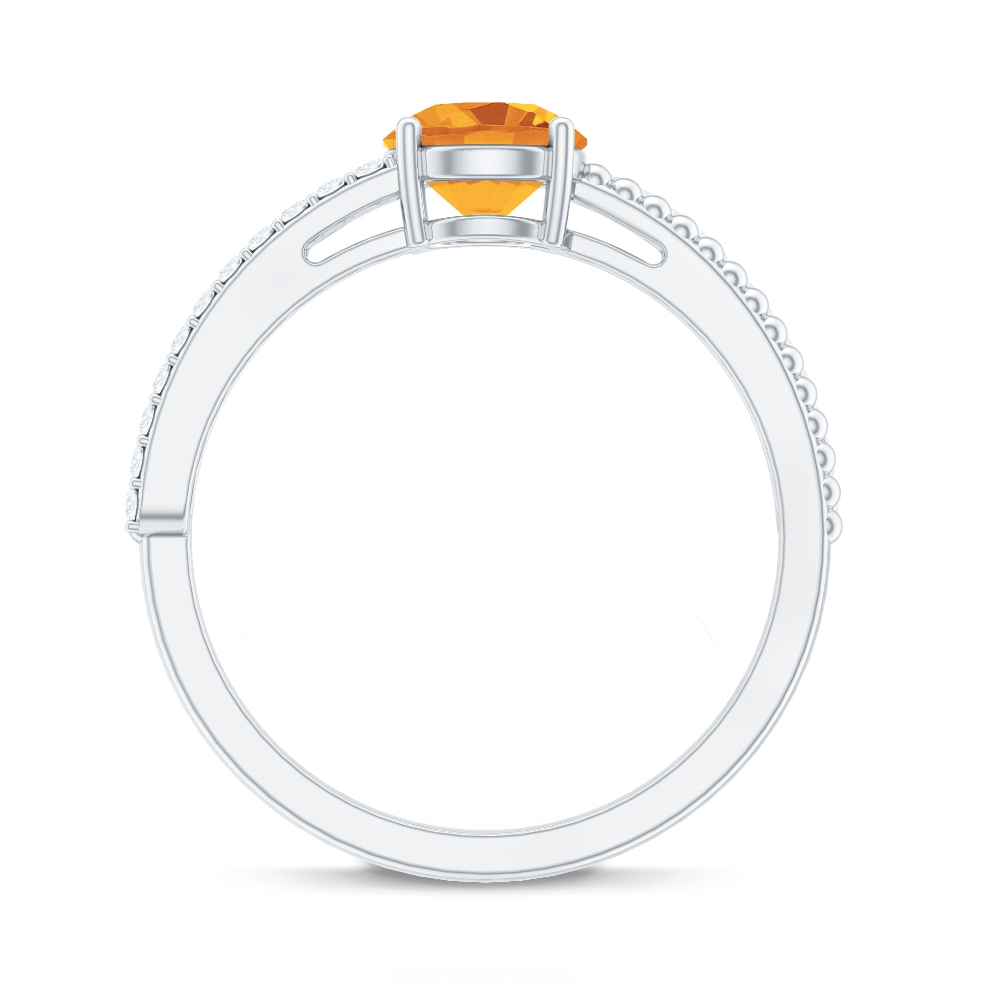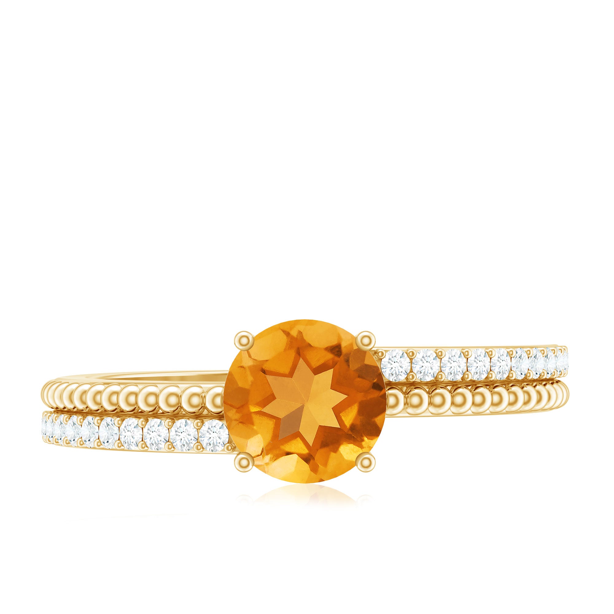 The stunning Solitaire Engagement Ring features a 7 MM Round Shape Citrine secured by 4 Prong Setting and dainty Round Diamonds studded on the shank. Grab this Citrine Ring for your special one and make her heart flutter by presenting this ring as a Birthday or Anniversary Gift.