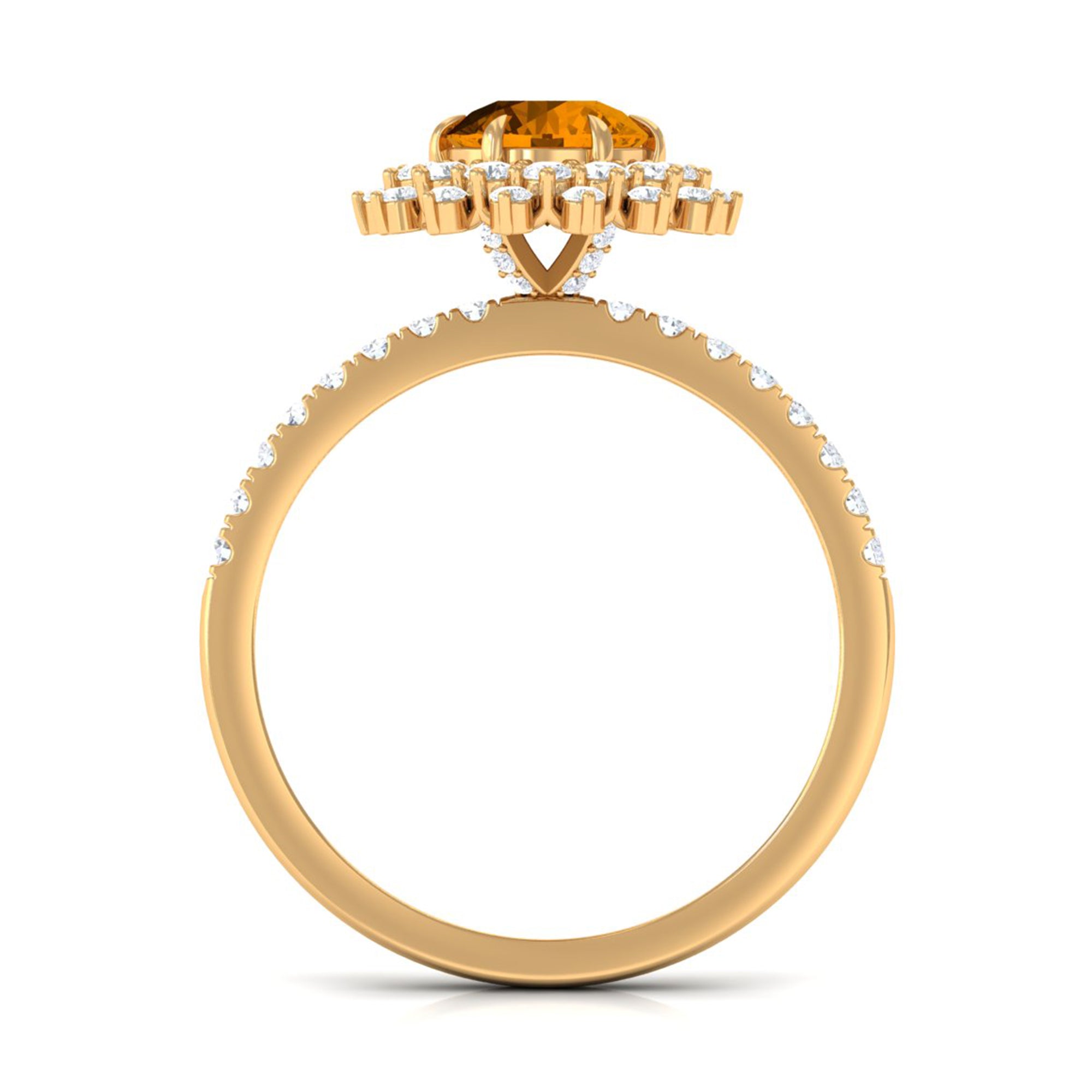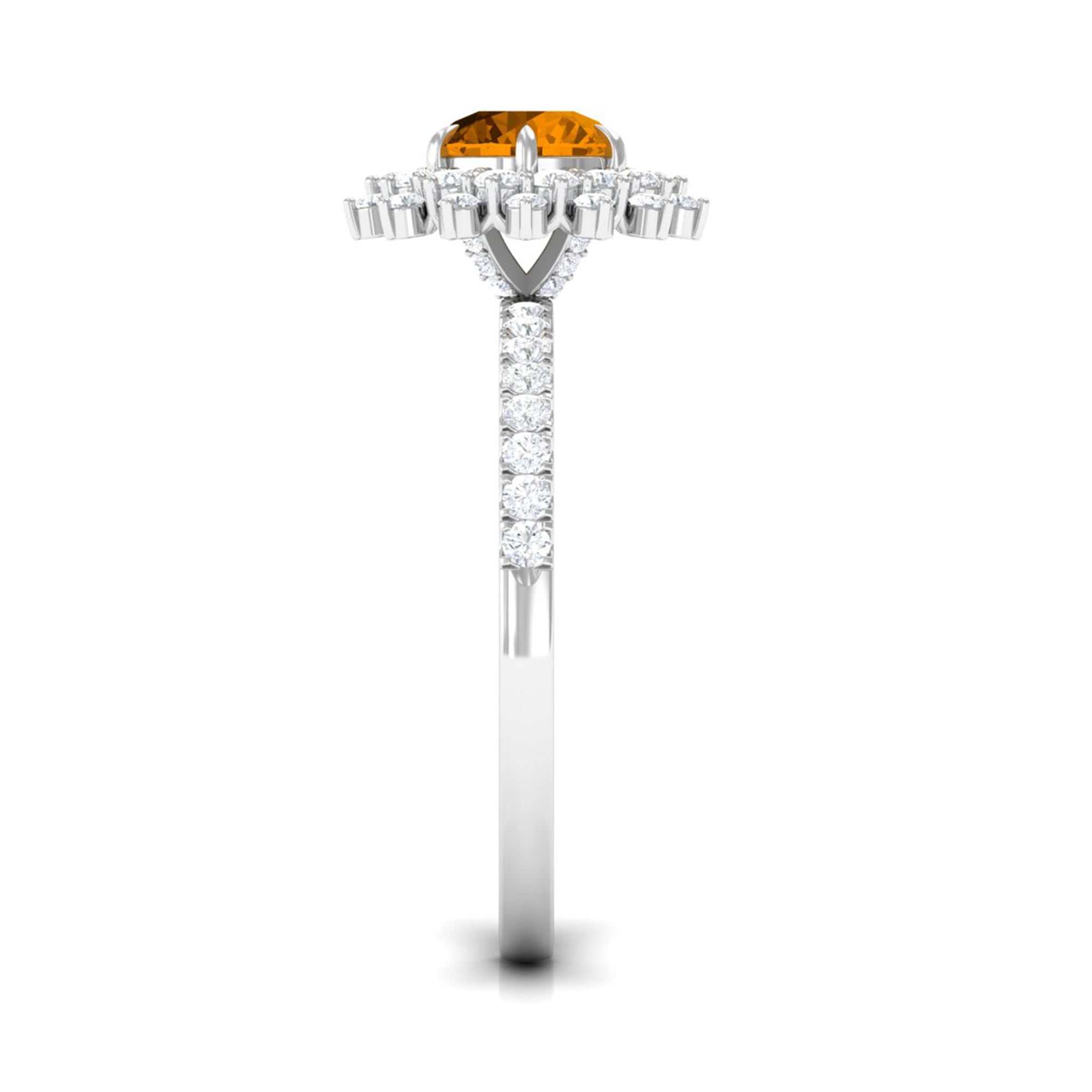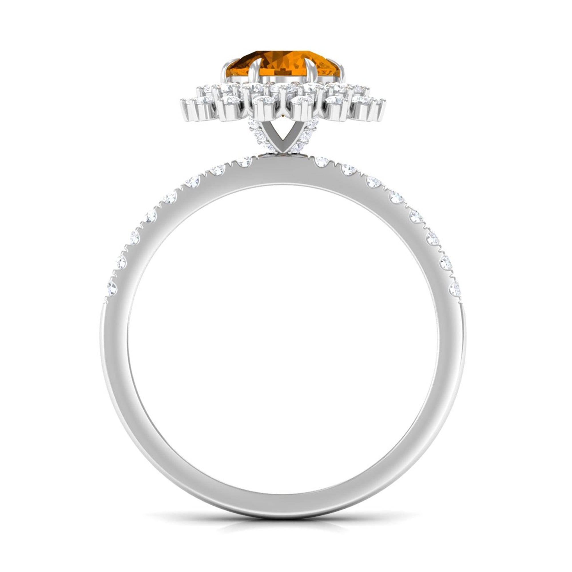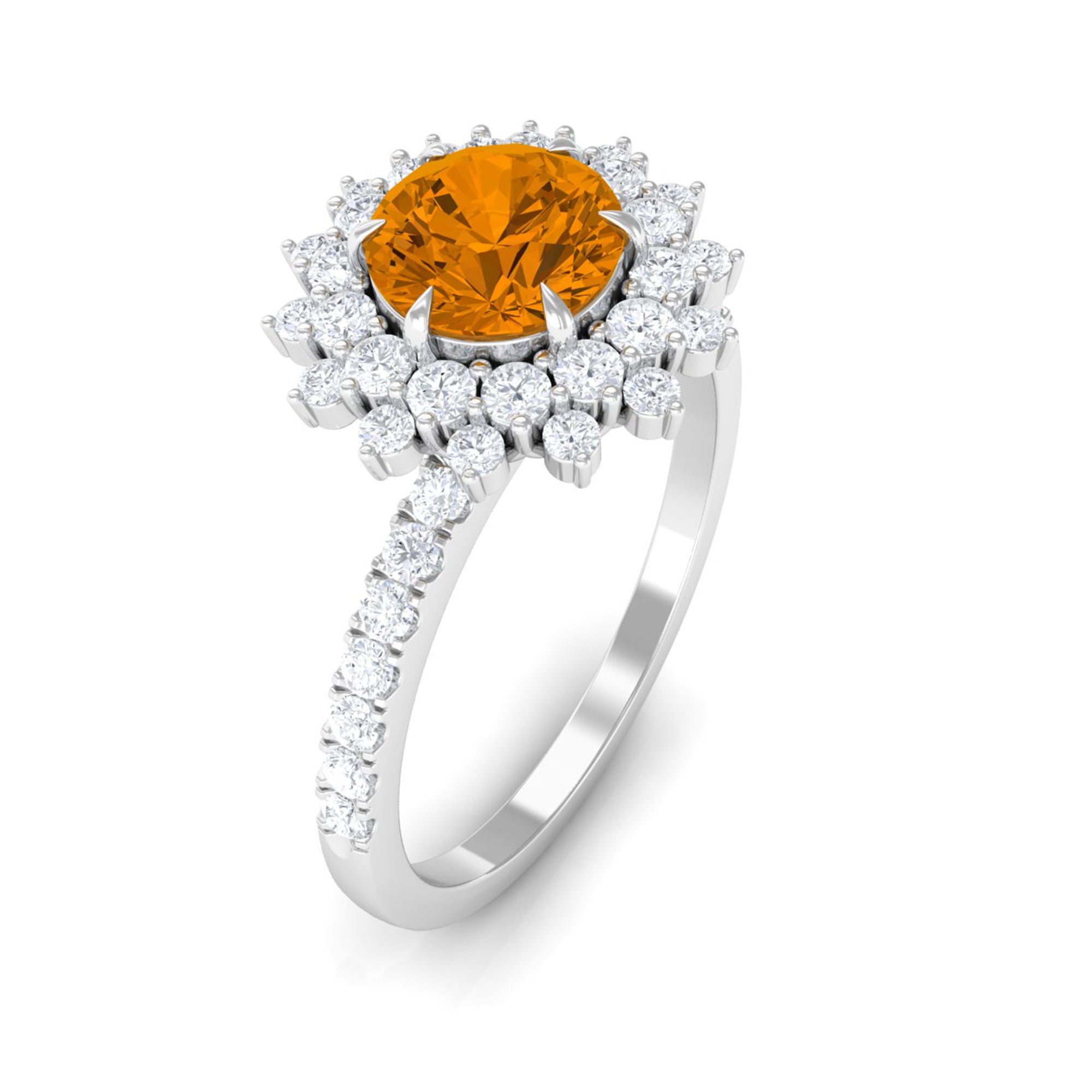 Round Citrine Statement Engagement Ring with Moissanite Cluster Halo