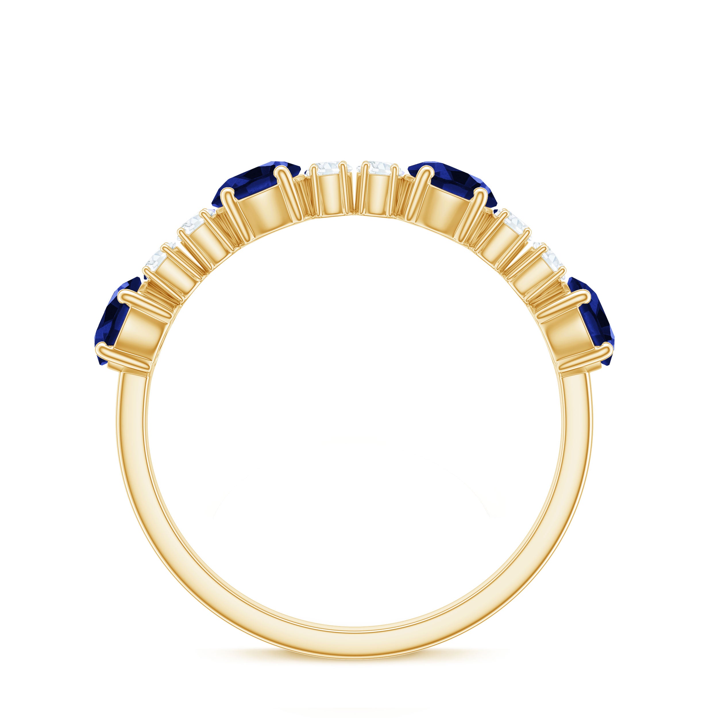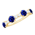 Round Created Blue Sapphire and Diamond Alternate Half Eternity Ring