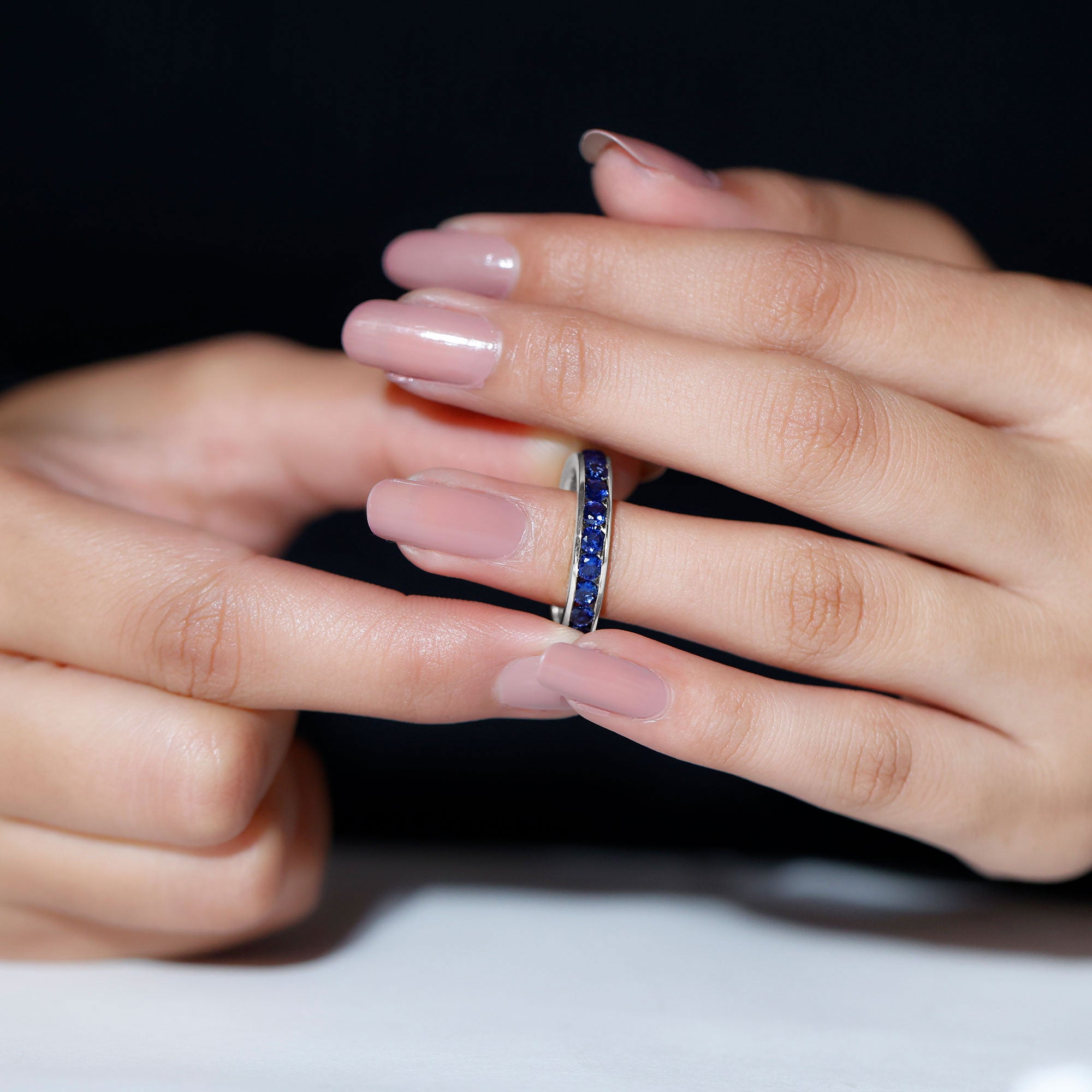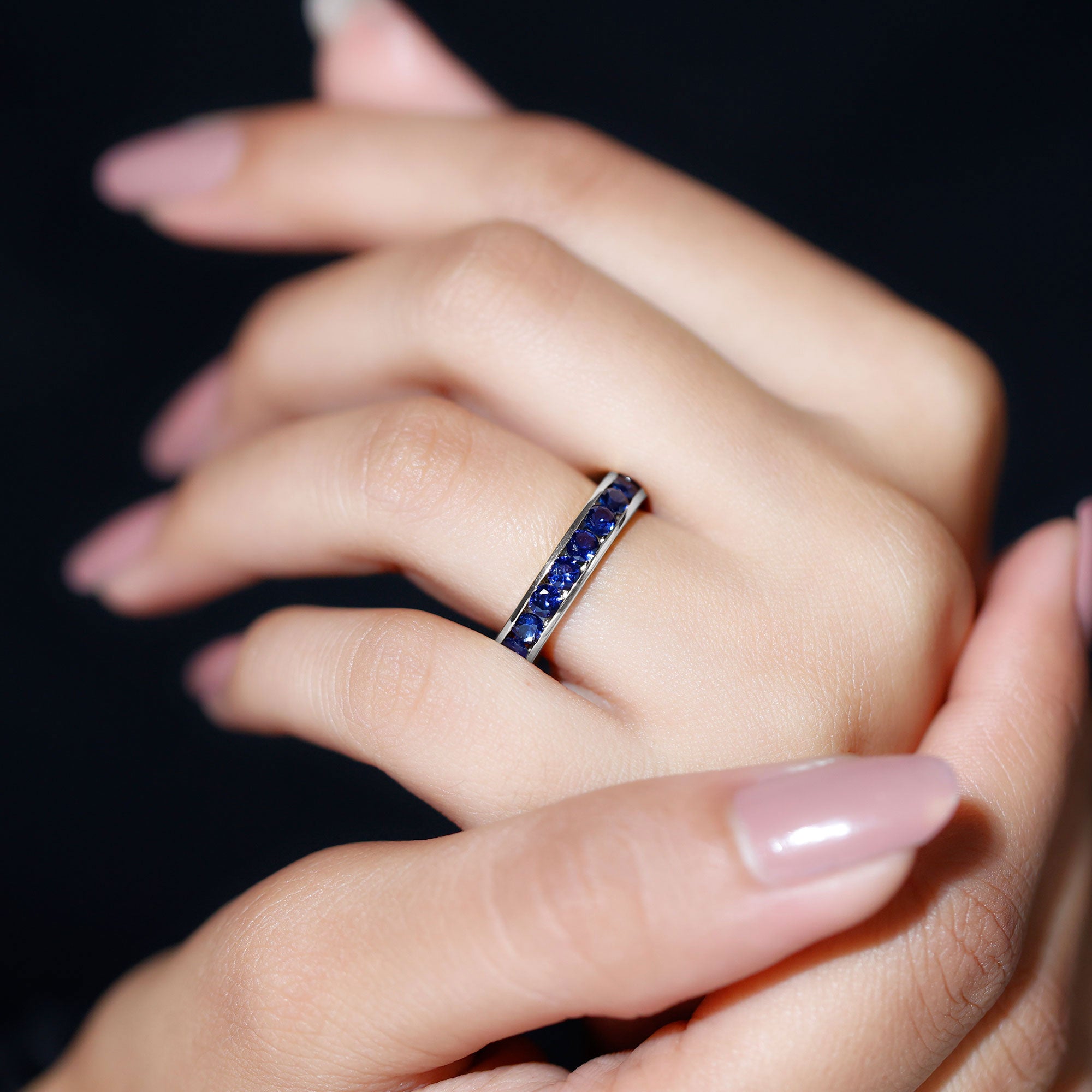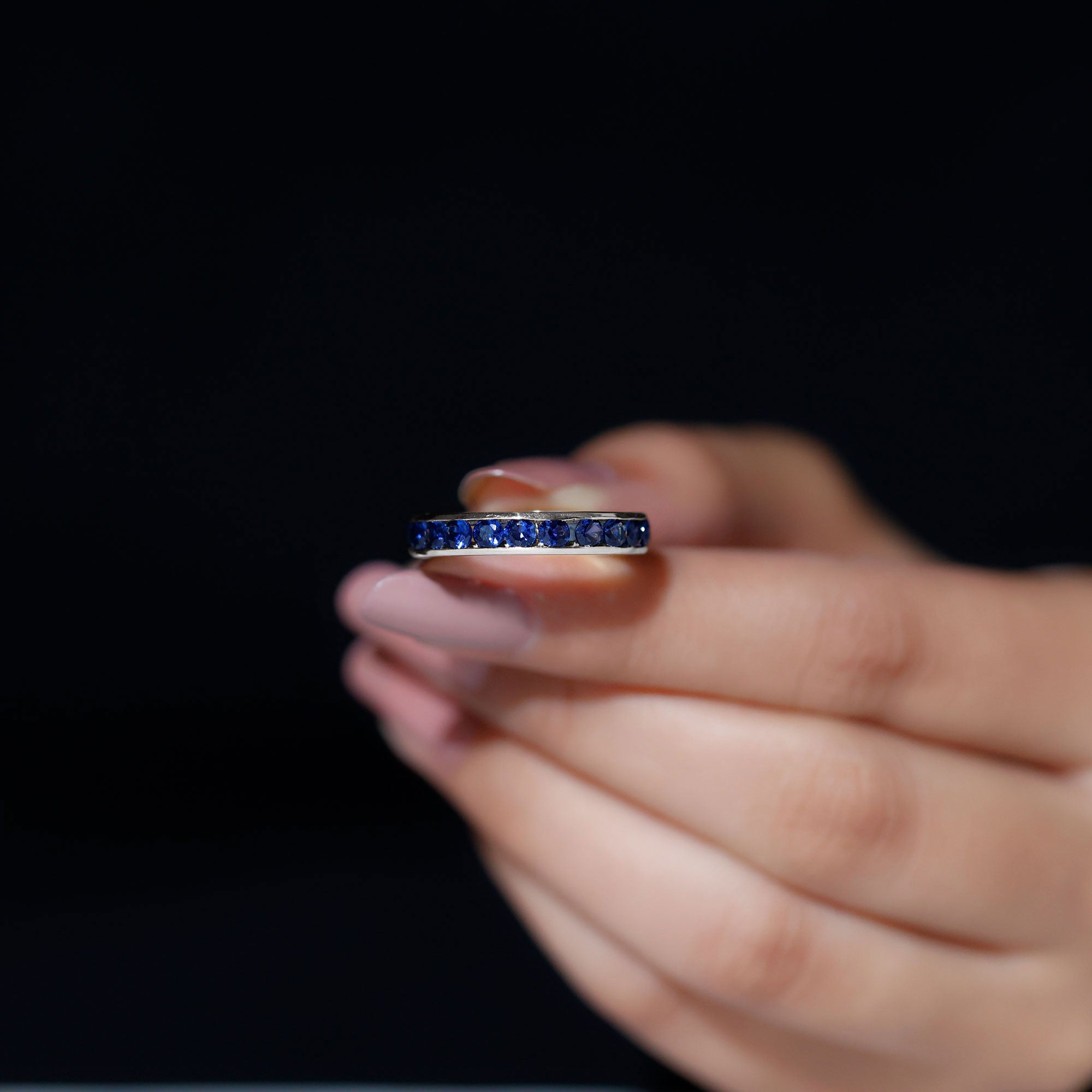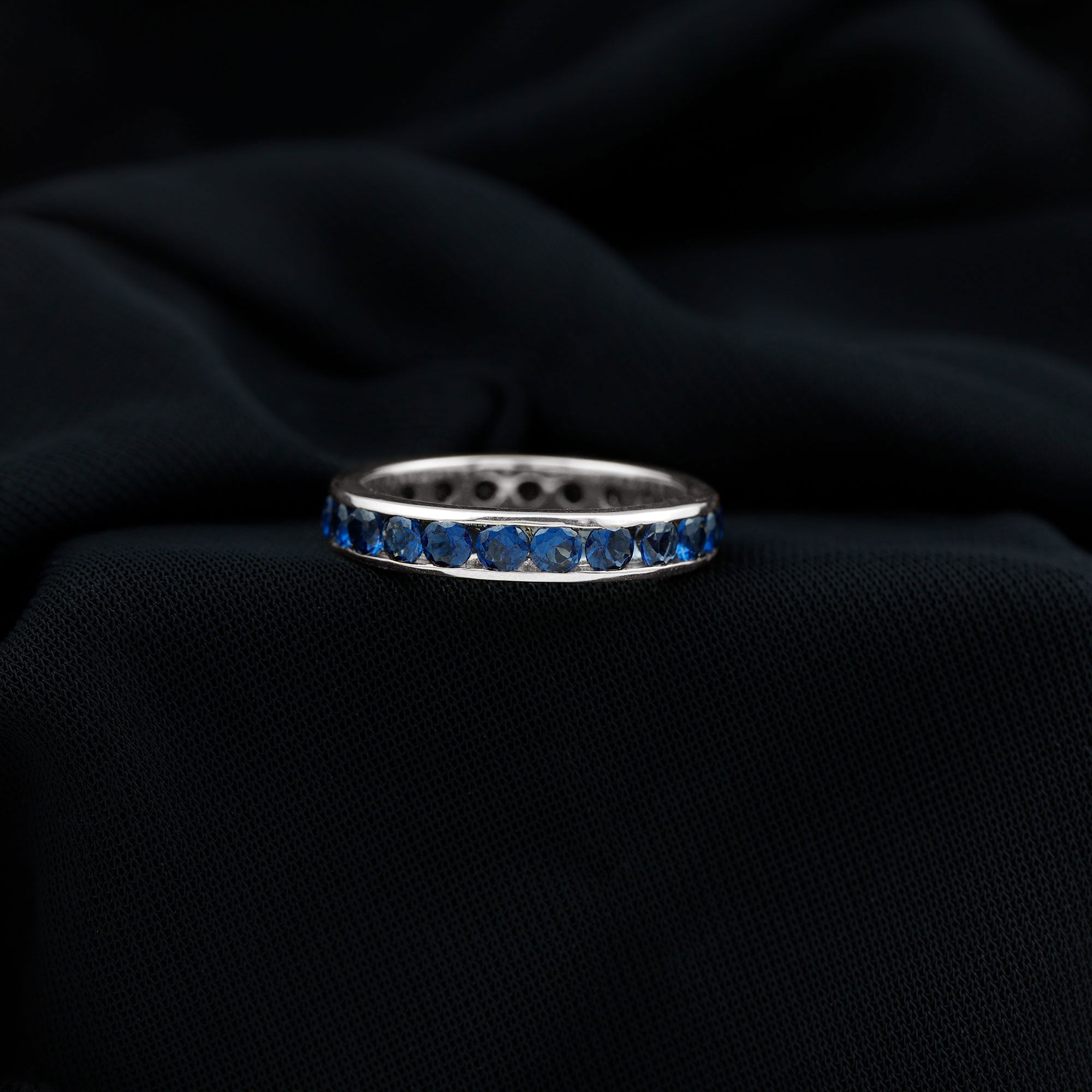 Round Created Blue Sapphire Full Eternity Ring in Channel Setting