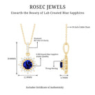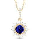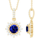 Round Created Blue Sapphire Halo Pendant with Diamond