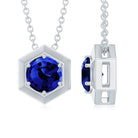 Round Created Blue Sapphire Hexagon Shape Pendant Necklace