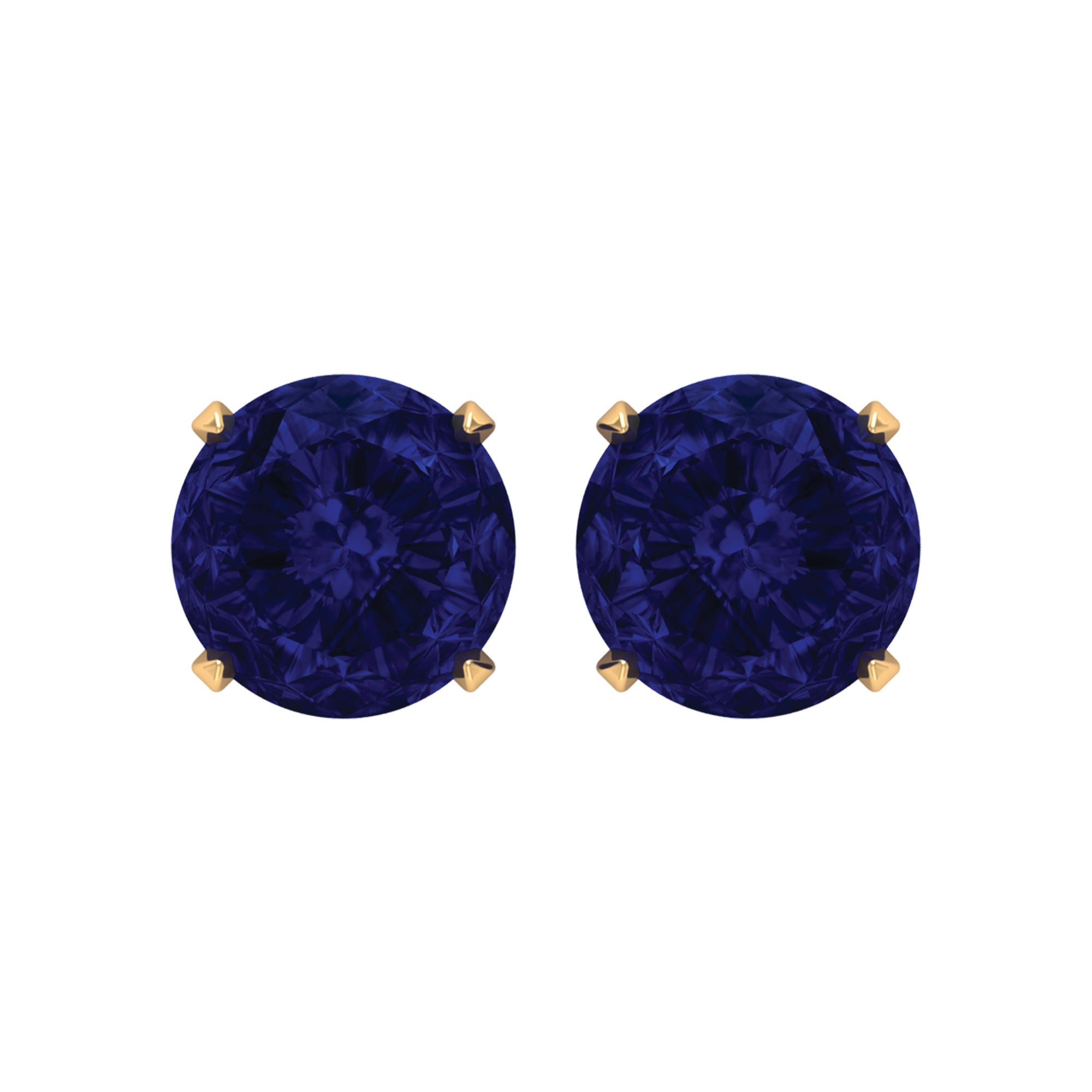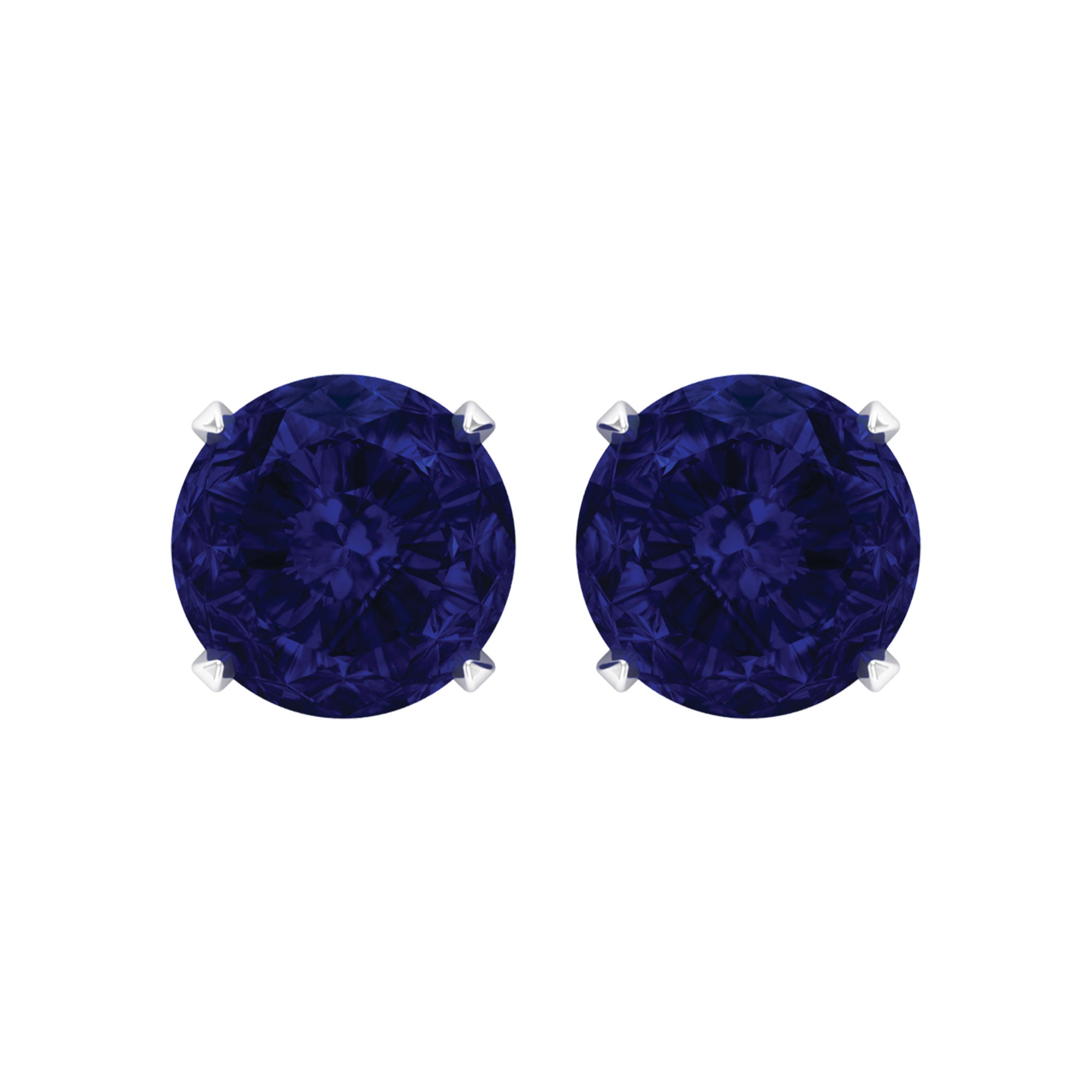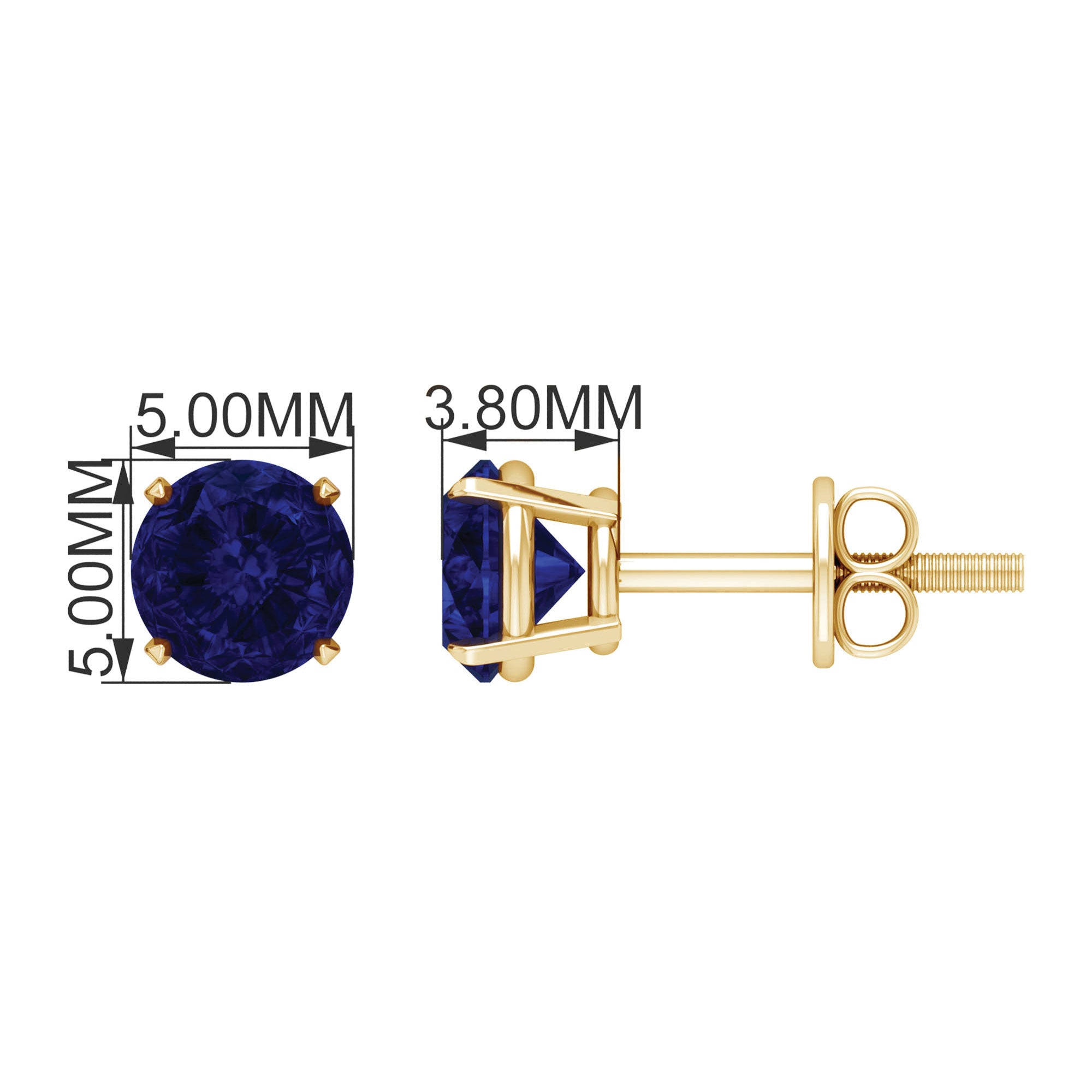 Round Created Blue Sapphire Solitaire Stud Earrings in Claw Setting