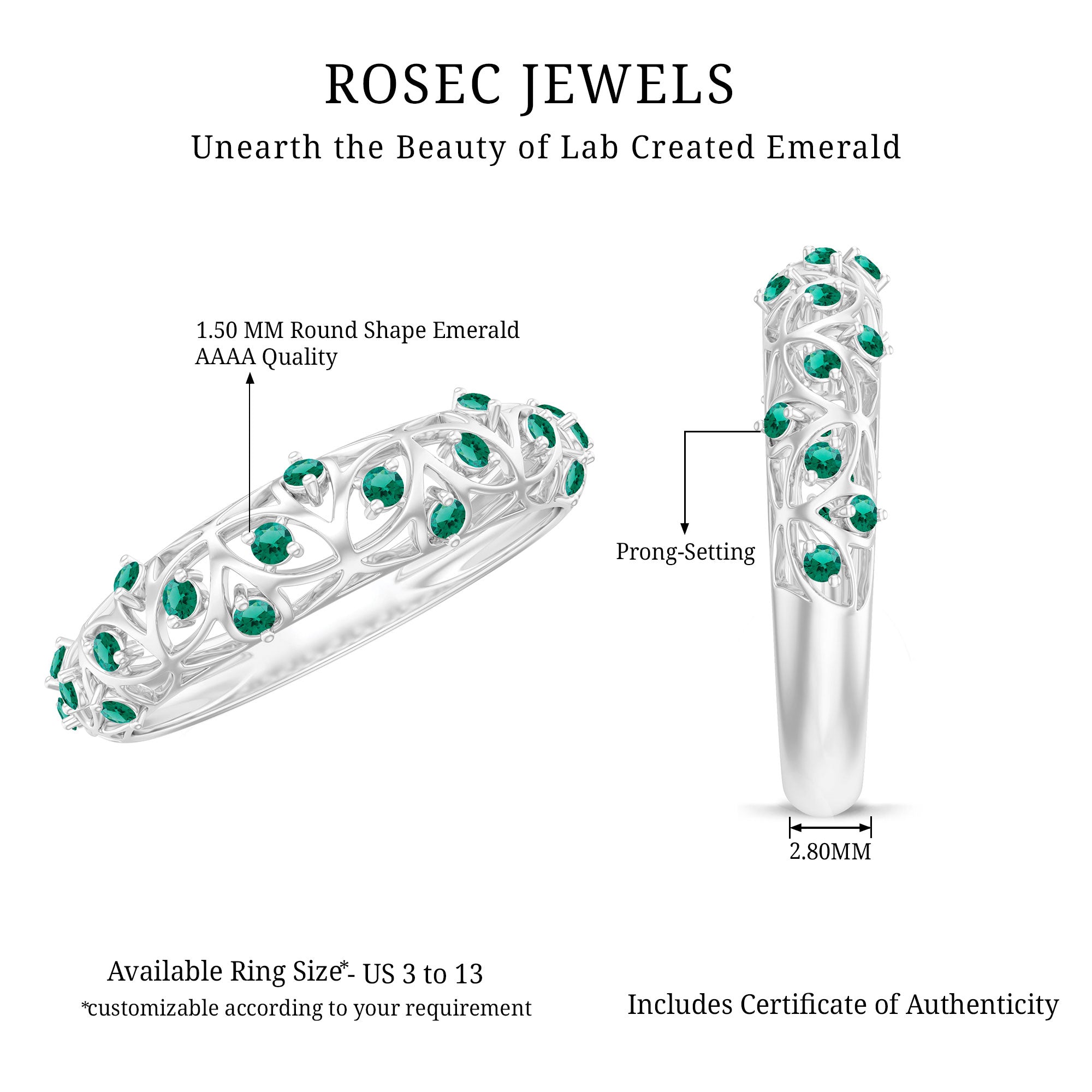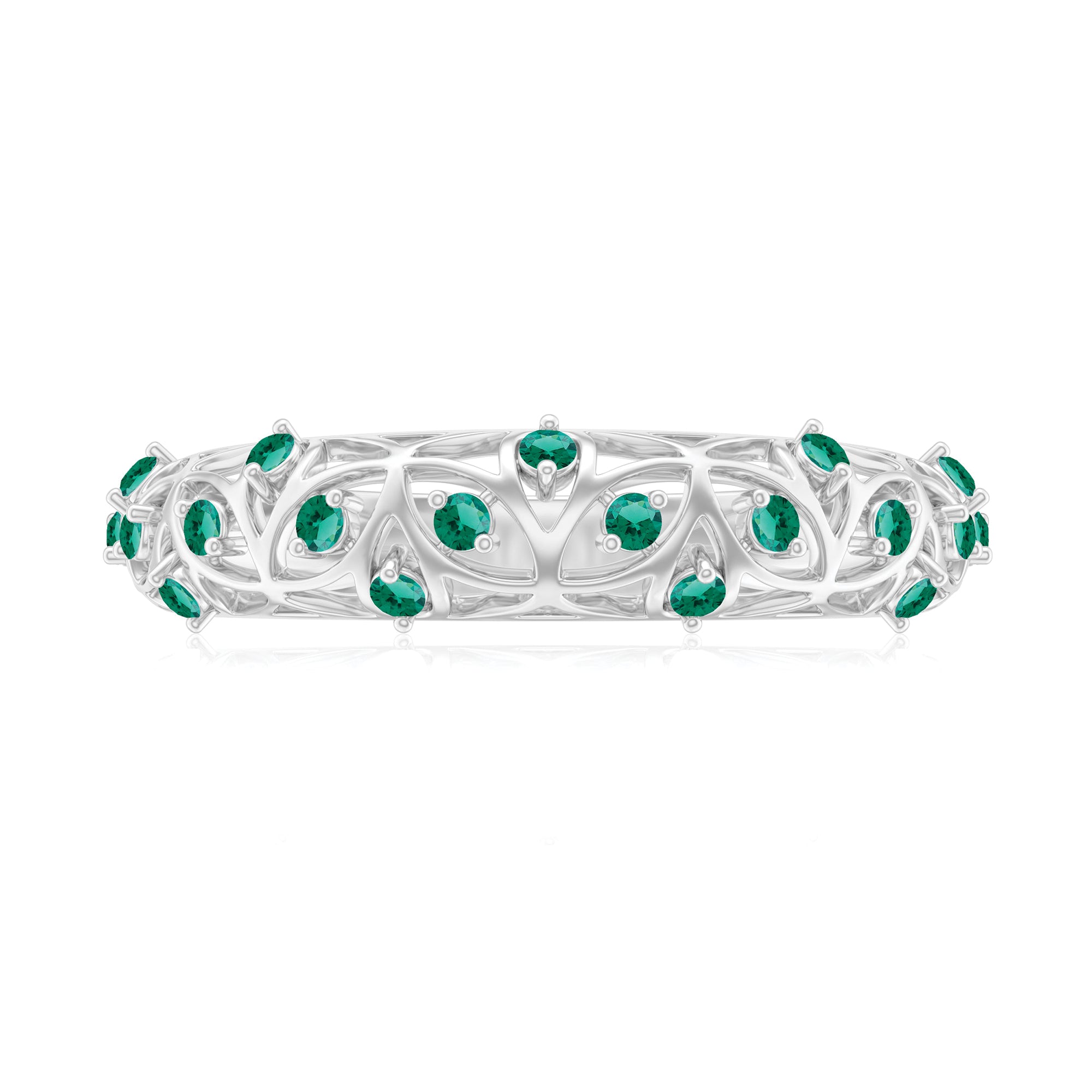 Certified Lab Grown Emerald Half Eternity Band with Filigree Details
