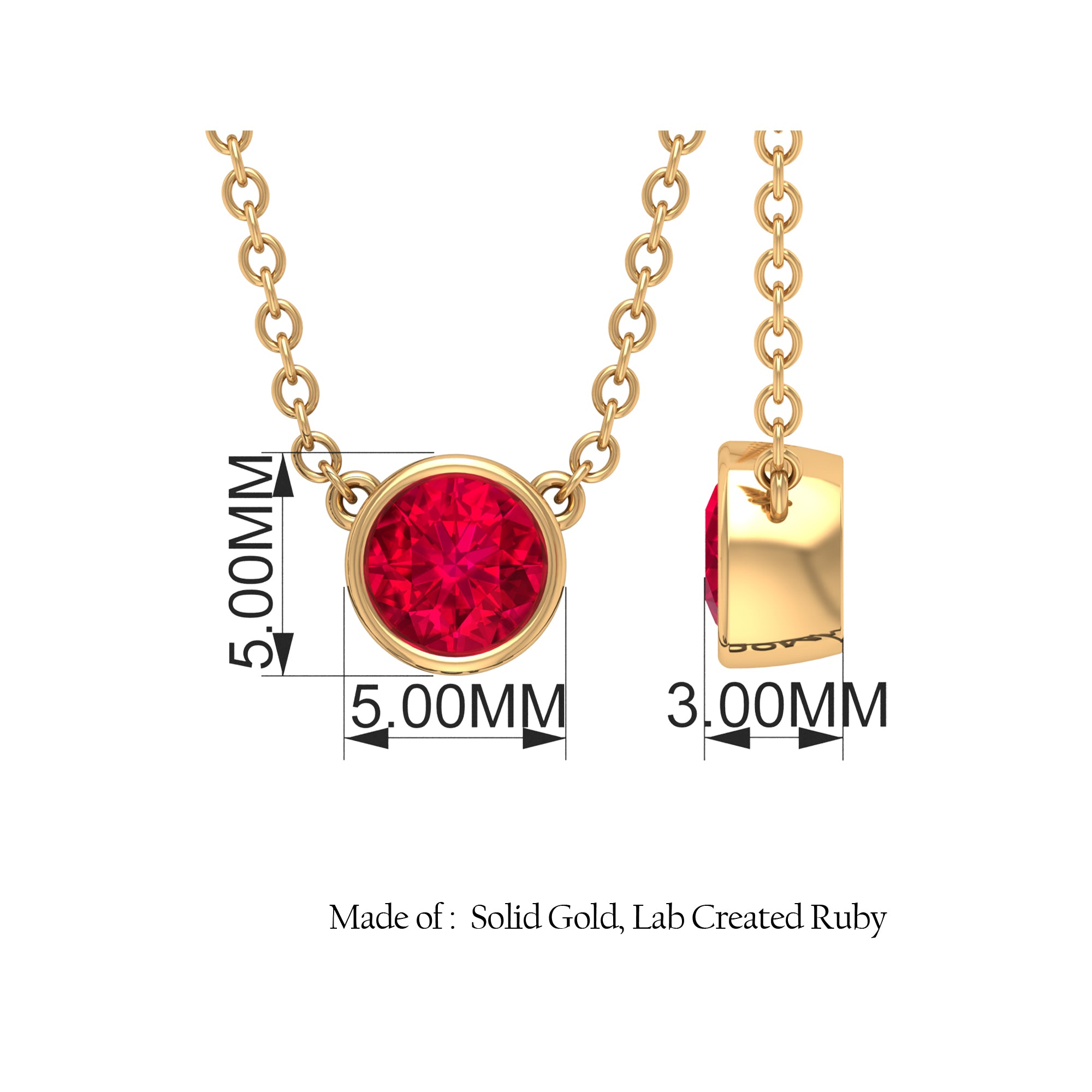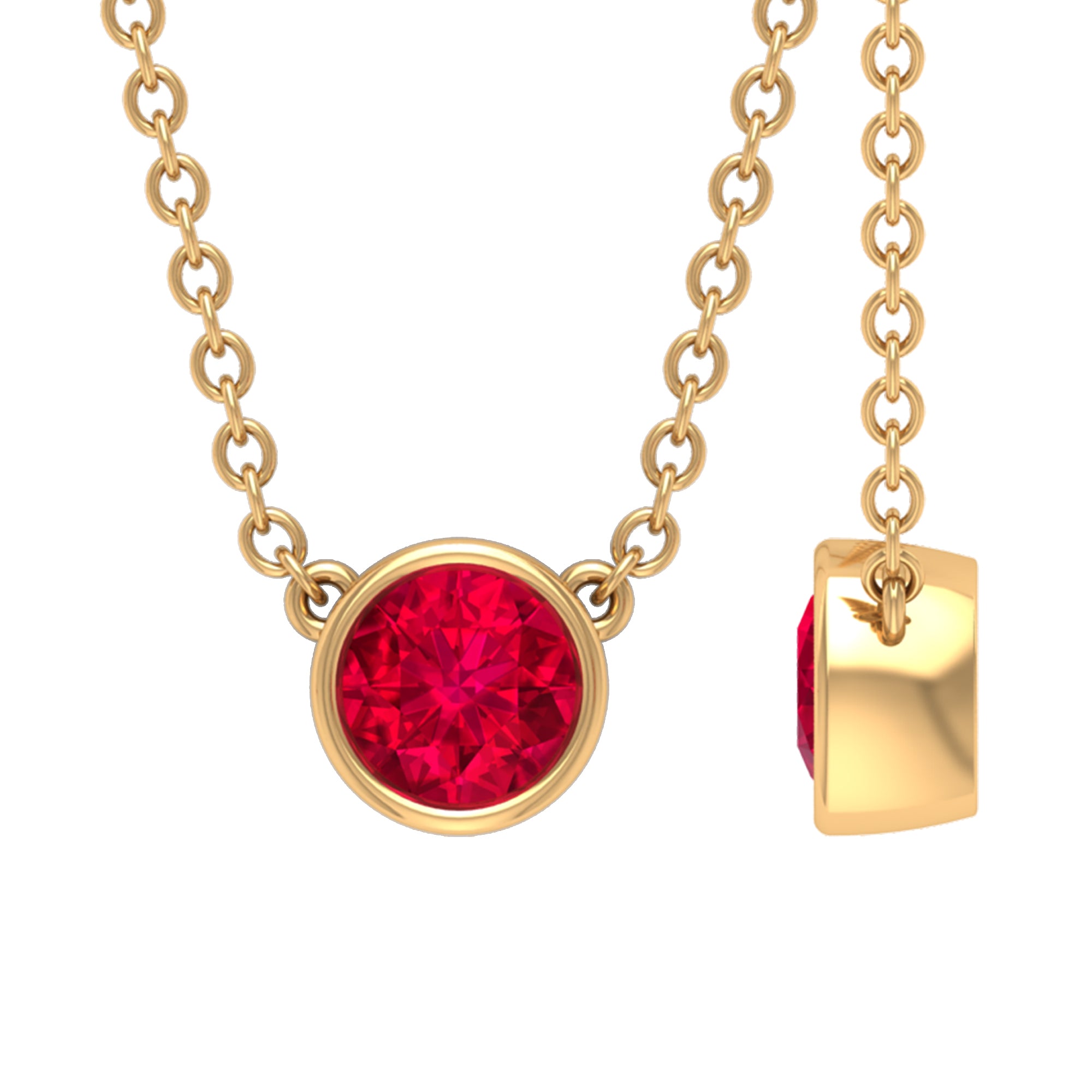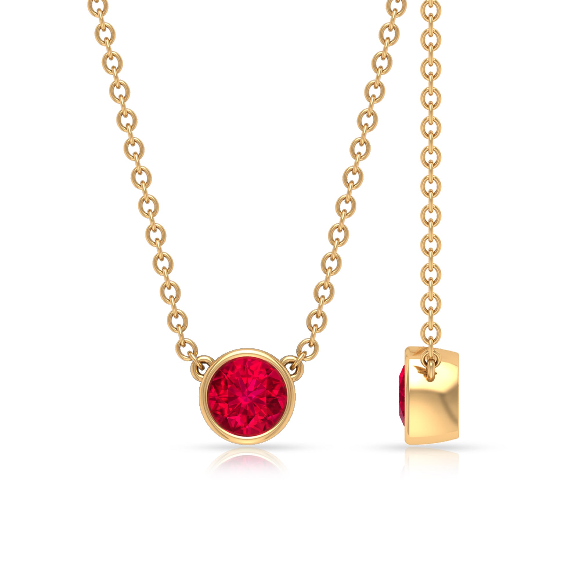 Round Created Ruby Solitaire Necklace