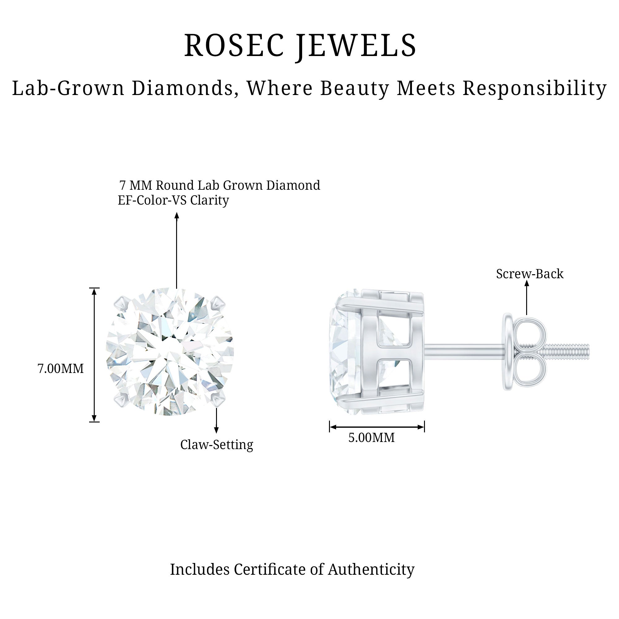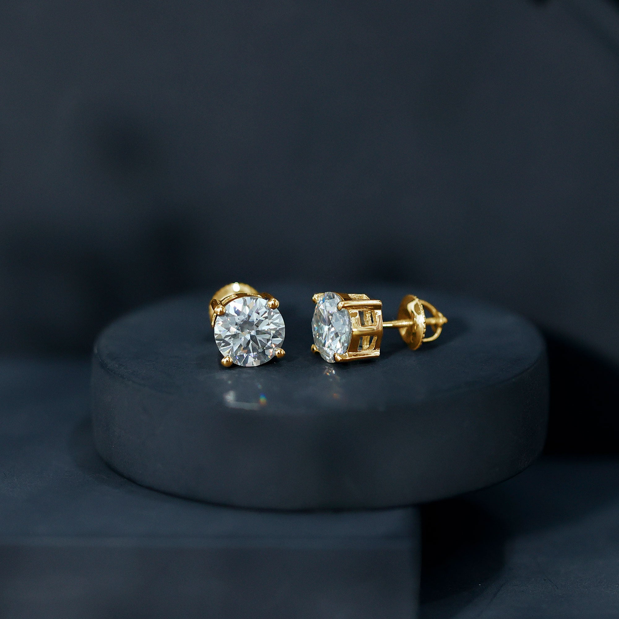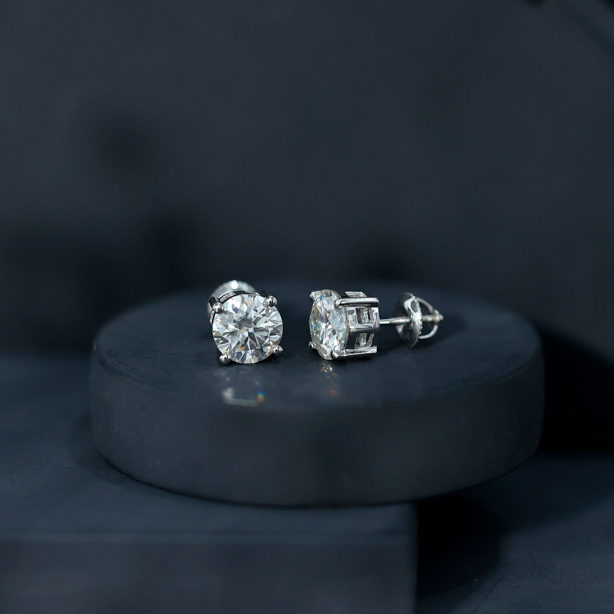 These Diamond Stud Earrings are a timeless piece that every jewelry collection deserves. The 7 MM Brilliant round cut diamonds shine with EF Color VS Clarity, making them a perfect match for any outfit. The 2.5 Carat Diamond Earrings are set in secure claw setting and comes with screw back closure, offer maximum safety and comfort for daily wear while adding just the right touch of luxury to your look. Whether you are dressing up for an evening out, heading to work, or simply running errands, these versatile Solitaire Studs are designed to go with everything. As a budget-friendly option for April birthstone jewelry, these Round Earrings make a thoughtful and meaningful gift for birthdays, anniversaries, Valentines Day, and other special celebrations.