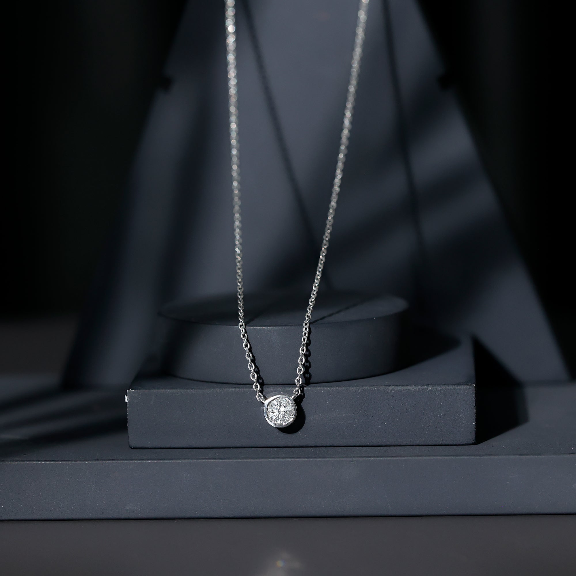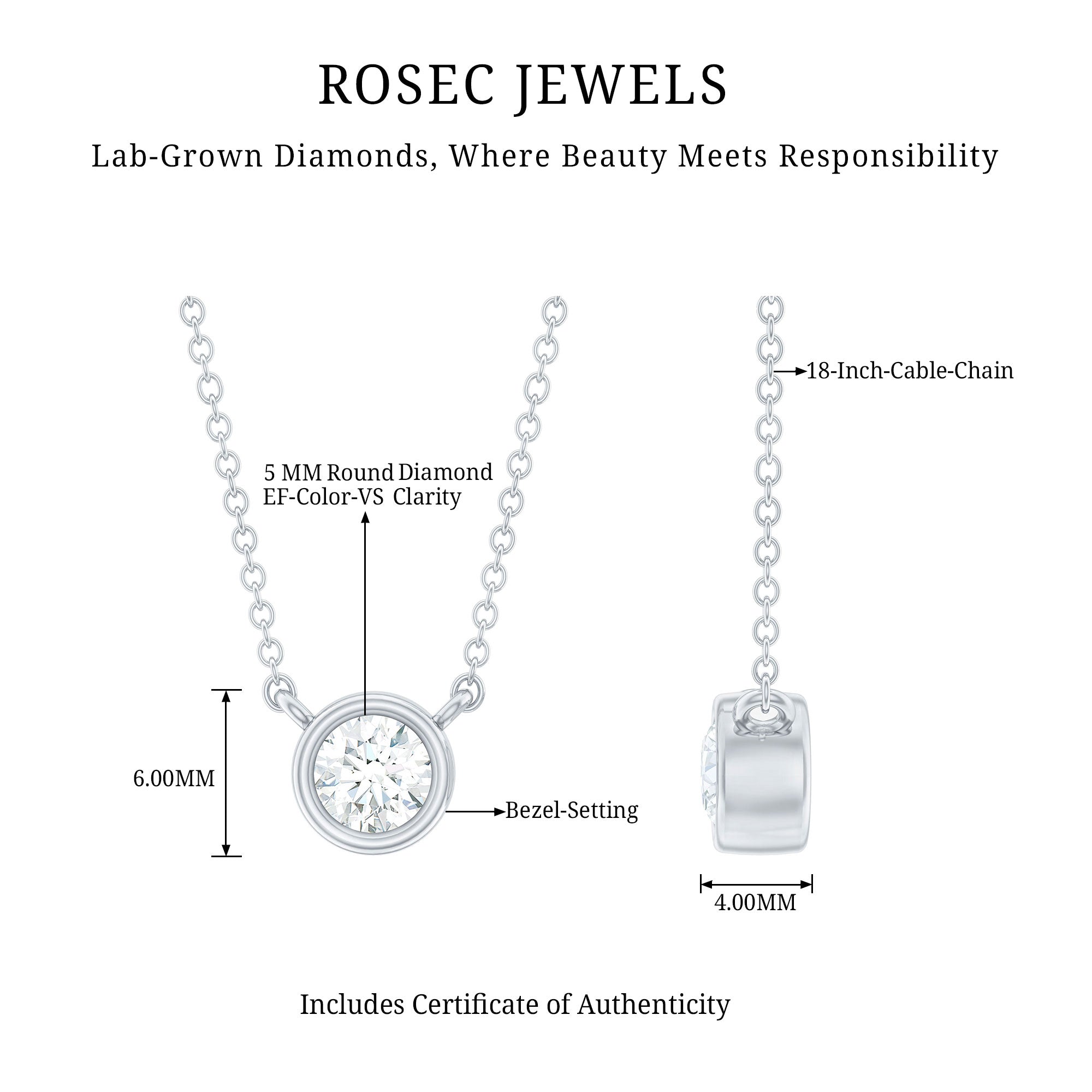 Round Cut 5 MM Lab Grown Diamond Solitaire Bezel Necklace