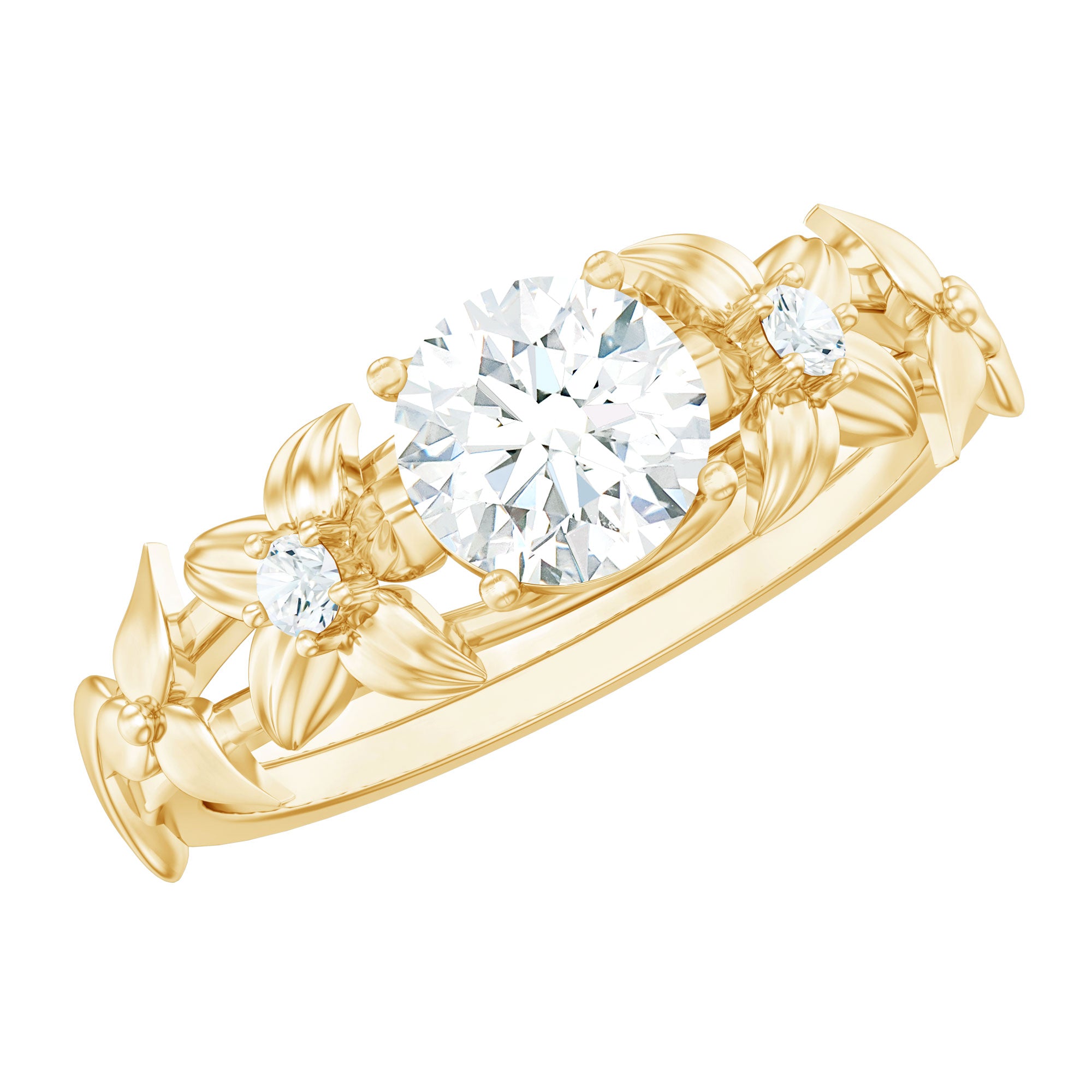 Round Cut 6 MM Moissanite Floral Engagement Ring