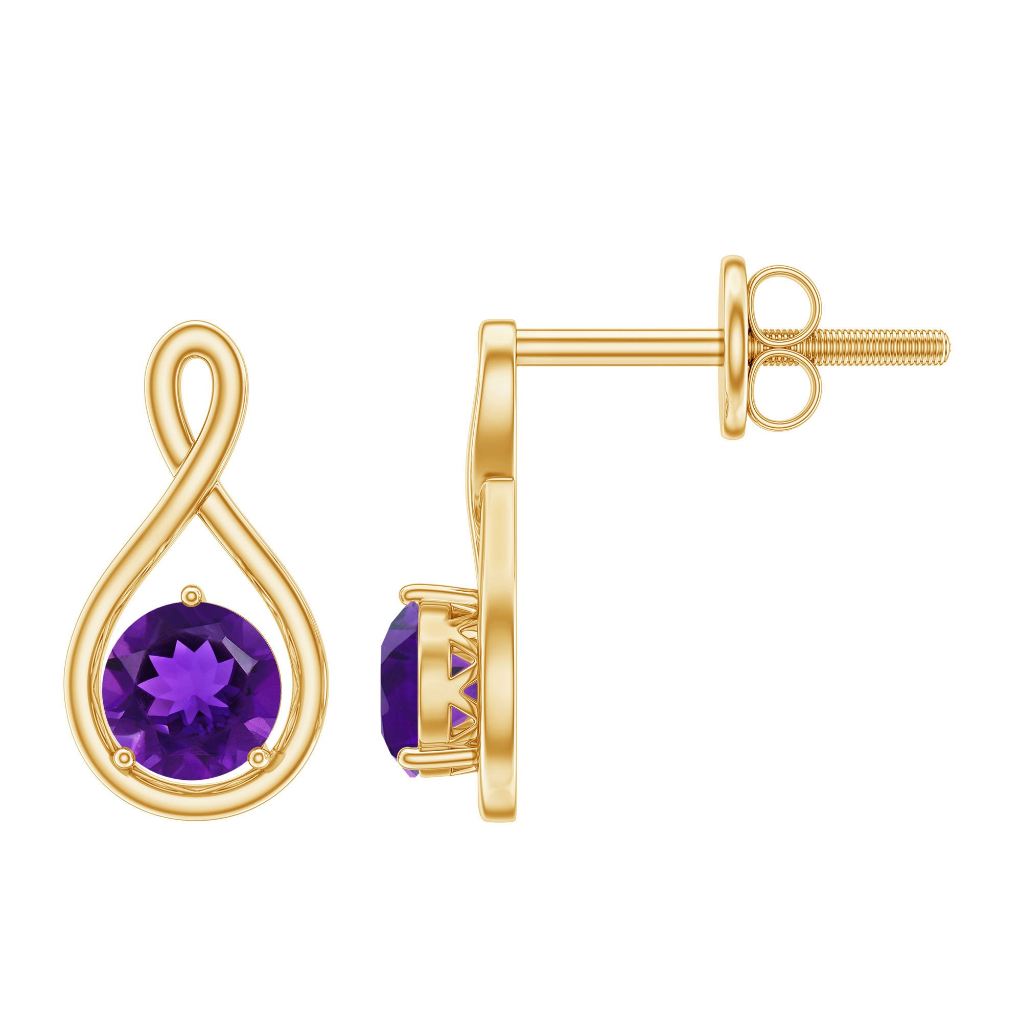 Genuine Solitaire Amethyst Infinity Earrings with Screw Back