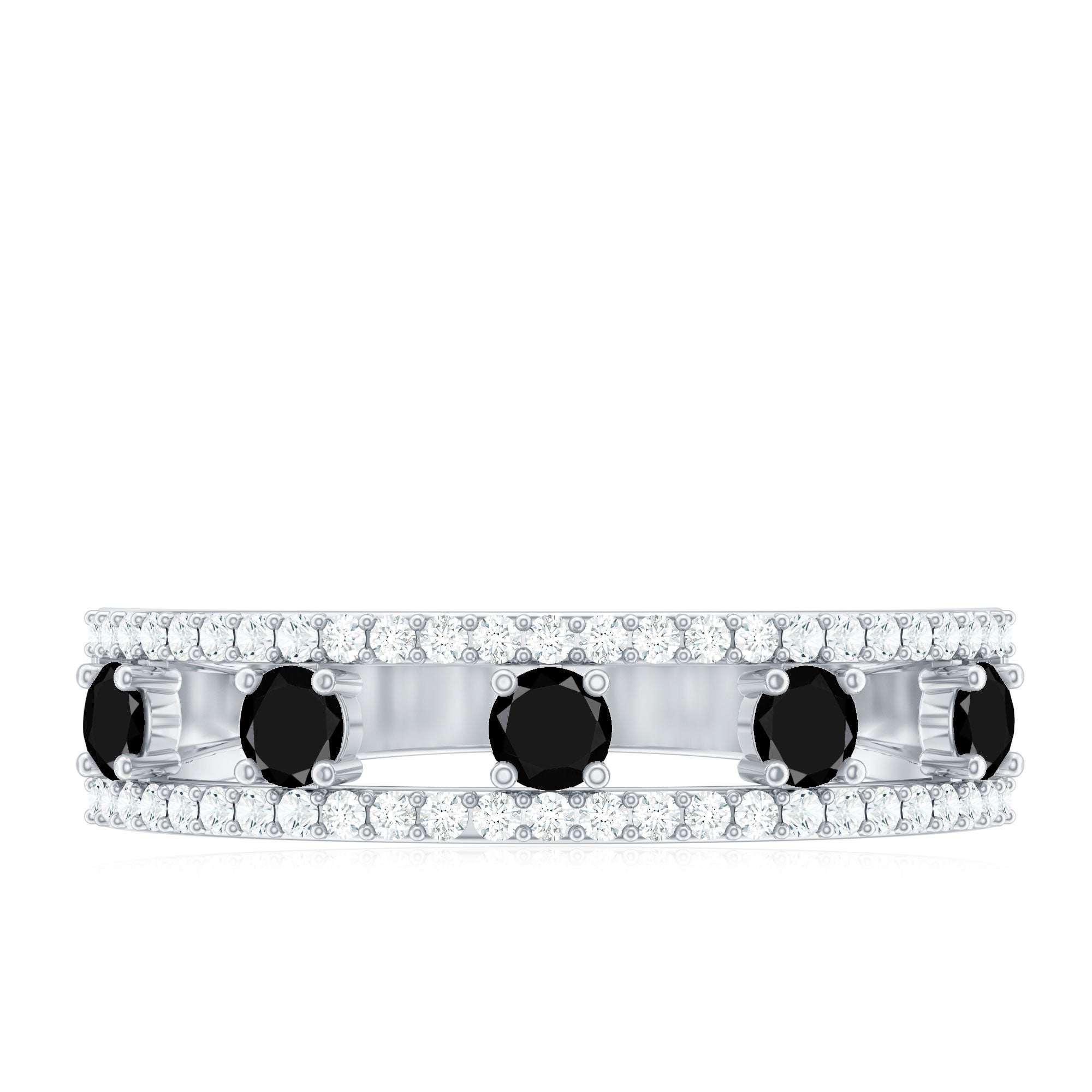 Round Cut Black Onyx and Diamond Half Eternity Band Ring