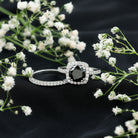 Round Cut Black Onyx Bridal Wedding Ring Set with Moissanite