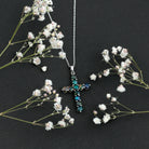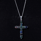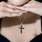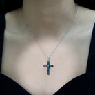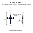 Round Cut Black Opal Cross Pendant Necklace in Silver