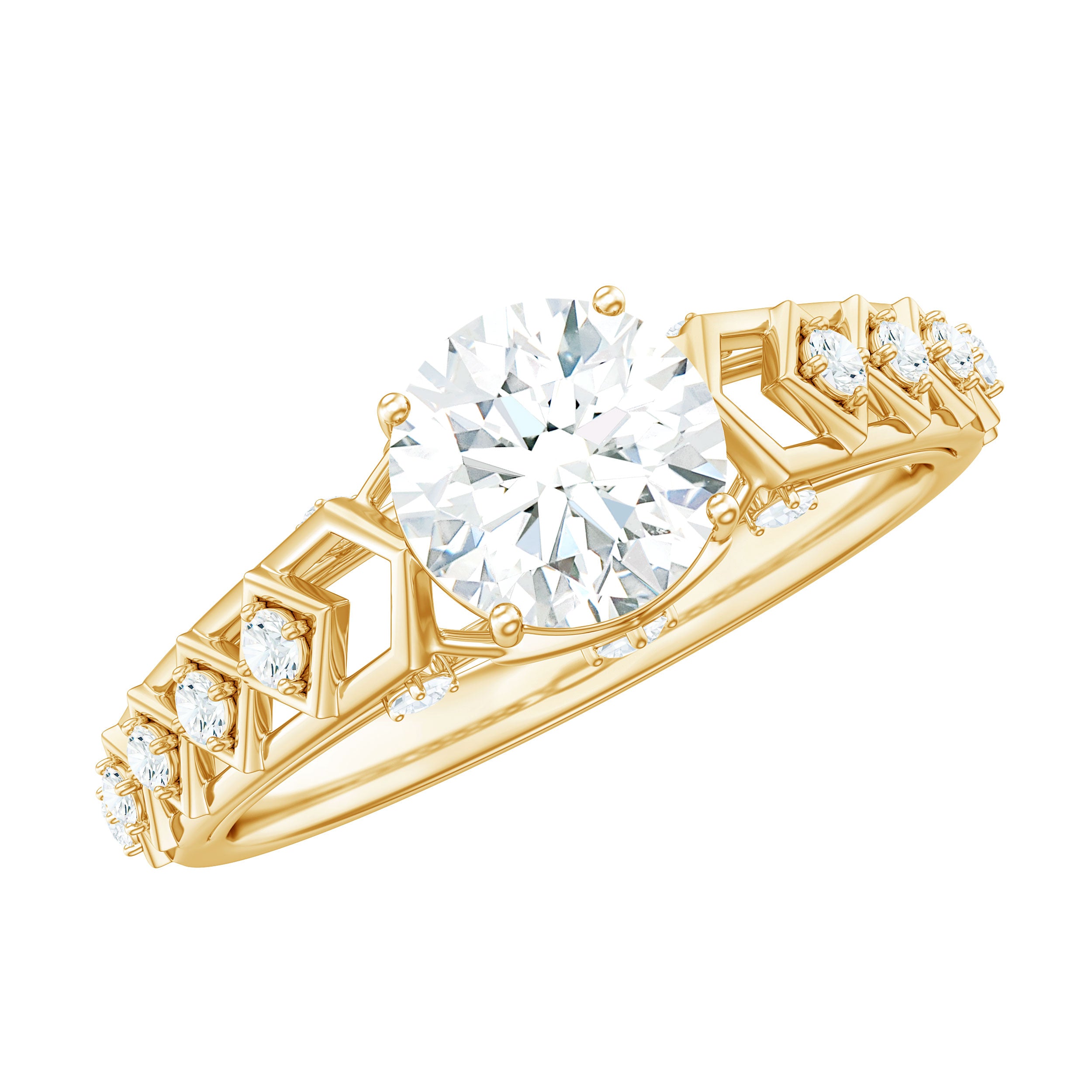 Round Cut Certified Moissanite Art Deco Engagement Ring