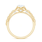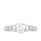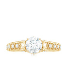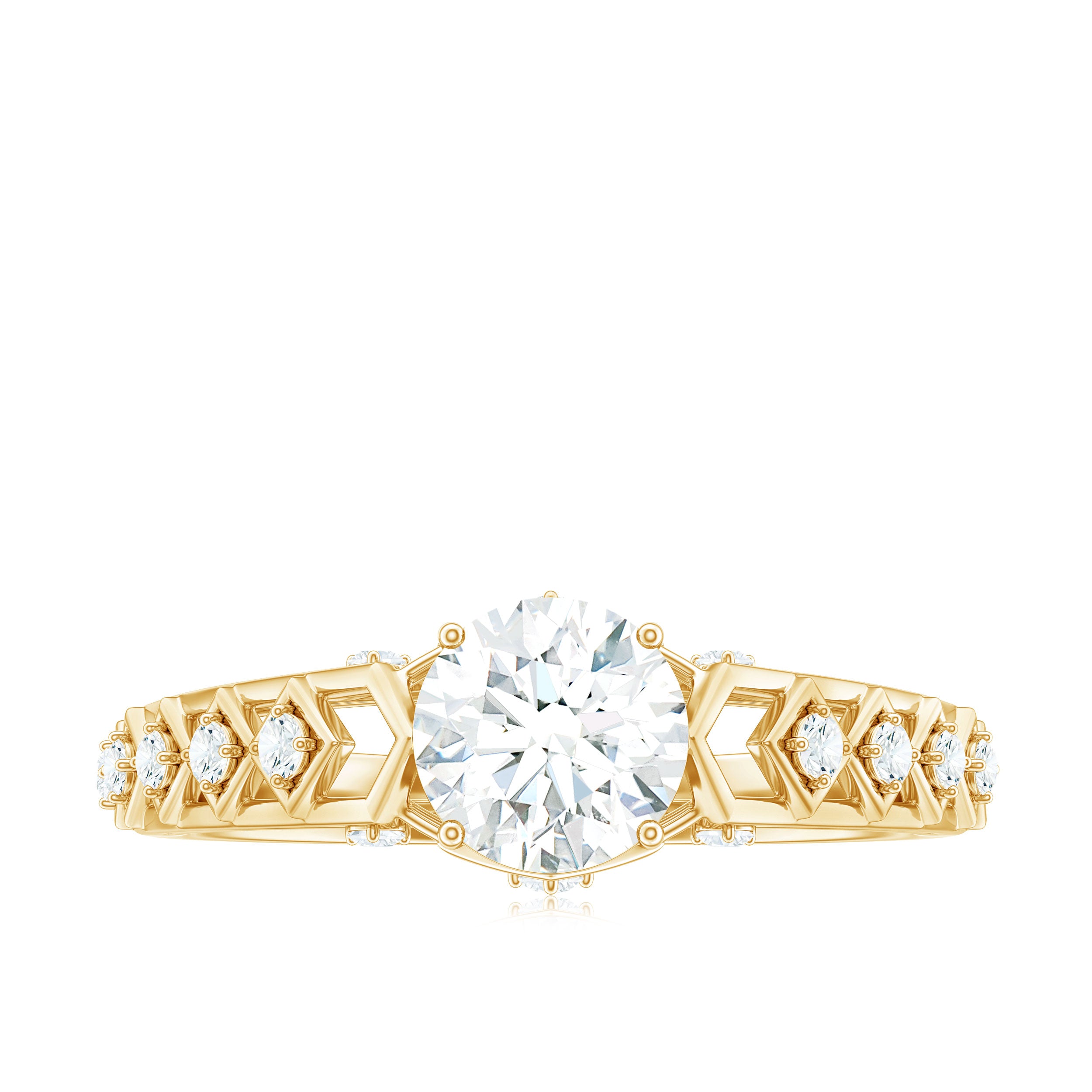 A Vintage Moissanite Engagement Ring for the couples that are all about old-school gestures of love! Boasting of sparkles, it features a Single Stone of Round Cut Moissanite that steals all the attention. Inspired by abstract Art Deco patterns, this Engagement Ring looks like a true piece of art that is beautified by side-stones of Round Cut Moissanite.