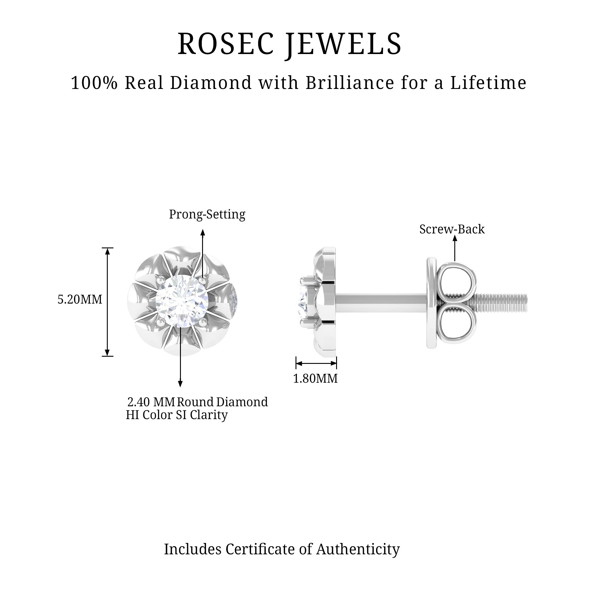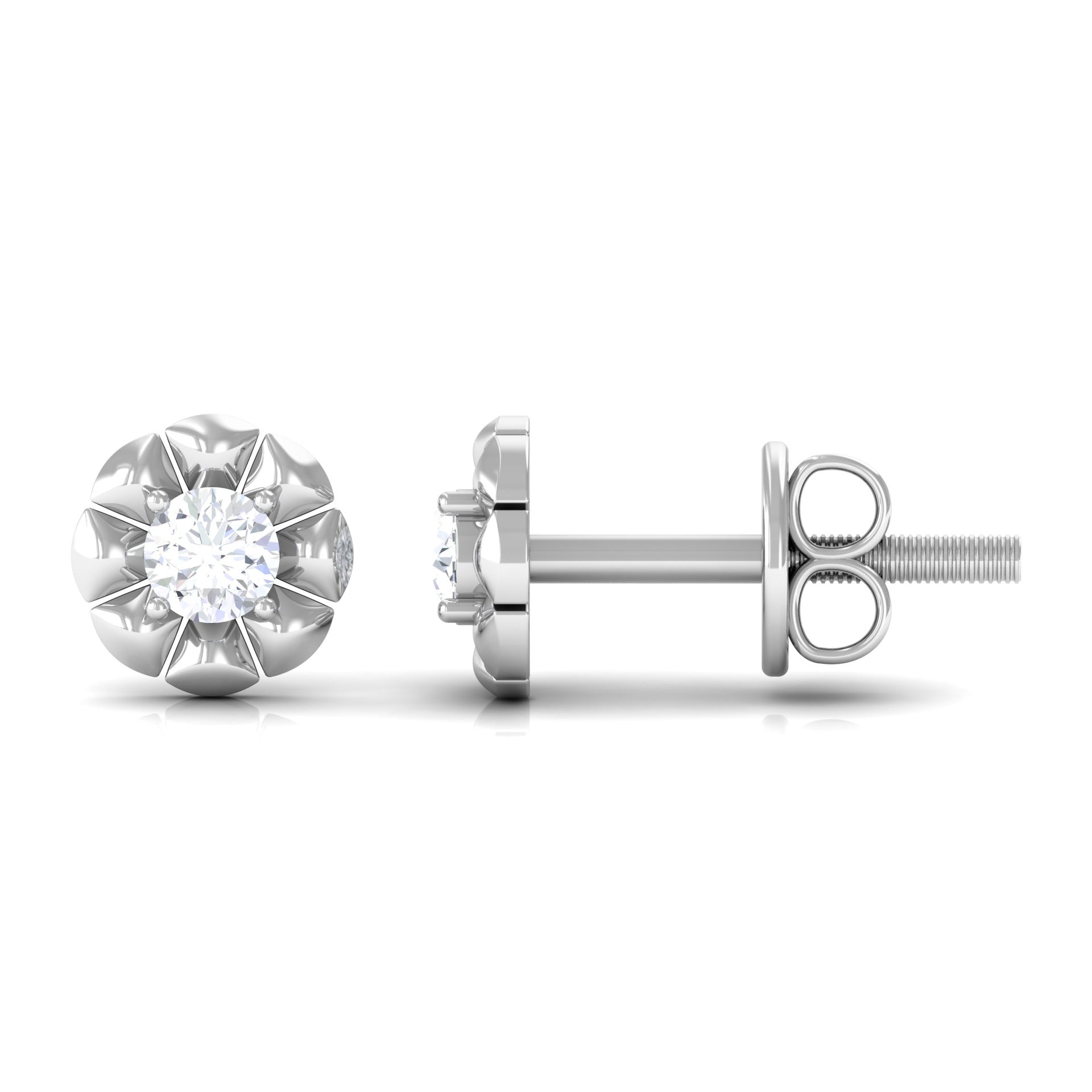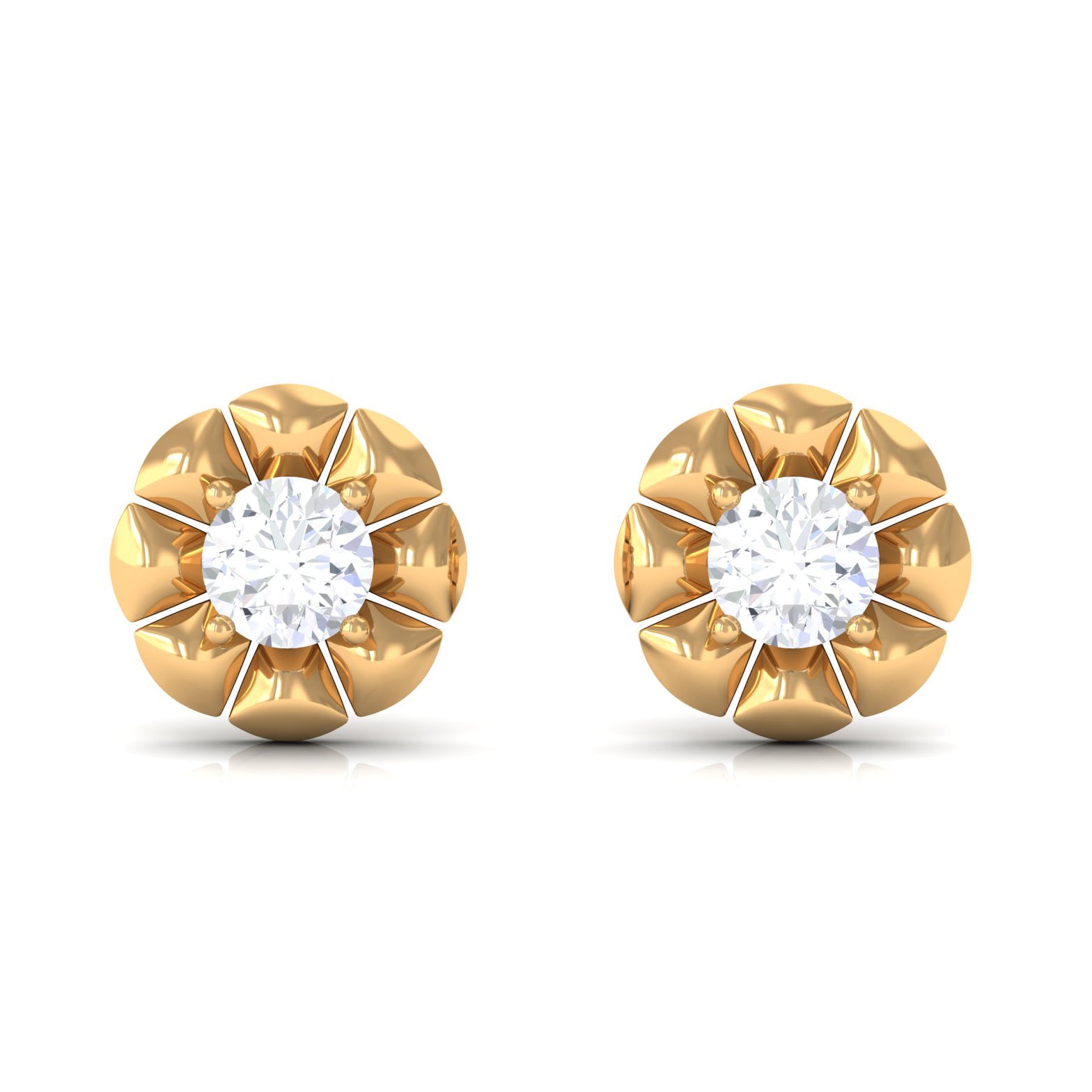 To mark a classic style statement here is the Diamond Stud Earring. This flower earrings are adorned with round-shaped diamonds in the prong setting which is decorated with metal petals making it a beautiful flower. These earrings embellished with HI-SI Diamond make it eye catchy. These Diamond Flower Earrings are classic and elegant which makes it perfect to be gifted on Valentines Day. The Floral look of these Nature Inspired Earrings represents the love and care you have.