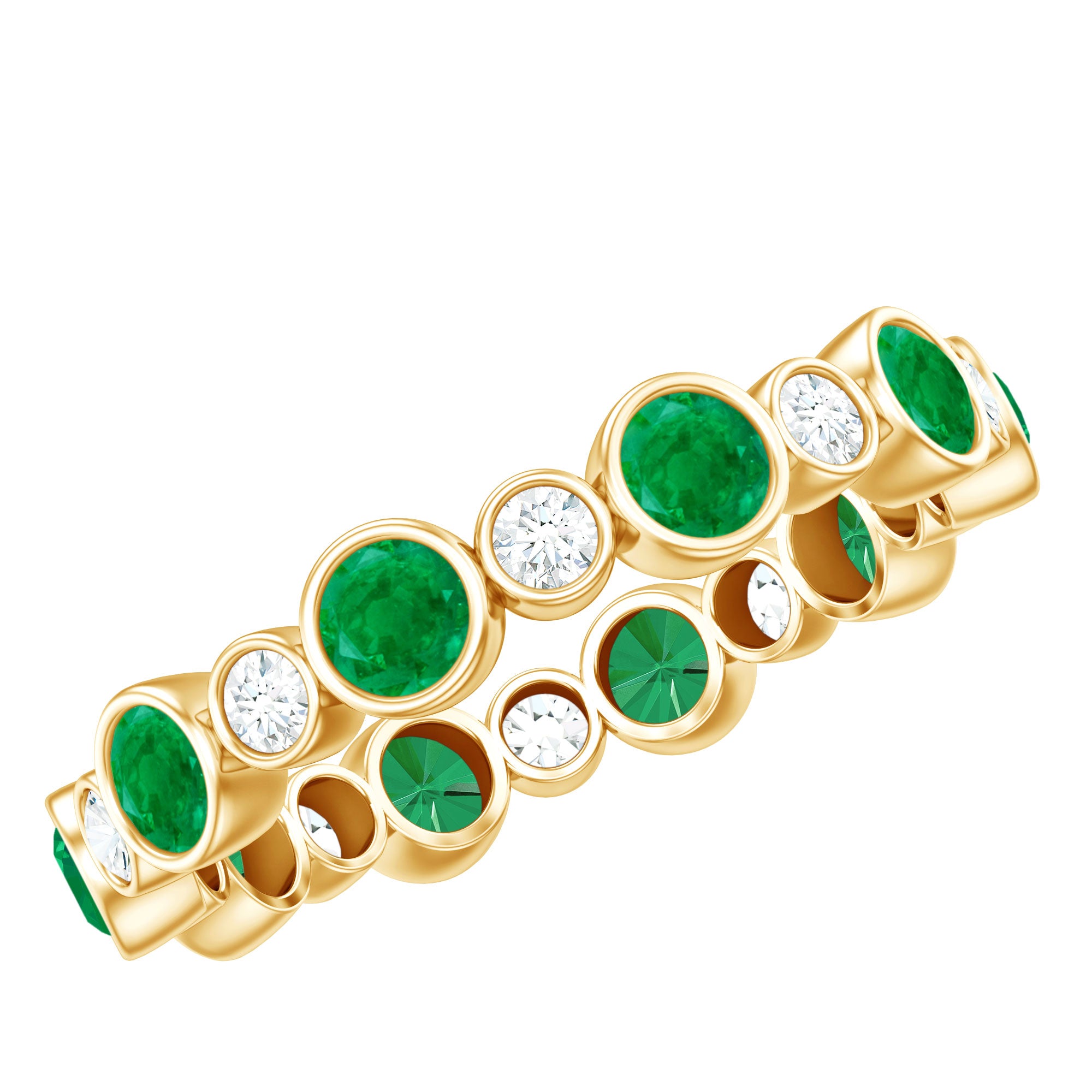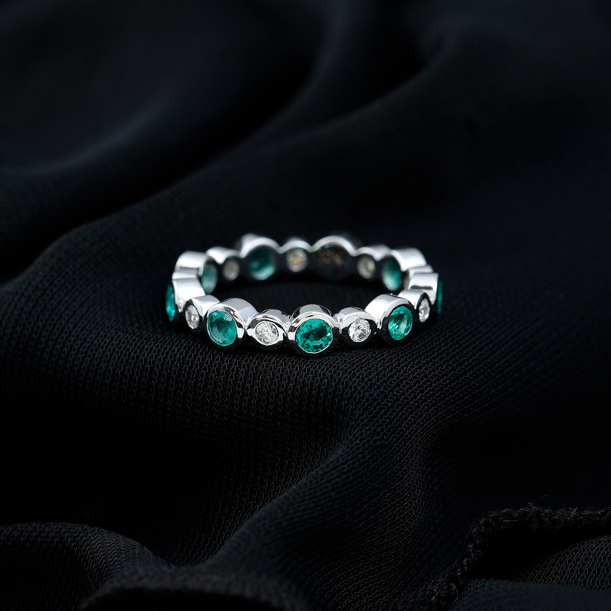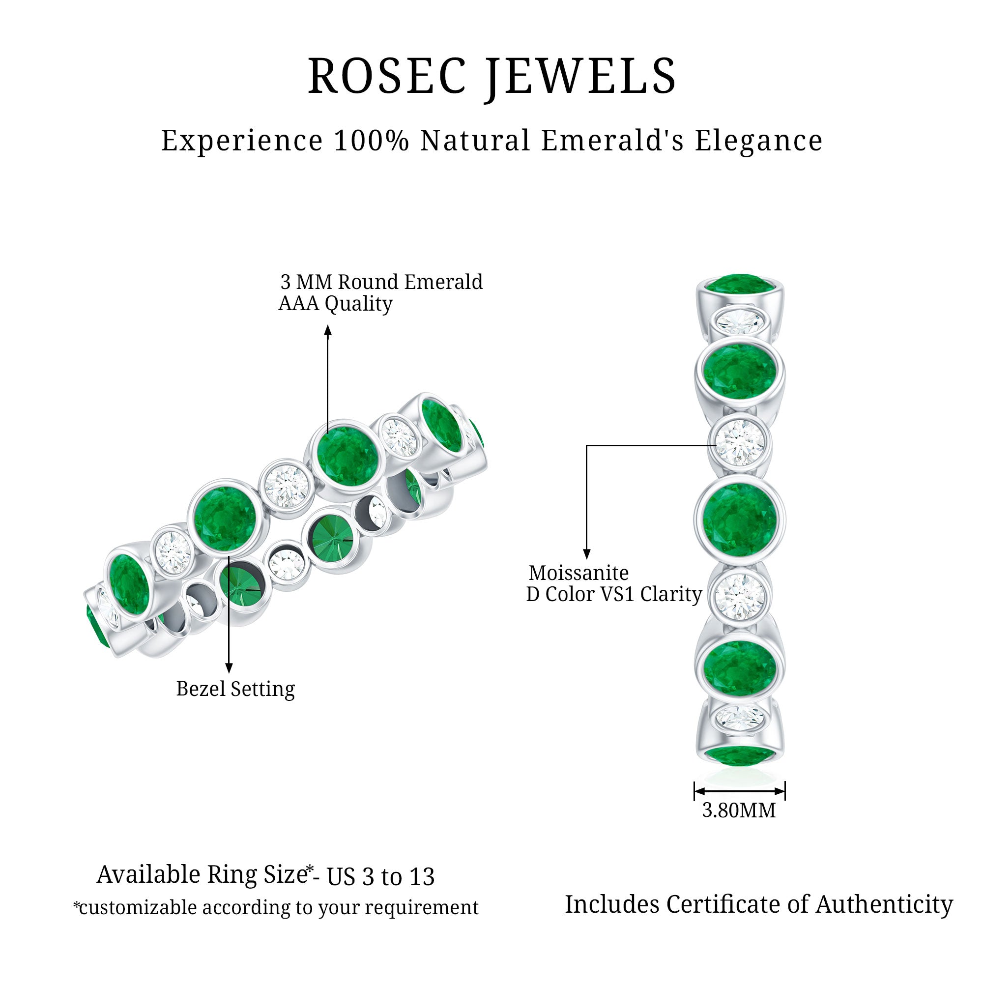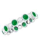 Bezel Set Round Emerald and Moissanite Eternity Wedding Band