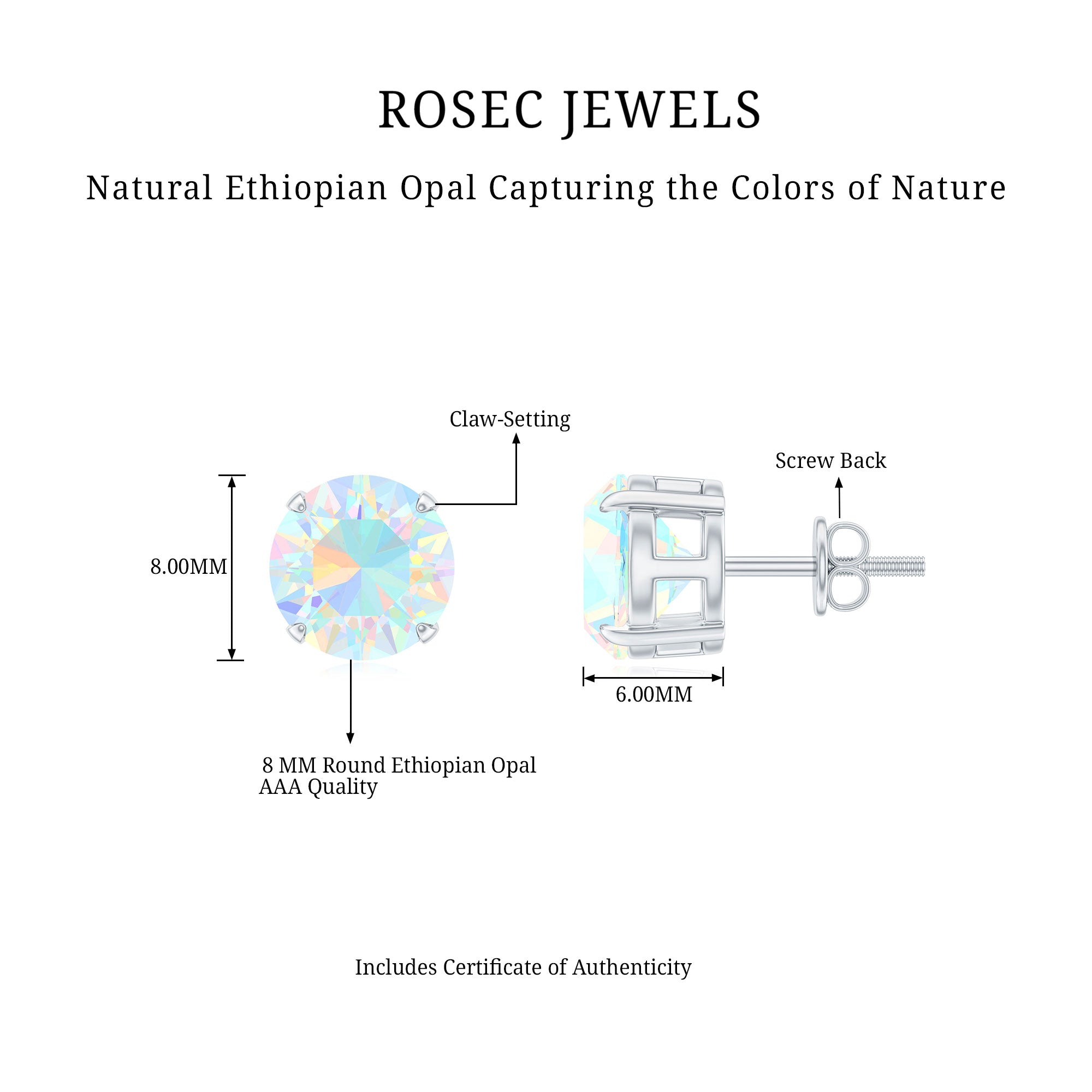Round Cut Ethiopian Opal Solitaire Stud Earrings for Women