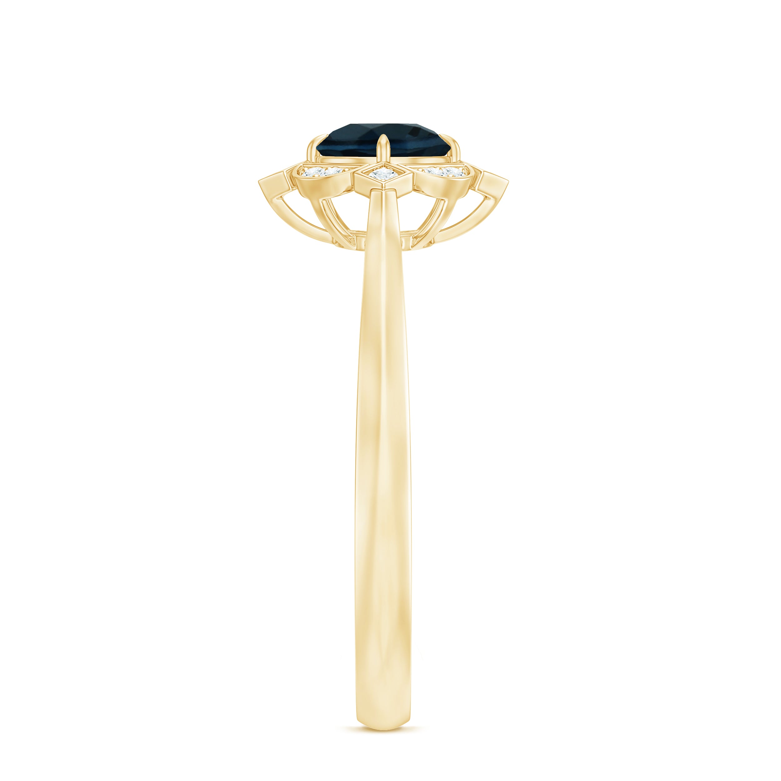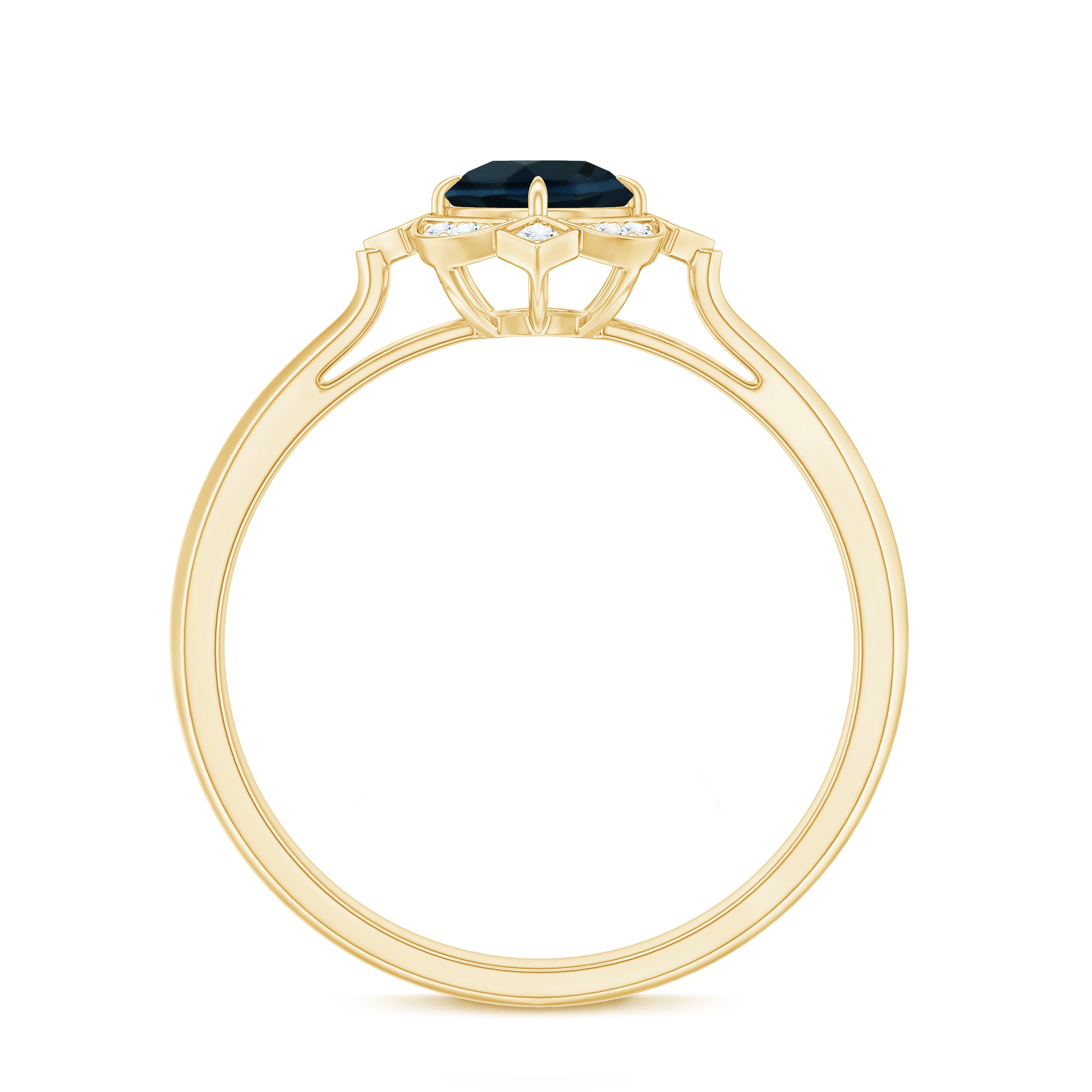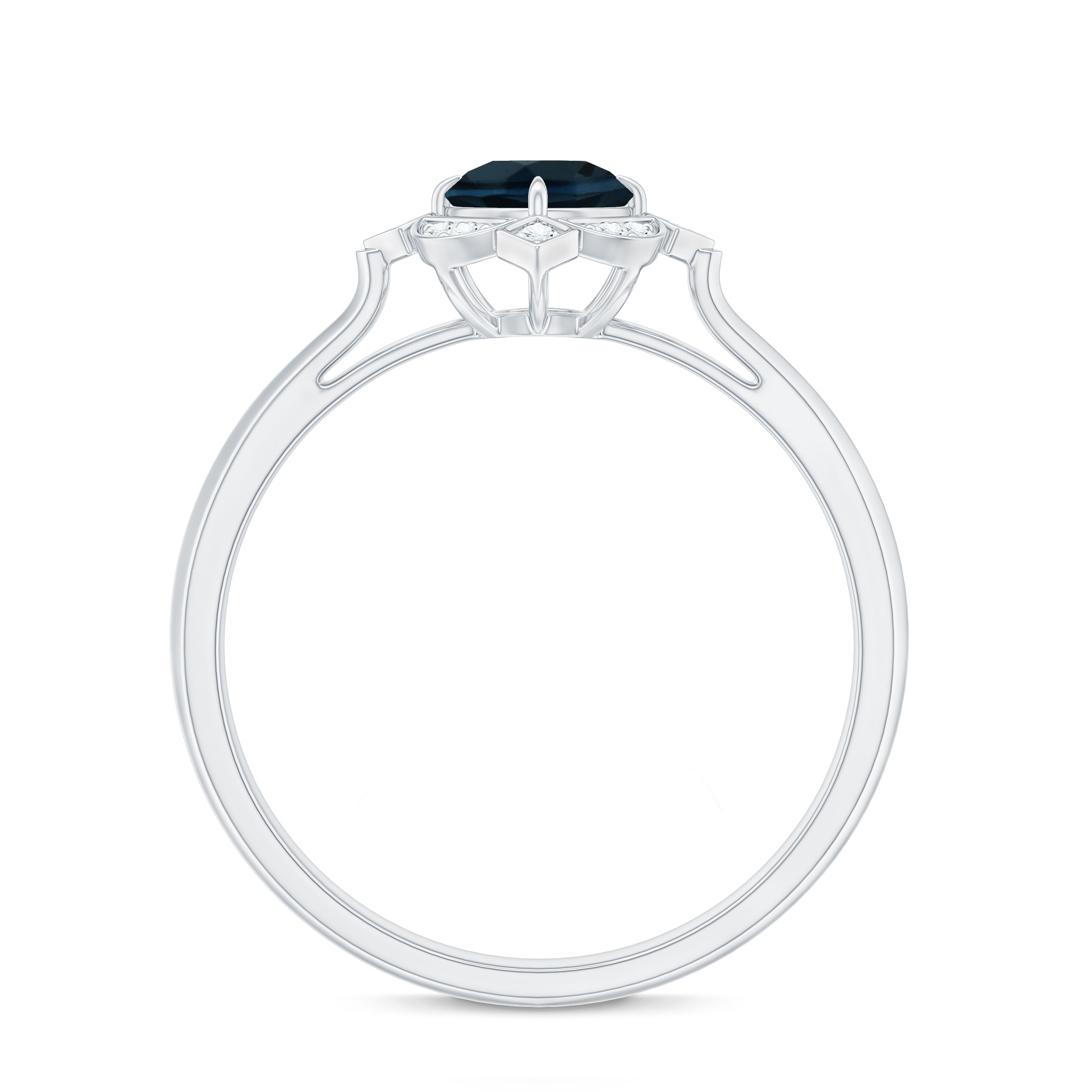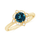 If she appreciates the charm of old school aesthetics and significant details, this Vintage Blue Topaz Ring is the ideal choice. It harmoniously combines classic elegance with timeless romance in an enchanting manner. At its core lies a 5 MM round shape london blue topaz, securely set in a claw setting. Encircling the onyx is a floral halo of genuine diamonds, imparting the London Blue Topaz Engagement Ring with a delicate and antique essence - reminiscent of treasures found in a cherished heirloom box. The halo design not only enhances the sparkle but also softens the striking center stone, resulting in a balanced and exquisite appearance that feels both distinctive and graceful. Constructed with AAA quality london blue topaz and HI-SI quality diamonds, this Floral Engagement Ring is designed for durability and intended to be cherished for many years. It is an excellent choice for proposals, anniversaries, or even as a considerate gift. The floral silhouette, vintage embellishments, and rich contrast of the stones render this Natural Blue Topaz and Diamond Ring a remarkable addition to any jewelry collection.