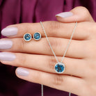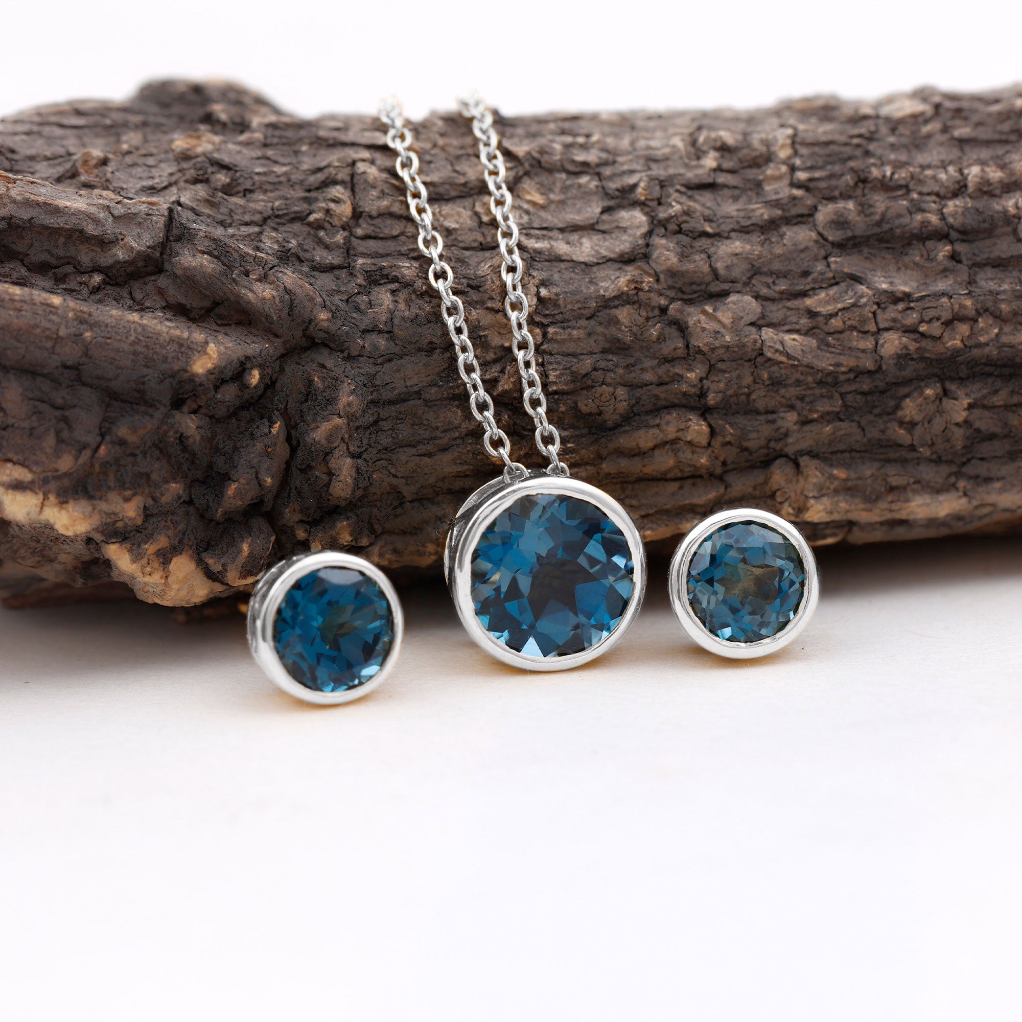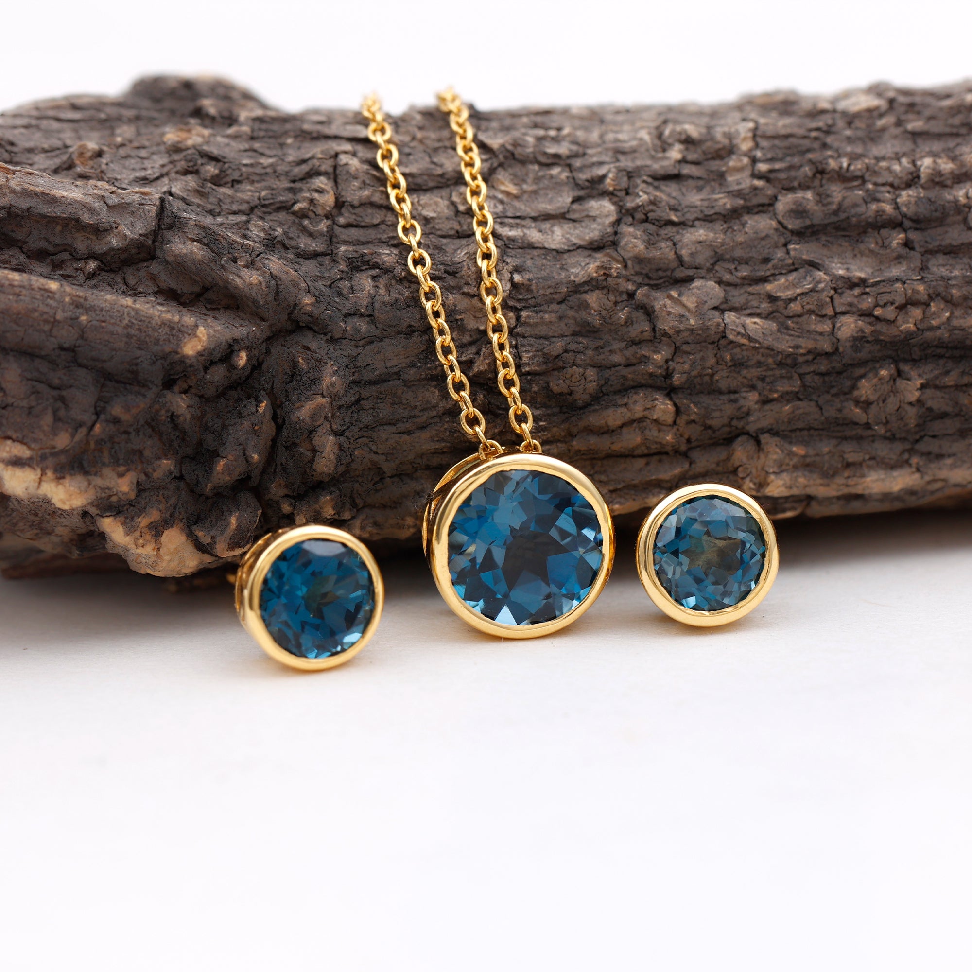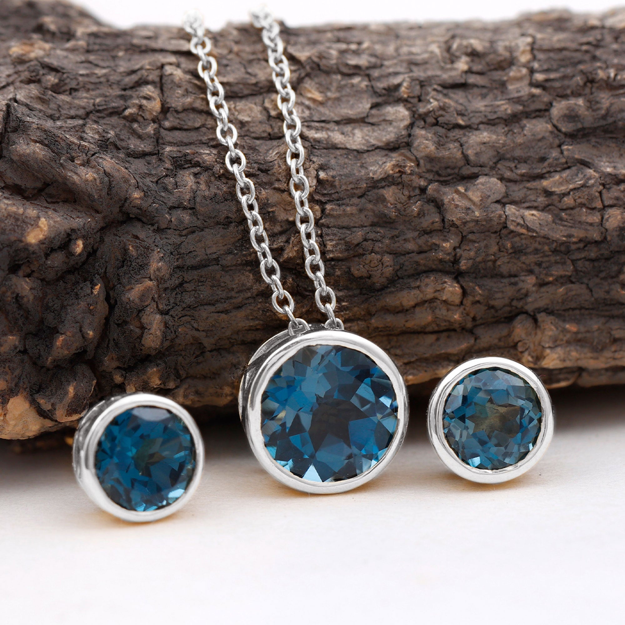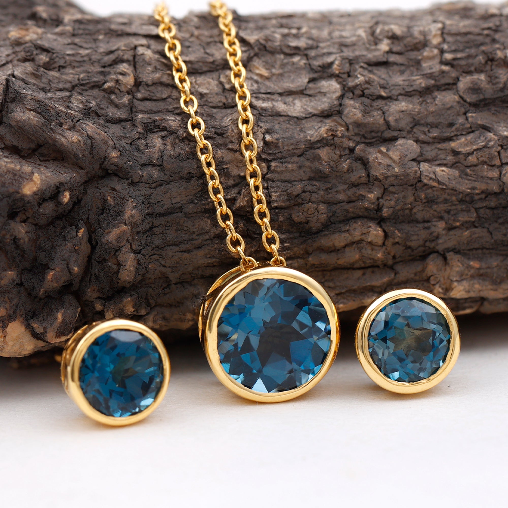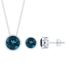 Round Cut London Blue Topaz Solitaire Jewelry Set in Bezel Setting