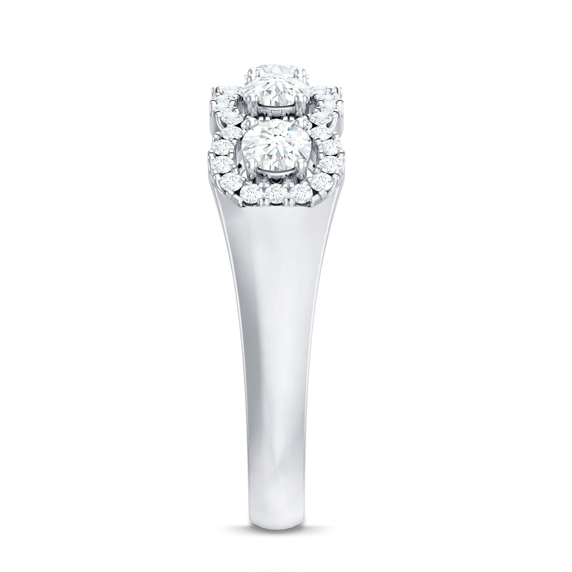 The halo arrangement enhances light reflection, allowing each stone to stand out while maintaining harmony across the design.