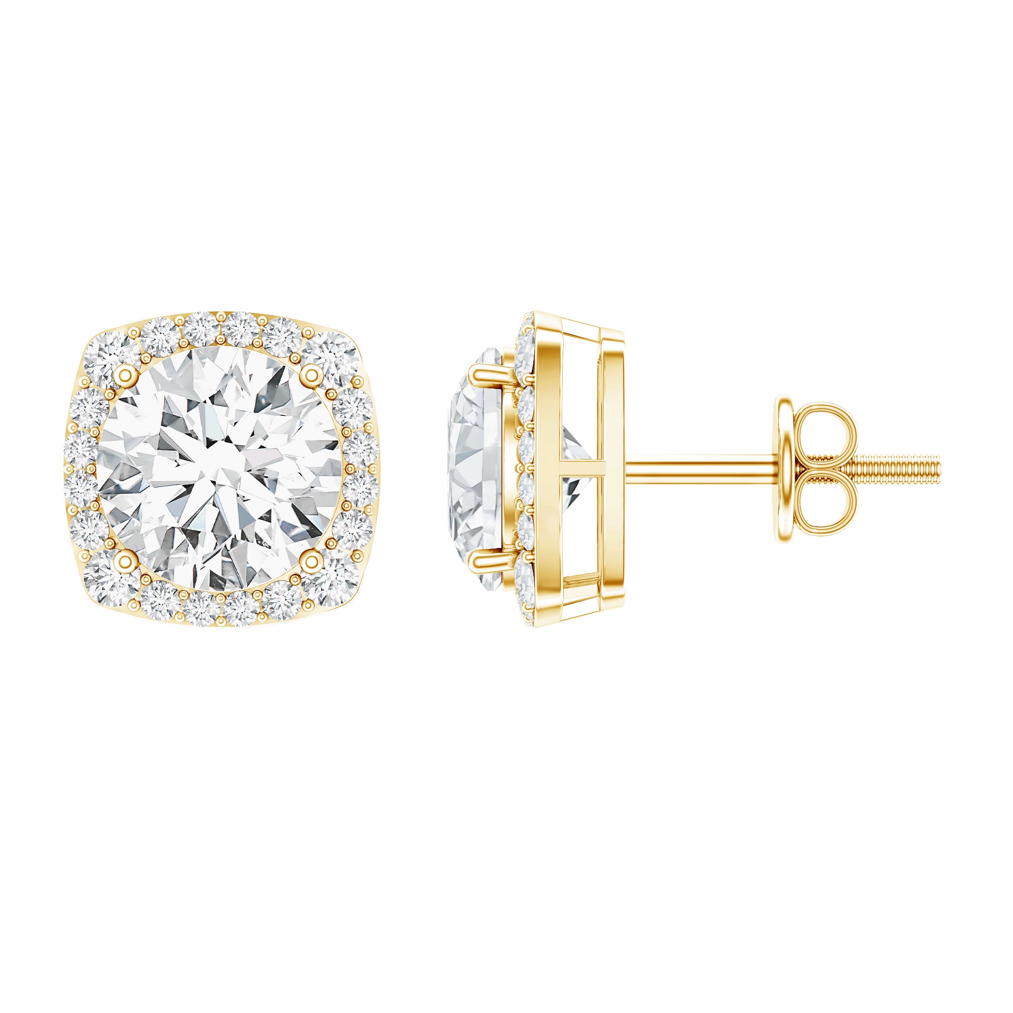 Moments of joy feel even sweeter when paired with our most stunning Moissanite Stud Earrings, designed to add sparkle and elegance to any ensemble. Showcasing a 7 MM round cut moissanite, securely held in prong setting. Surrounding the central stone is a delicate halo of smaller round moissanite stones, producing a stunning effect that amplifies the allure of the Round Stud Earrings. The Classic Halo Earrings feature a screw back closure, ensuring they remain comfortably in place throughout the day. Lightweight and simple to wear, they are perfect for daily wear as well as special events. Their adaptable design makes them an excellent complement to both casual and formal attire, making them a timeless addition to any jewelry collection. These Halo Stud Earrings serve as a thoughtful and significant gift for birthdays, anniversaries, or other special occasions, symbolizing love, commitment, and enduring beauty.