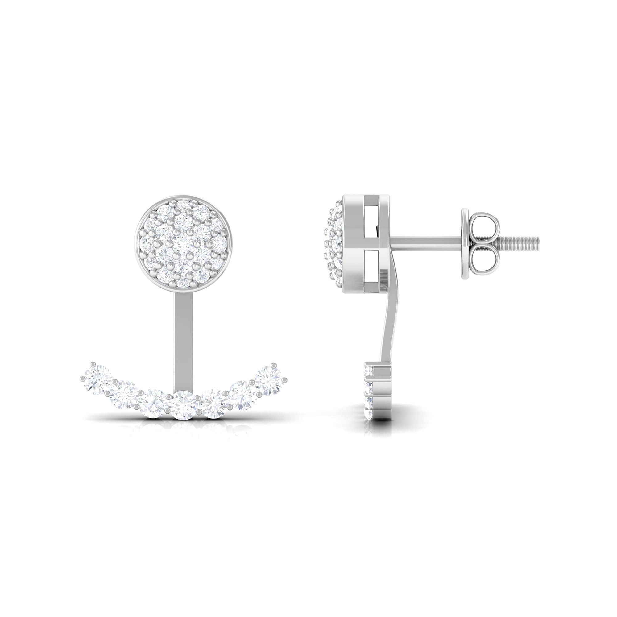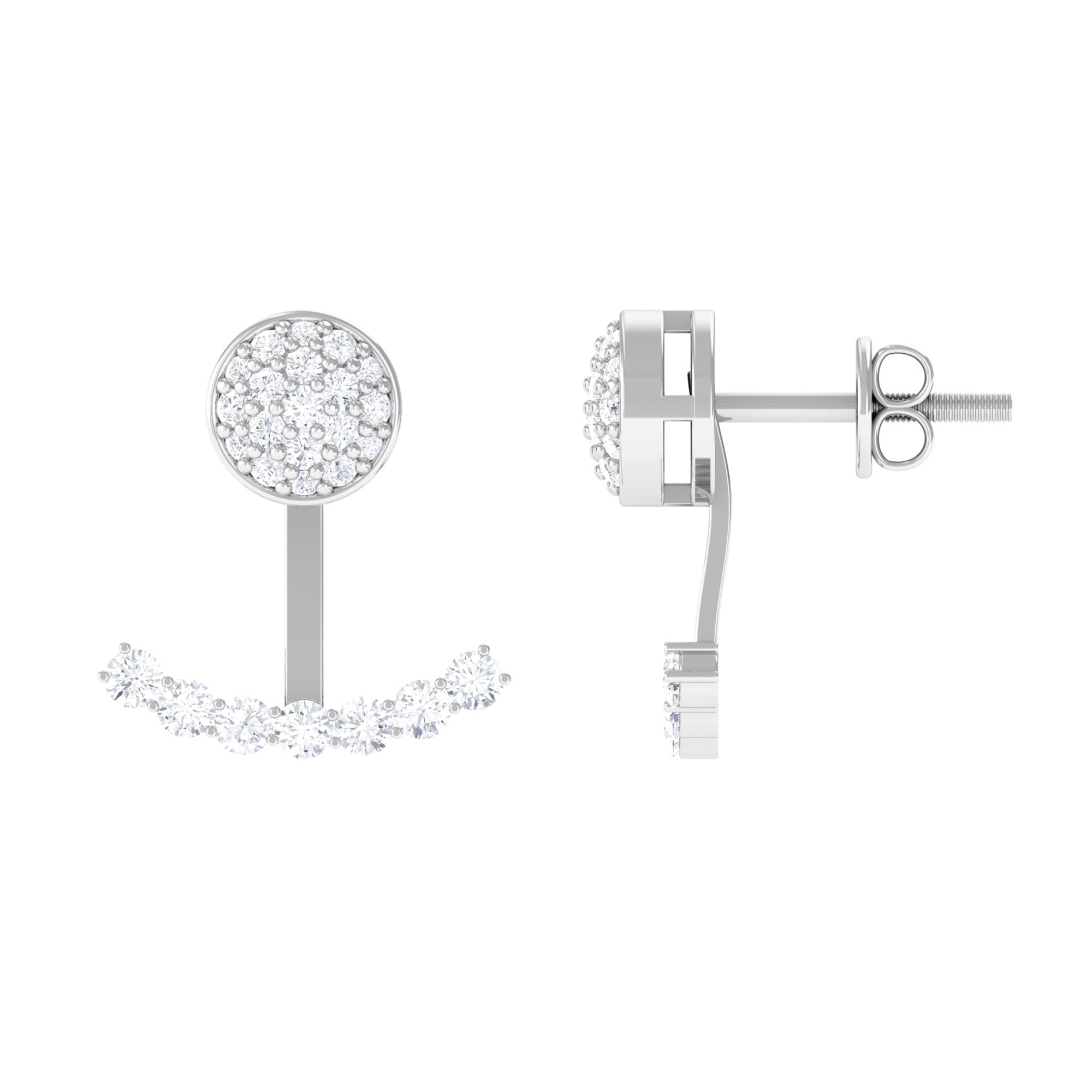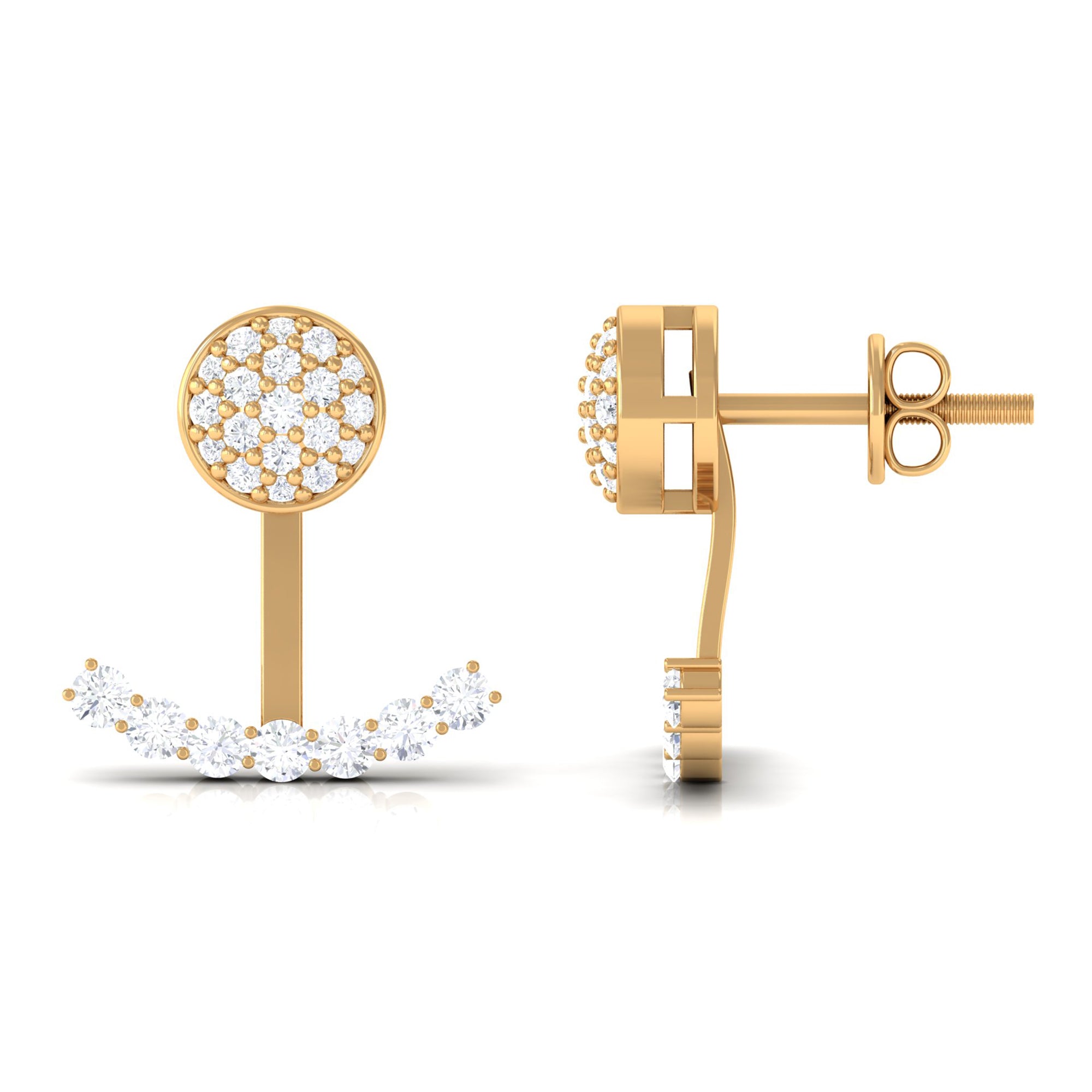 Add a touch of glamour to your look with these Ear Jacket Earrings. Crafted in Gold, the Front Back Earrings are adorned with Round Cut Moissanite at the front and on the jacket, making them a stunning pair. The Moissanite Earrings come with secure screw-back closures. Wear them with your formal or casual attire and watch as they elevate your fashion game. Celebrate your special occasion with these unique Double-Sided Earrings, which make a perfect anniversary gift for your significant other.