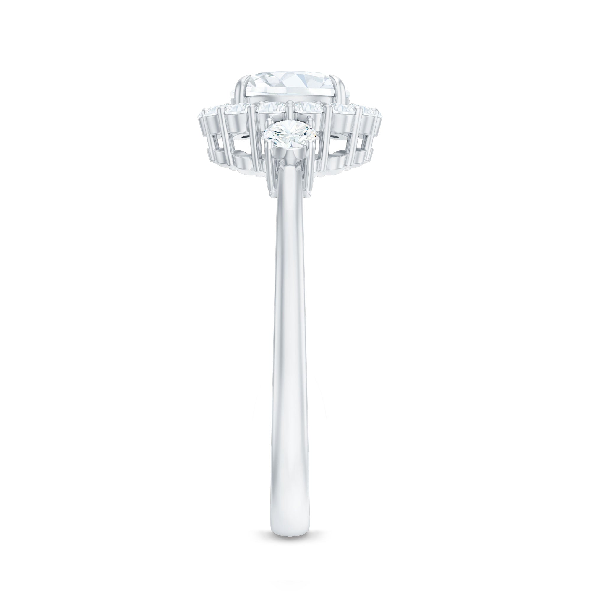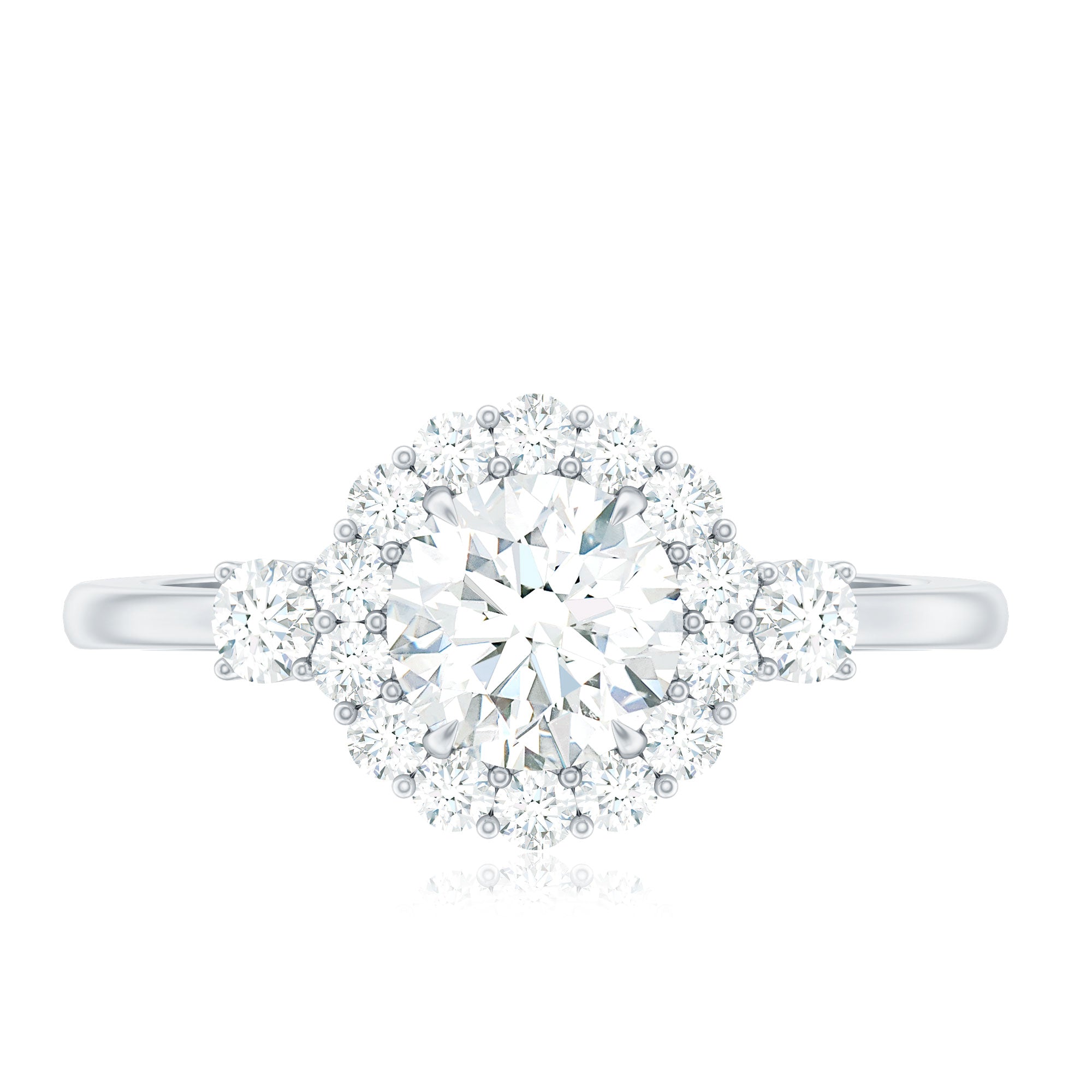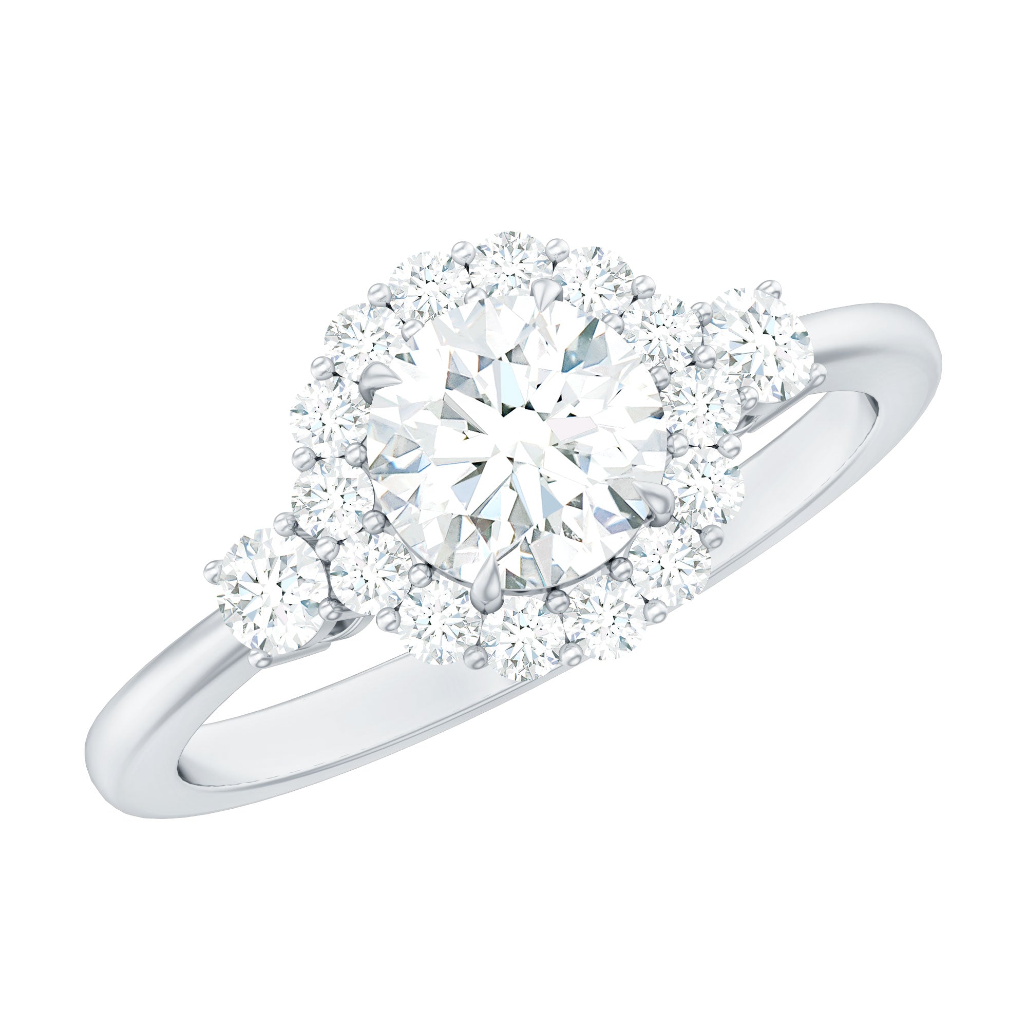 Round Cut Moissanite Halo Engagement Ring with Certificate
