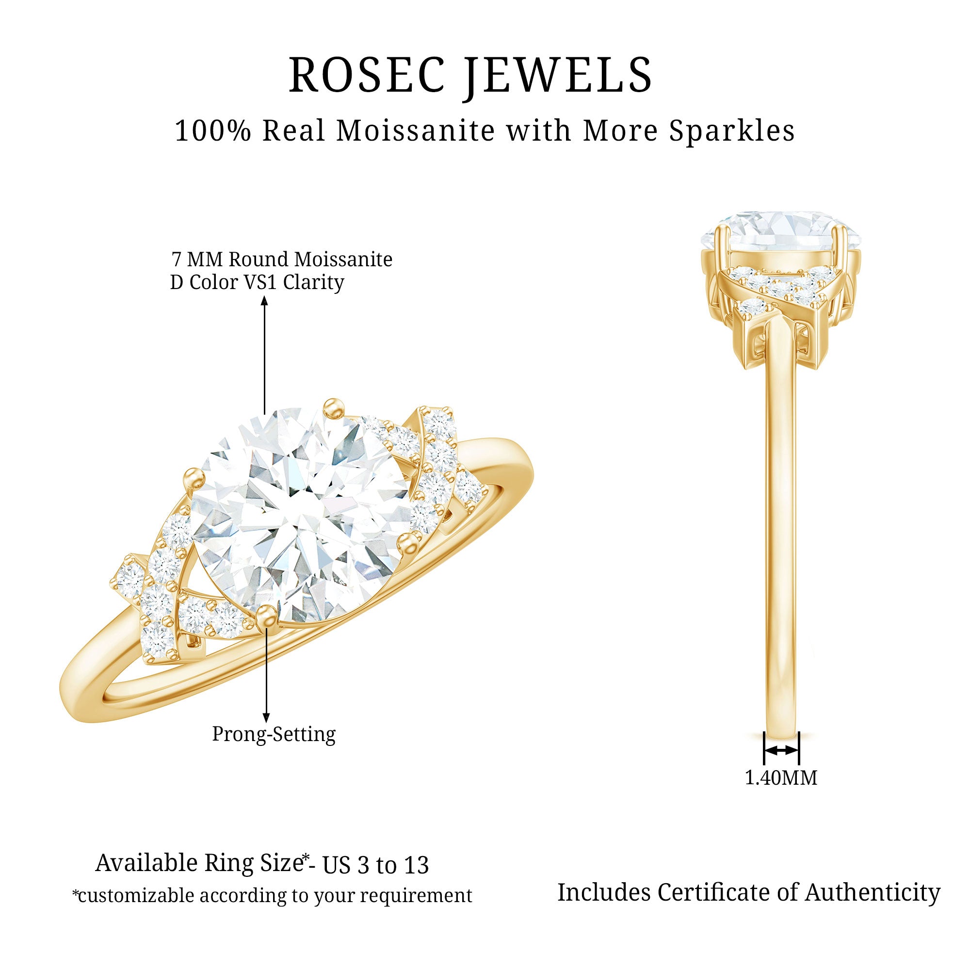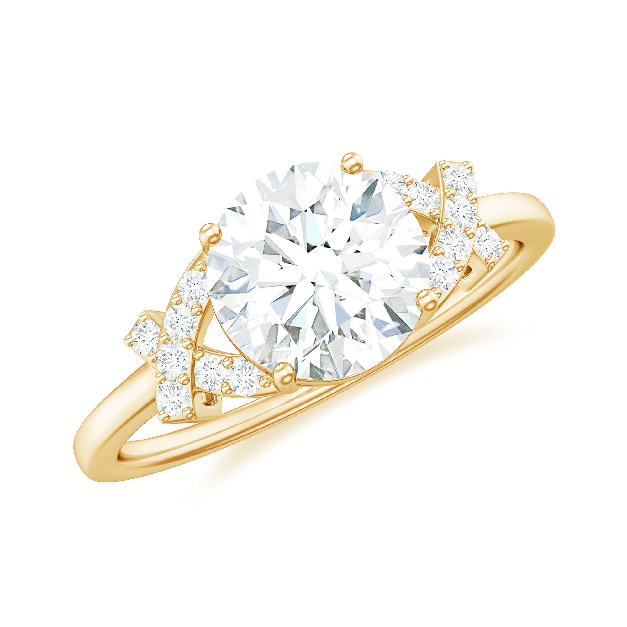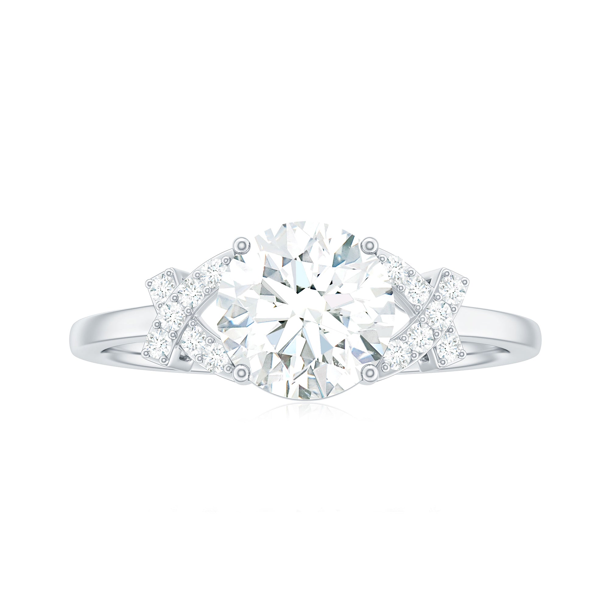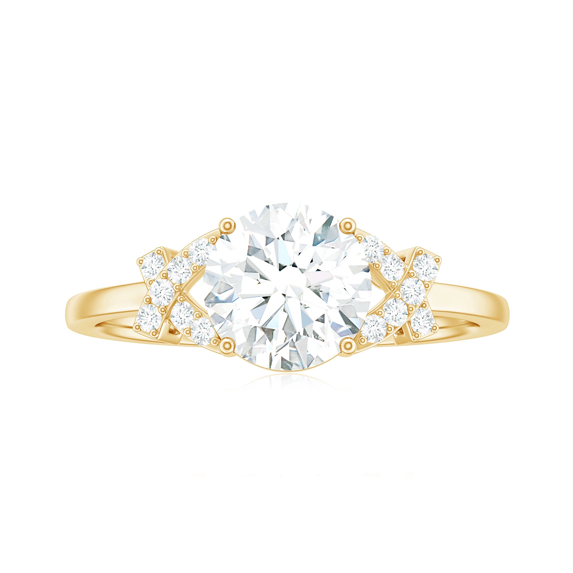 Round Shape Moissanite Solitaire Engagement Ring in Split Shank