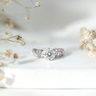 Round Cut Moissanite Vintage Engagement Ring With Diagonal Prongs