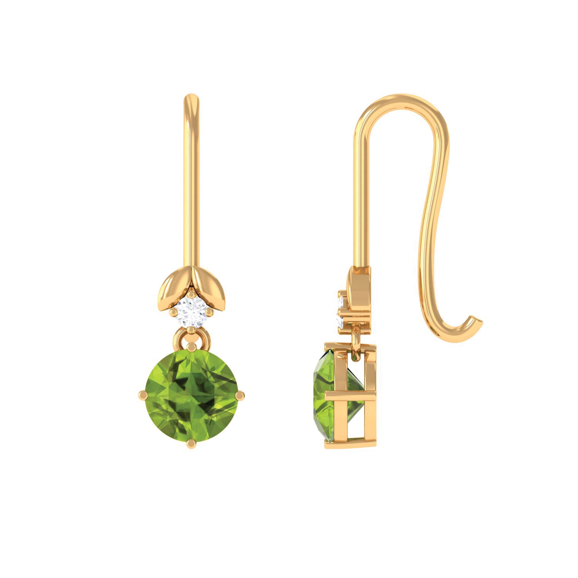 Round Peridot and Moissanite Drop Earrings with Fish Hook