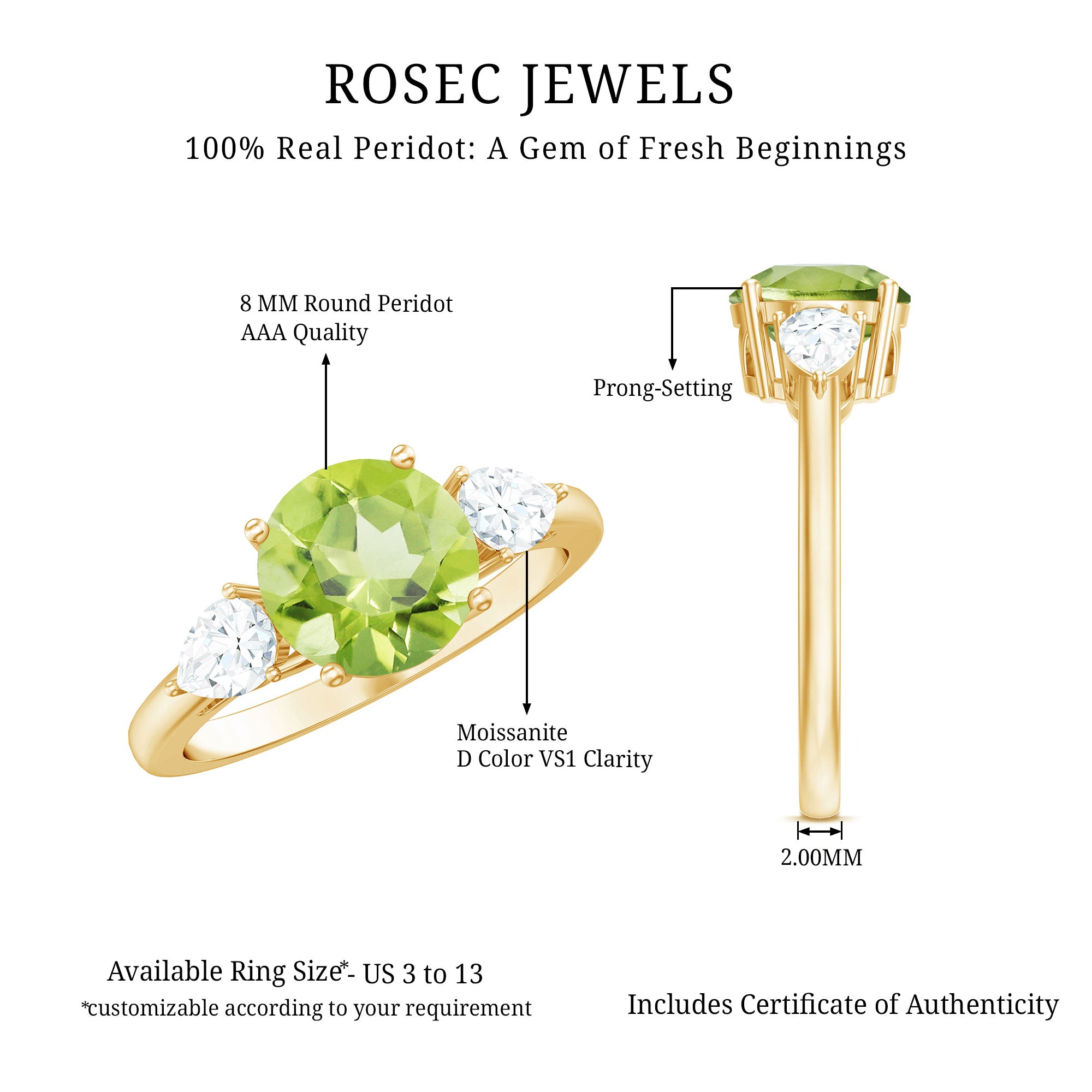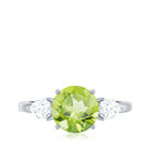 Round Cut Peridot Engagement Ring with Pear Cut Moissanite Side Stones
