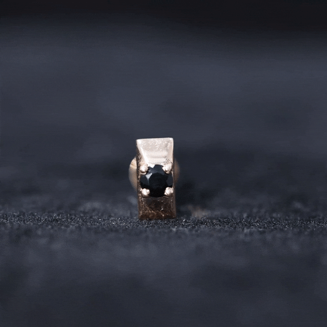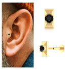 Round Cut Solitaire Black Onyx Gold Bar Tragus Earring
