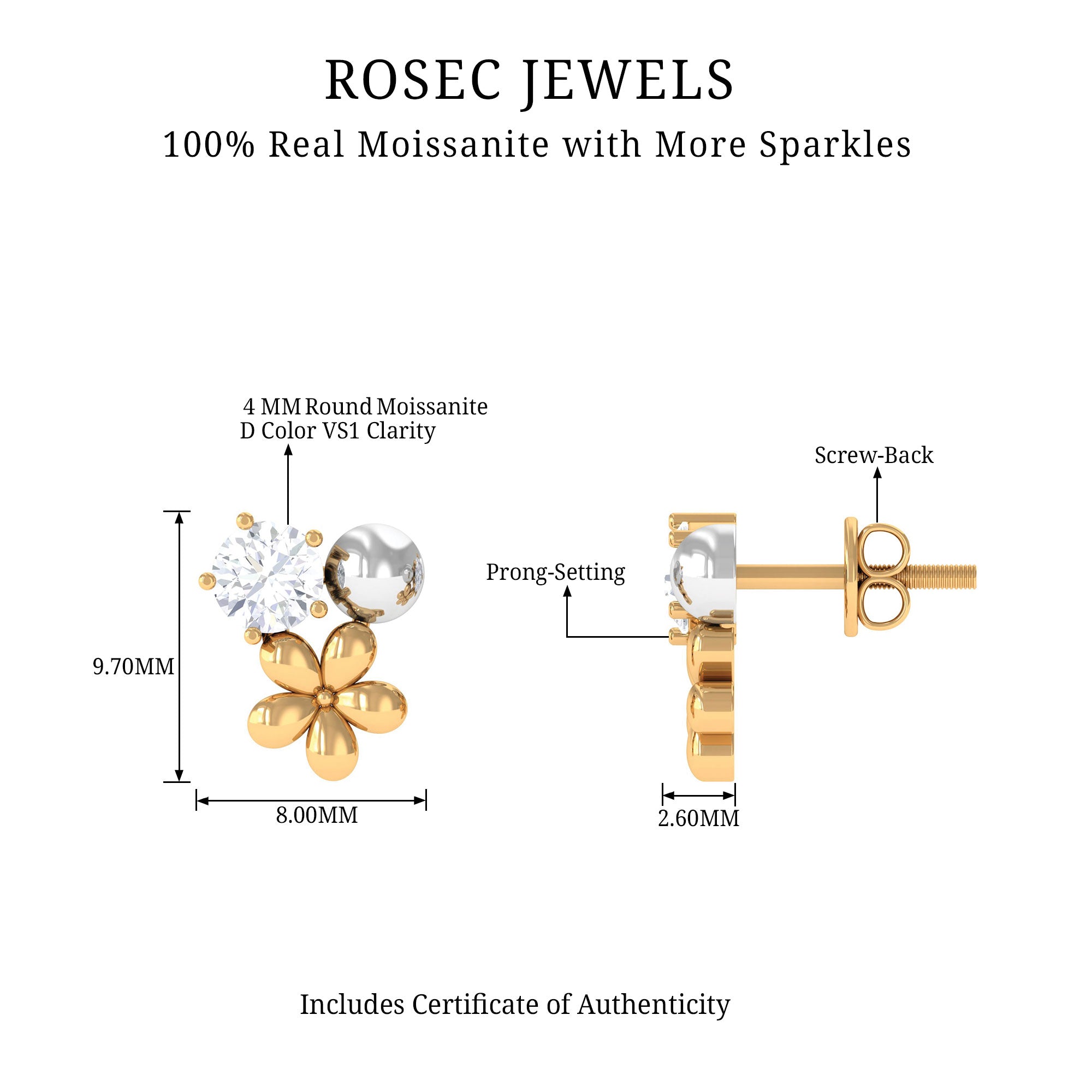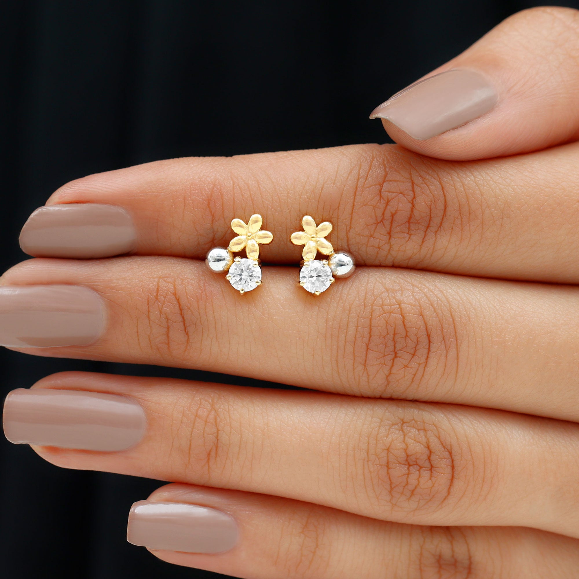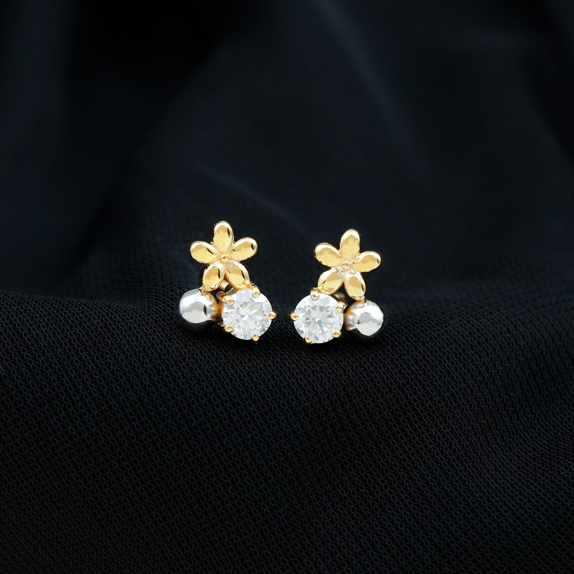 Round Cut Solitaire Moissanite Two Tone Gold Flower Stud Earrings