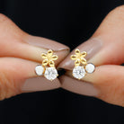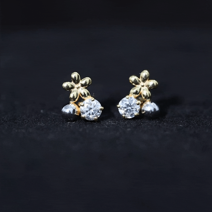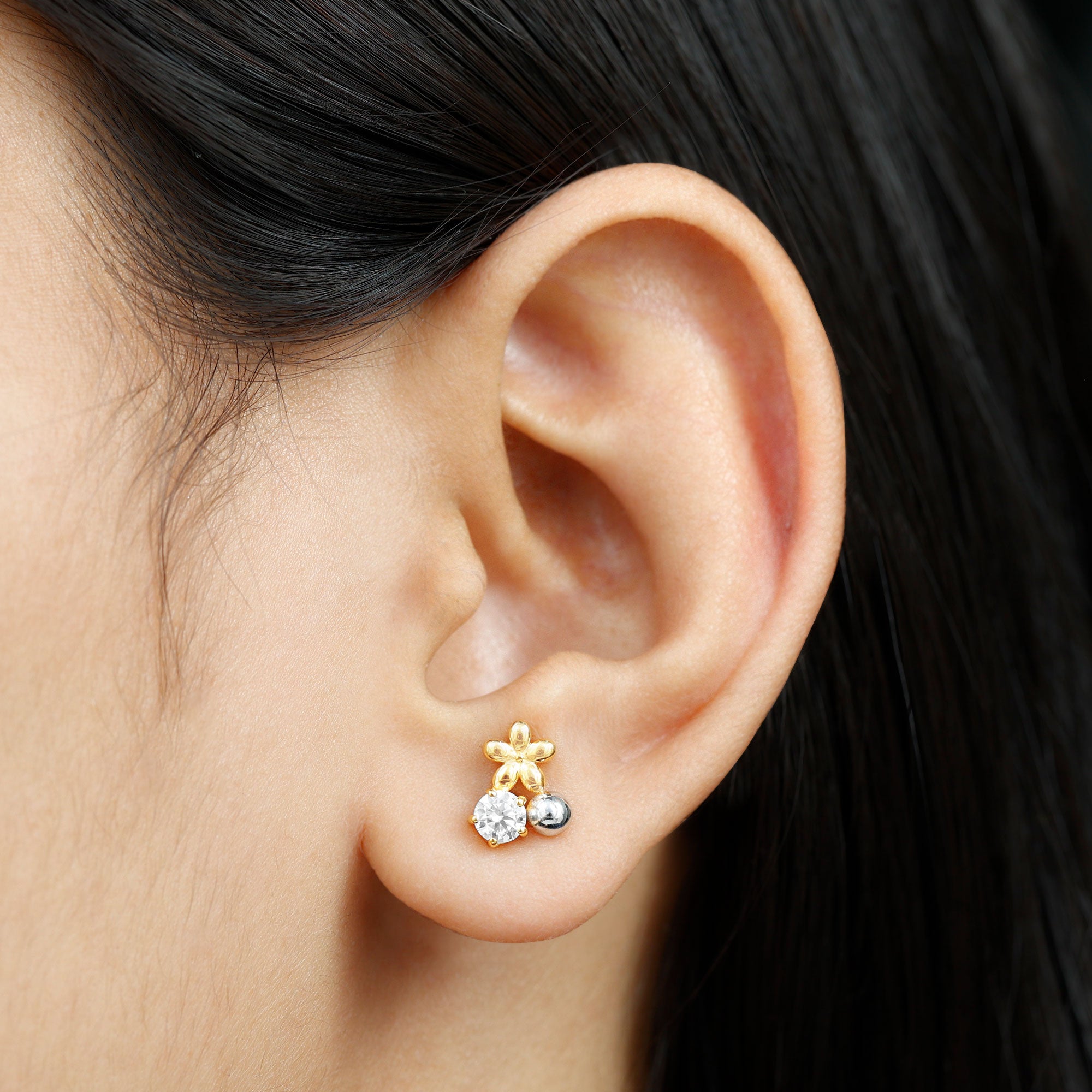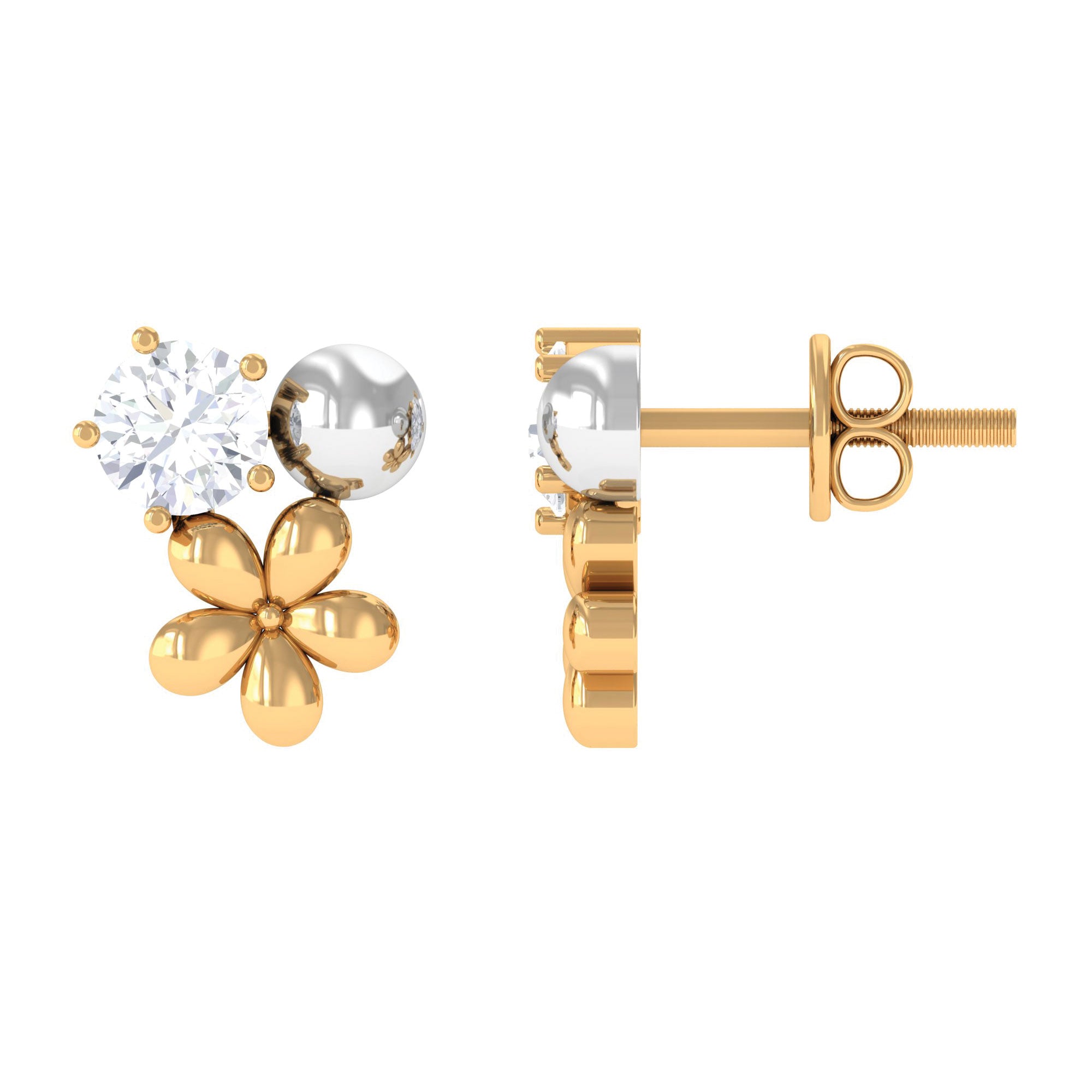 Round Cut Solitaire Moissanite Two Tone Gold Flower Stud Earrings
