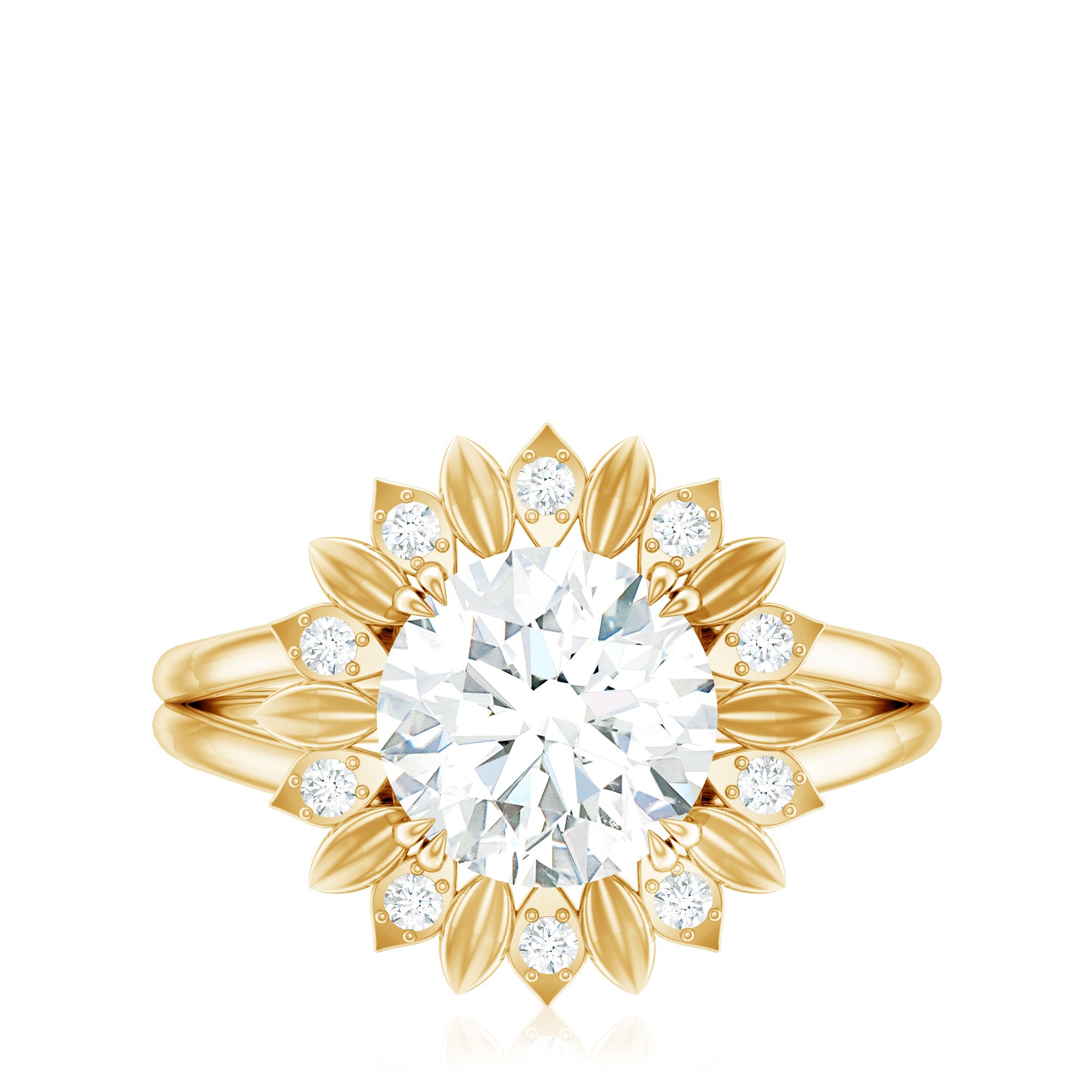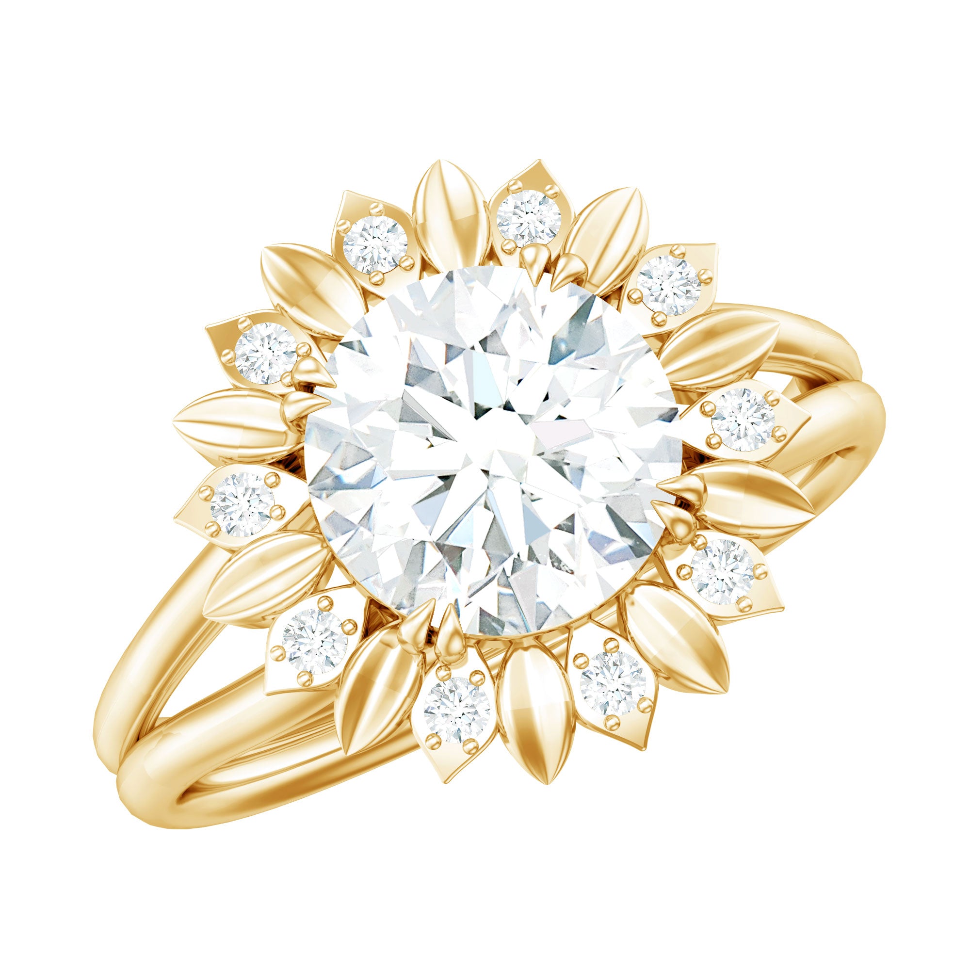 Round Cut Solitaire Zircon Gold Flower Engagement Ring in Split Shank
