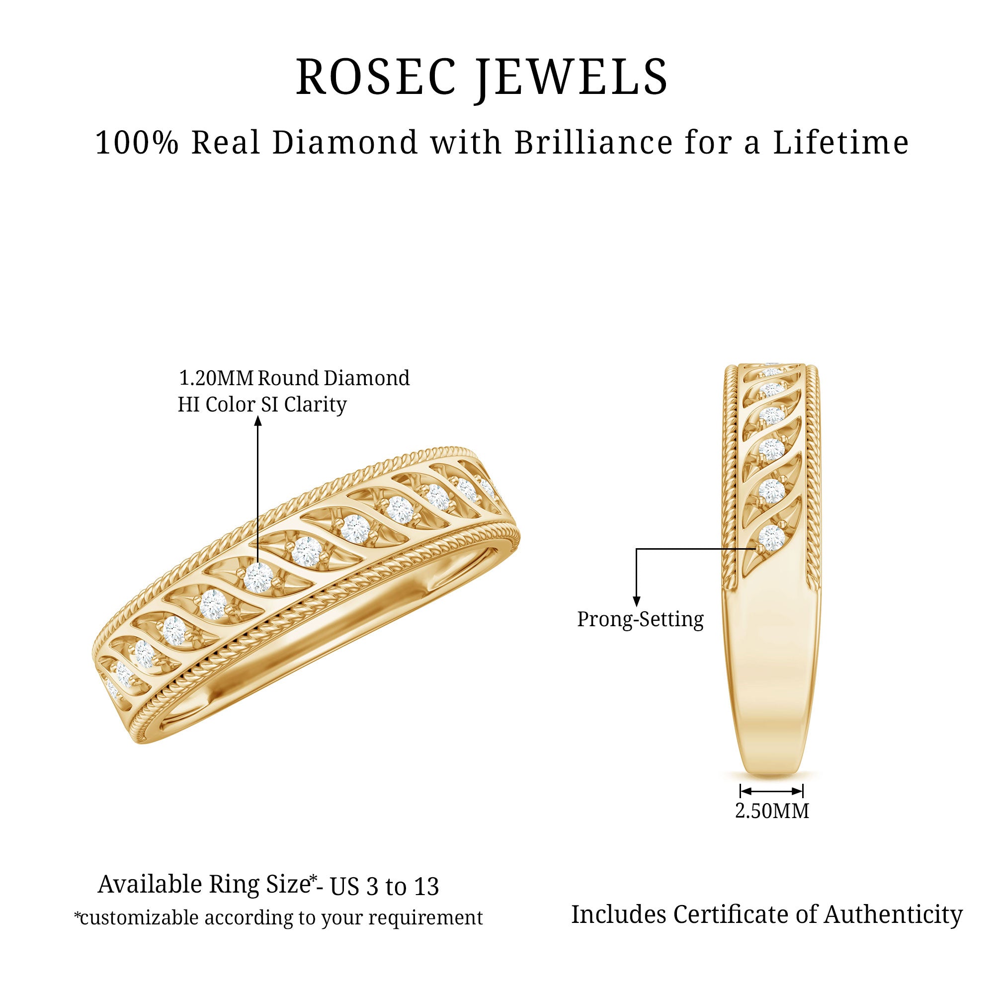 Round Diamond Designer Wedding Band Ring with Twisted Rope