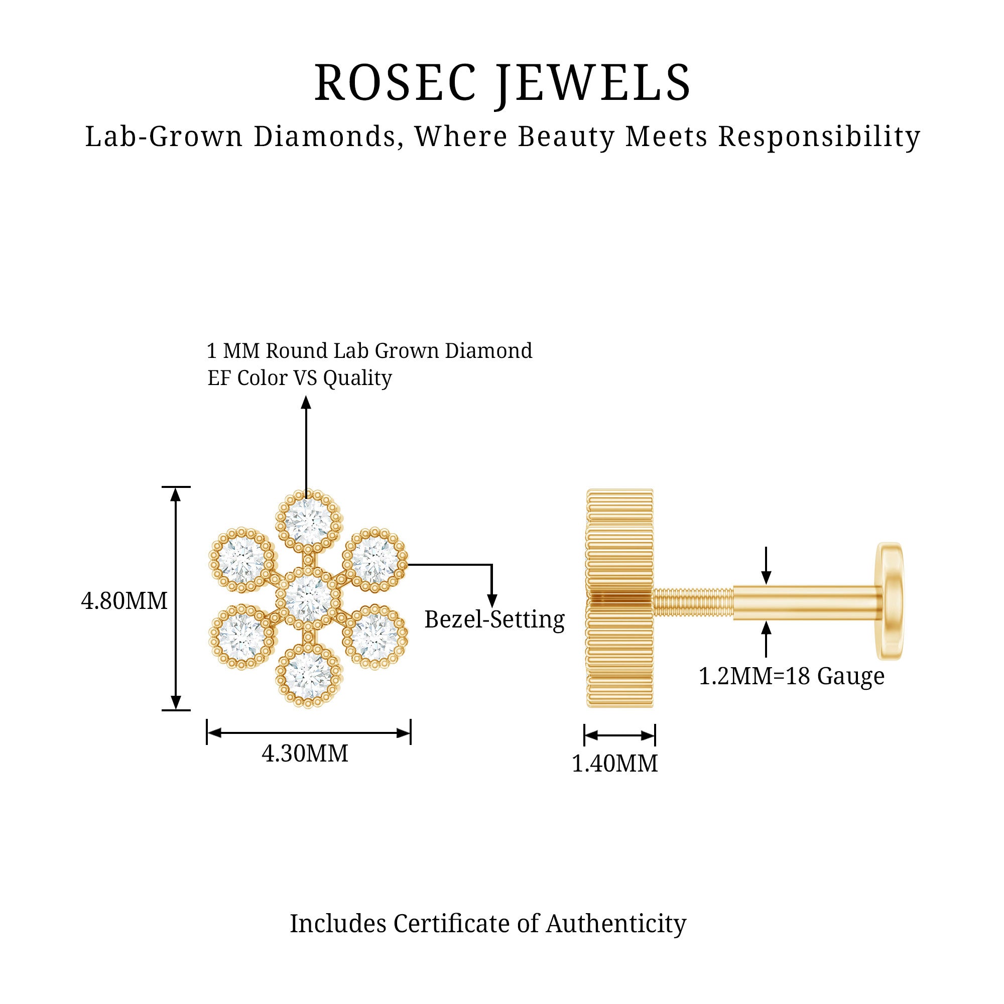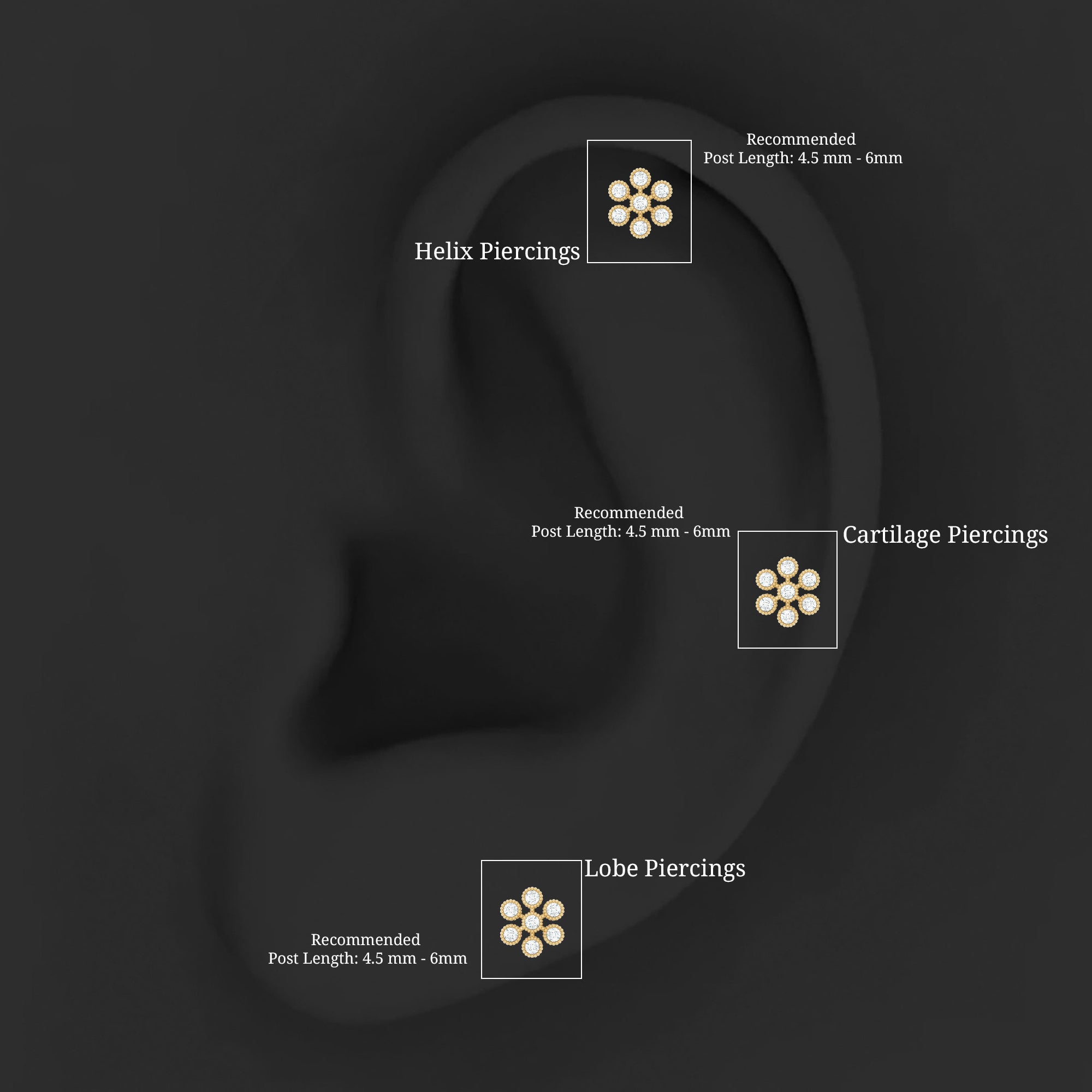 The Diamond Floral Earring is absolutely dreamy and can compliment any outfit for that perfect look. It features round diamonds set in beaded bezel setting, all arranged in a lovely floral design. You can easily elevate your Cartilage with this Diamond Minimalist Earring to achieve some unique styles. The Flat Back Closure ensures it stays securely in place. Whether youre heading out for brunch with friends or prepping for a date night, our Diamond Helix Earring is the ideal accessory. There are countless ways to style this Flower Stud Earring, you can mix it with another stud, a hoop, or any bold statement jewelry piece. This makes a fantastic birthday gift, an anniversary present, or a romantic surprise, beautifully celebrating lifes most treasured moments. It comes in a variety of metal color options and is available in different metal choices. Plus, this Piercing Stud includes a certificate of authenticity for the gemstones and is delivered in a premium storage box. Stack it up and get ready to flaunt this stunning piece.