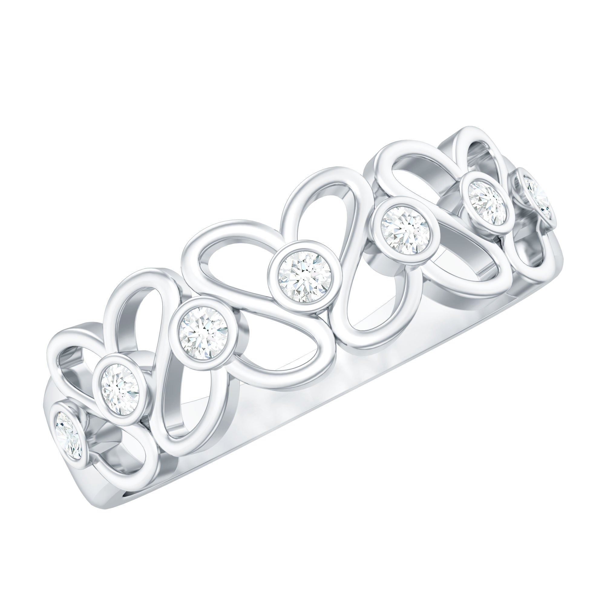 Round Diamond Half Eternity Floral Band Ring in Minimal Style