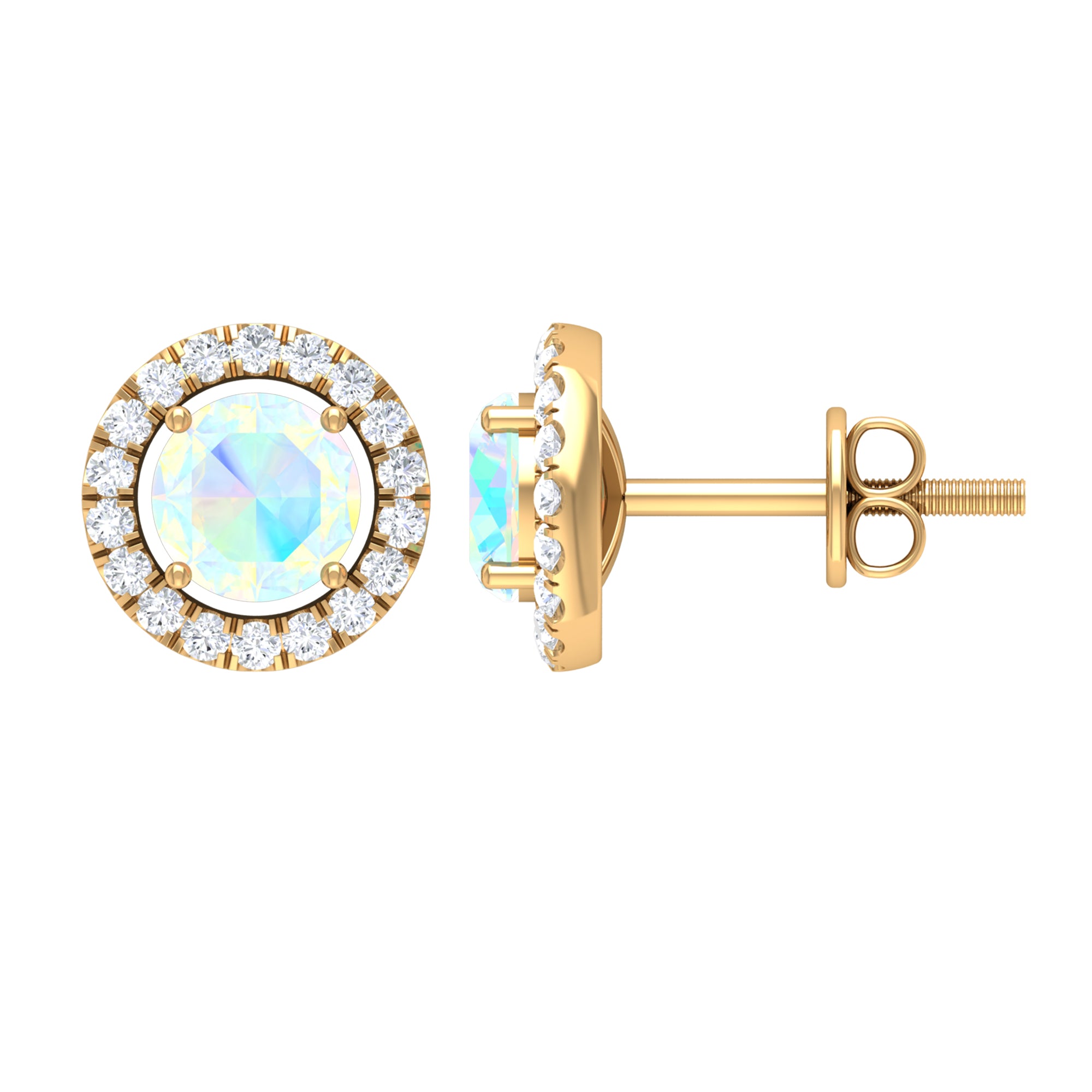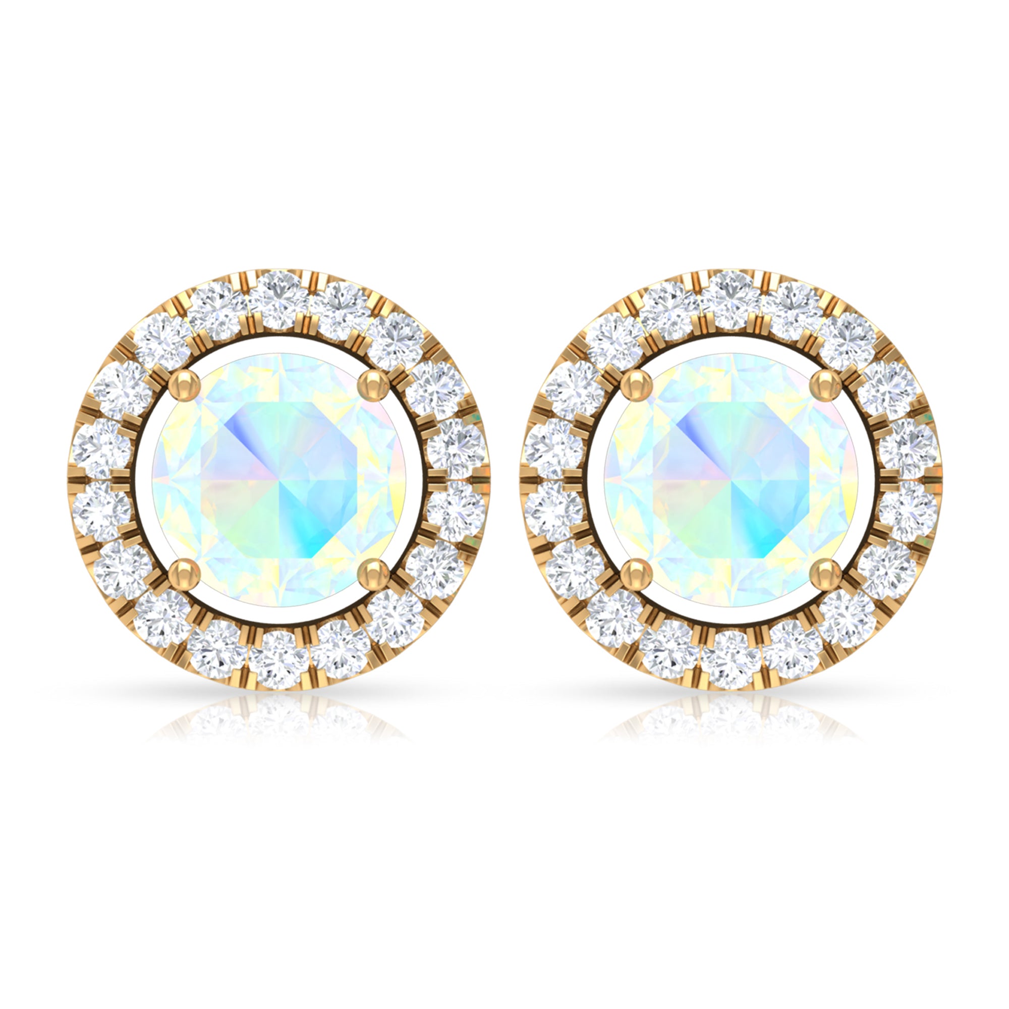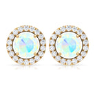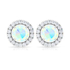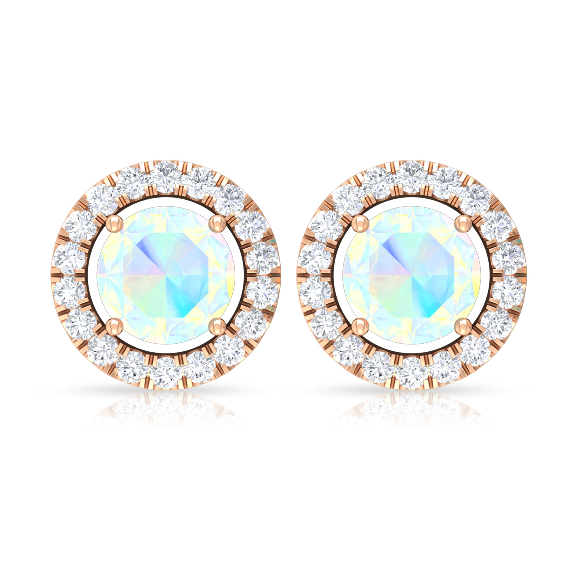 Round Ethiopian Opal and Diamond Halo Stud Earrings