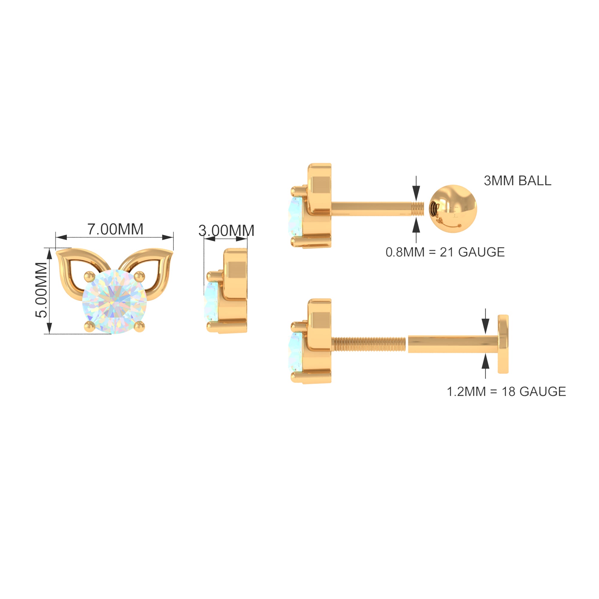 This cute Cat Cartilage Earring showcases a Round Cut Ethiopian Opal secured in Prong Setting studded on a cute cat design. You can wear this Ethiopian Opal Earring on your Conch, Cartilage, Upper Lobe, or Helix Piercing. The cute cat design adds a playful and charming touch to the earring, making it a delightful addition to any jewelry collection.