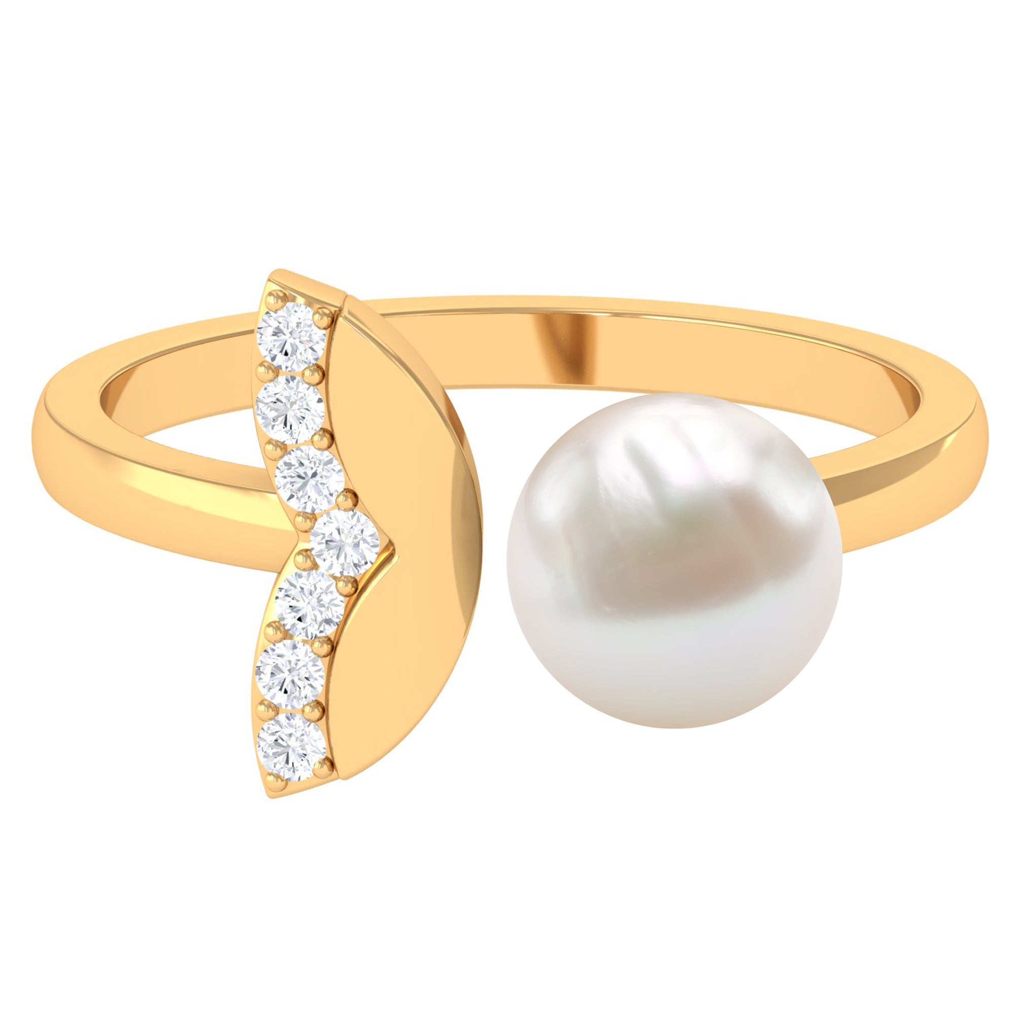 Round Freshwater Pearl Solitaire Cuff Ring with Diamond