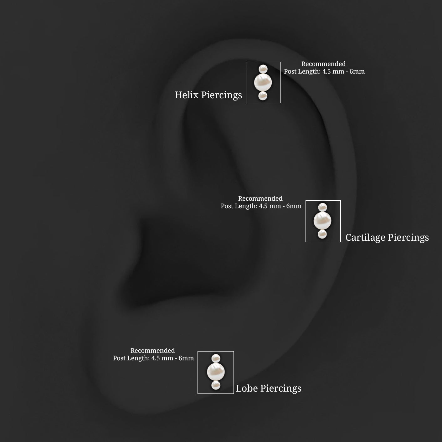 Round Freshwater Pearl Three Stone Cartilage Earring