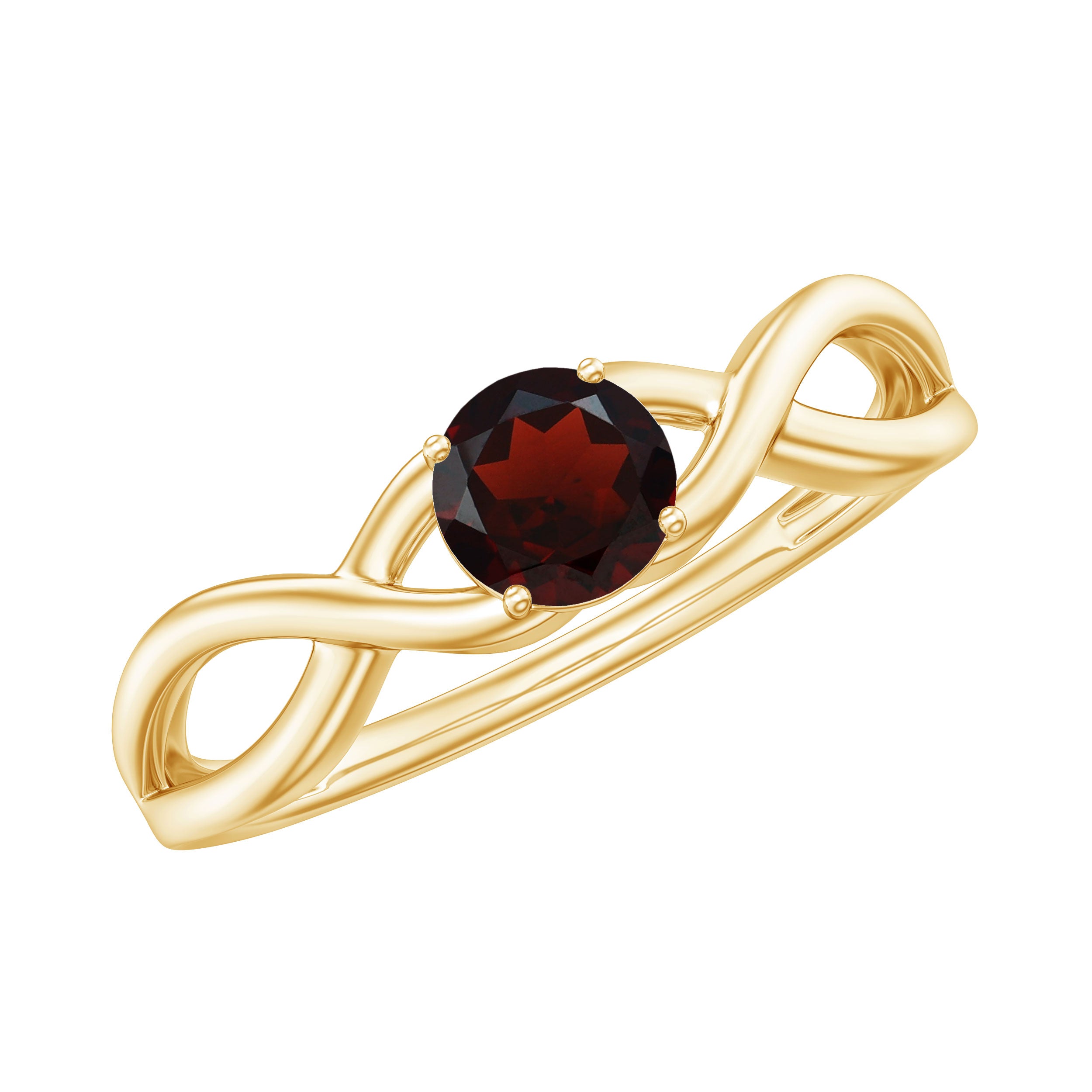 Genuine 8mm Garnet Solitaire Engagement Ring with Crossover Shank