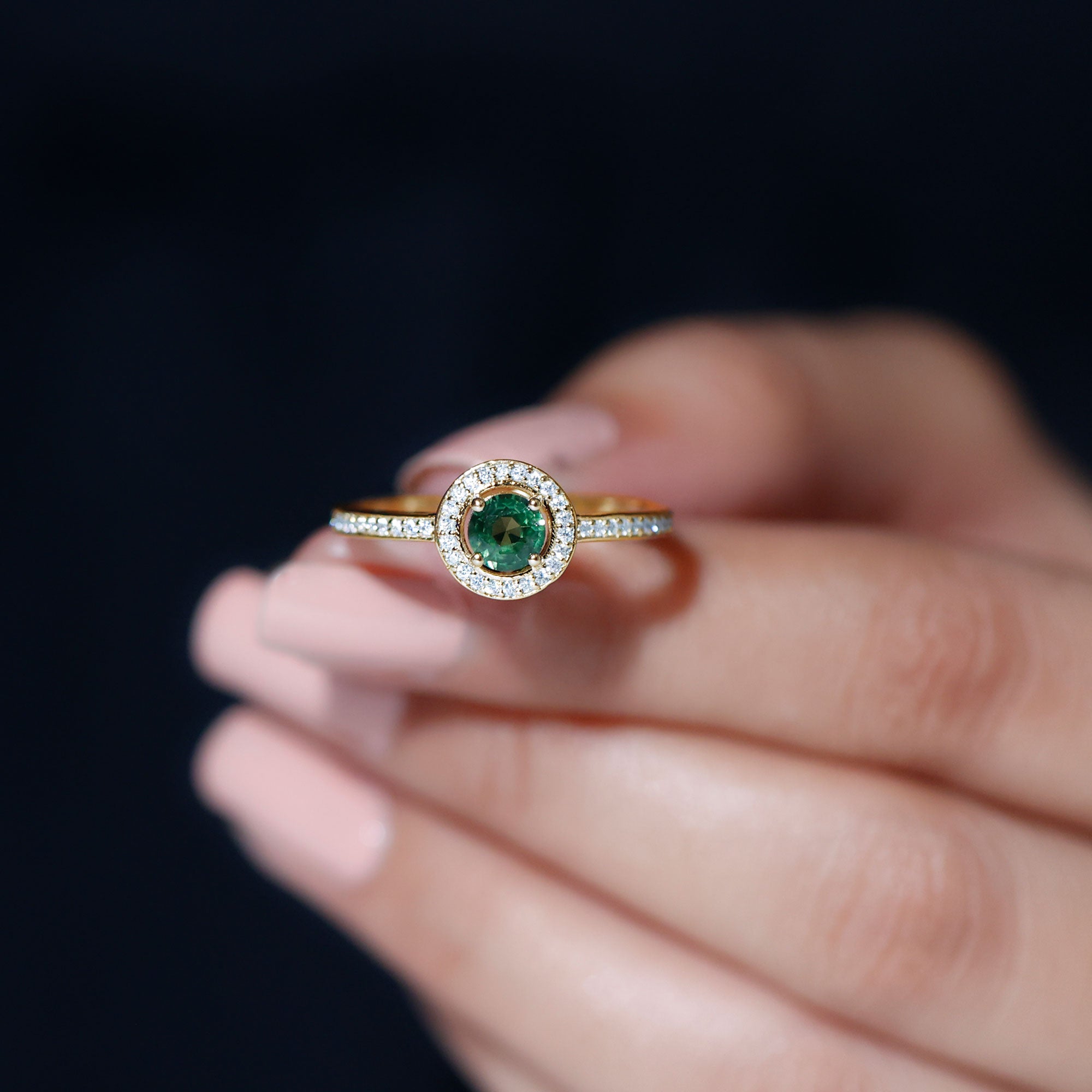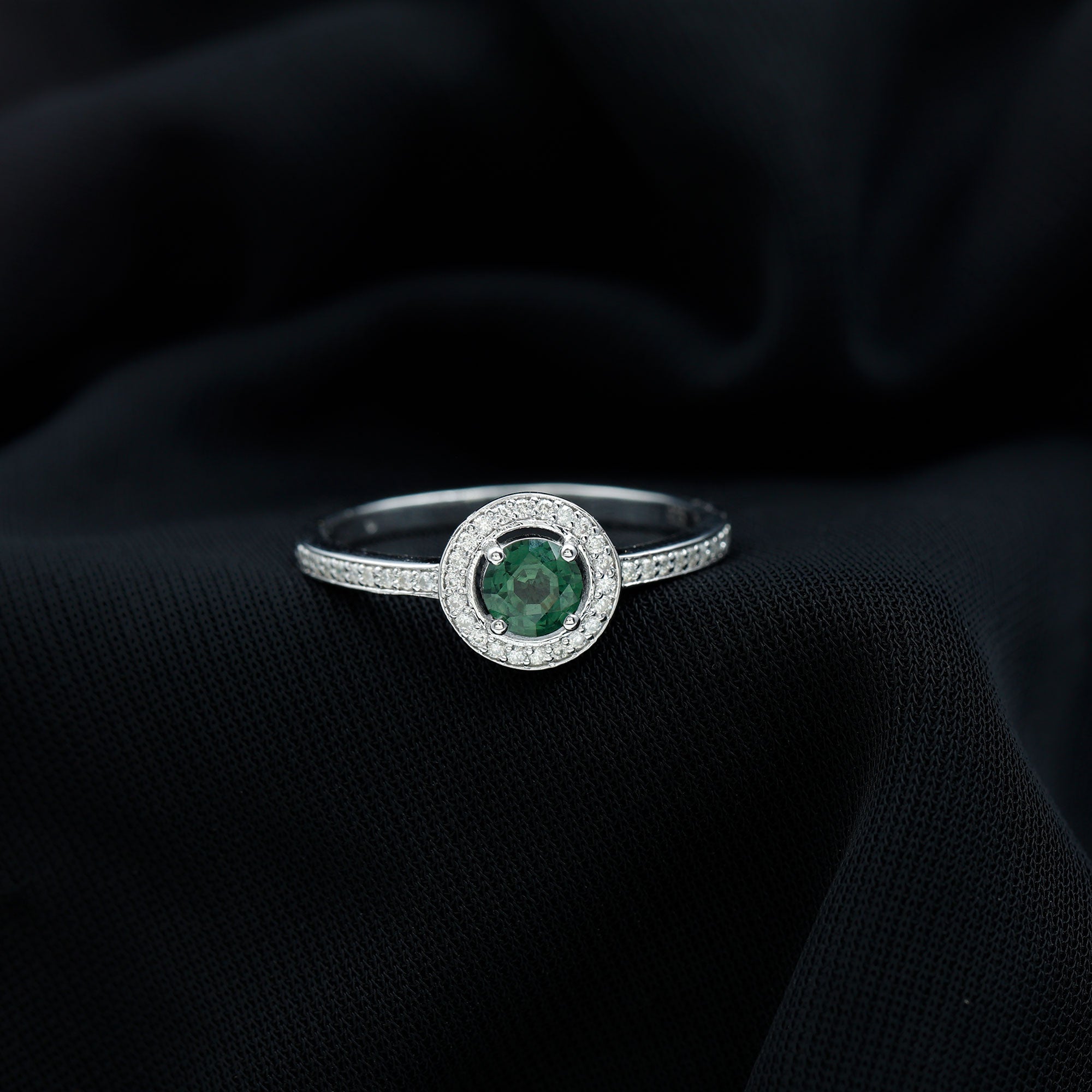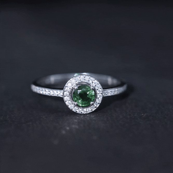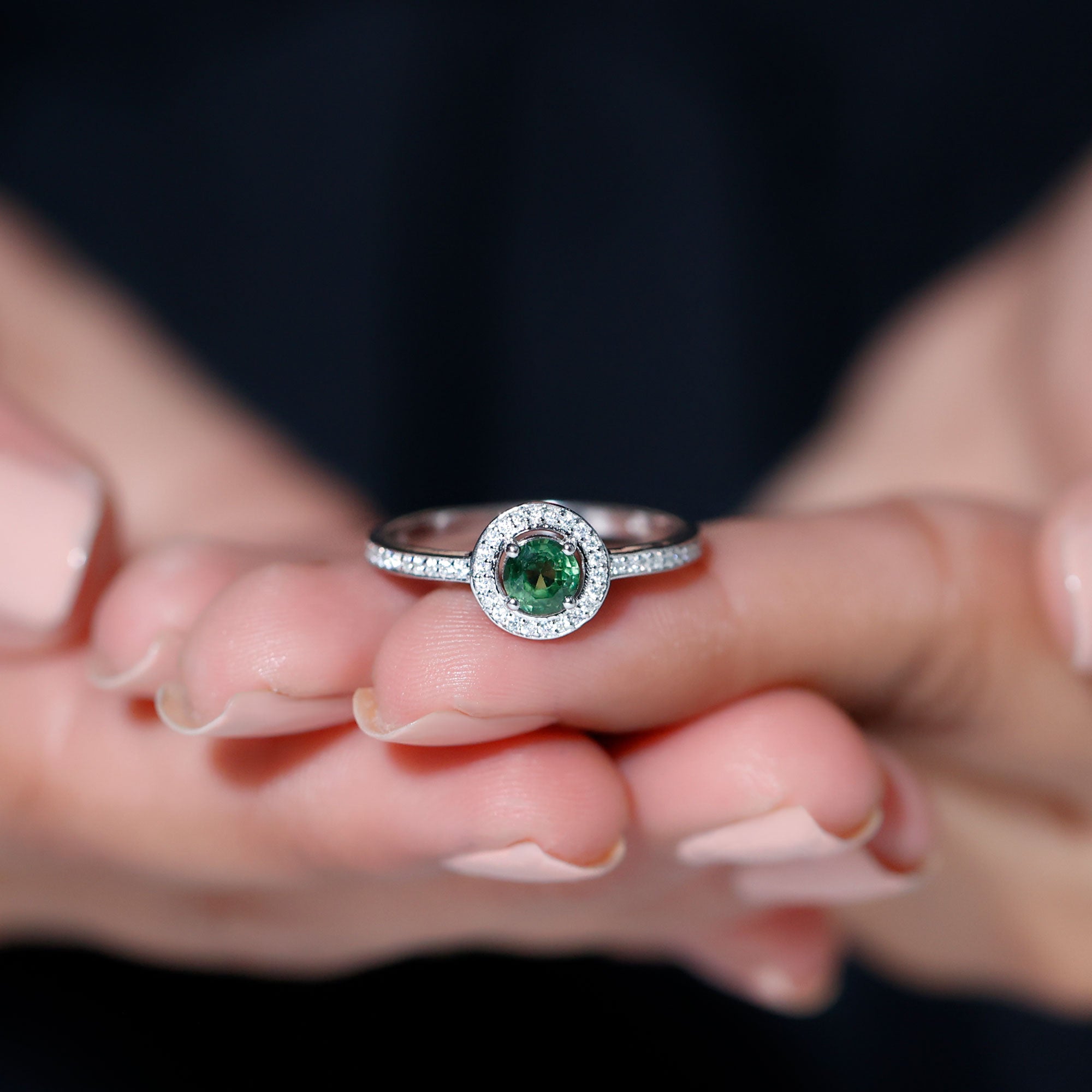 Round Green Sapphire and Diamond Floating Halo Engagement Ring